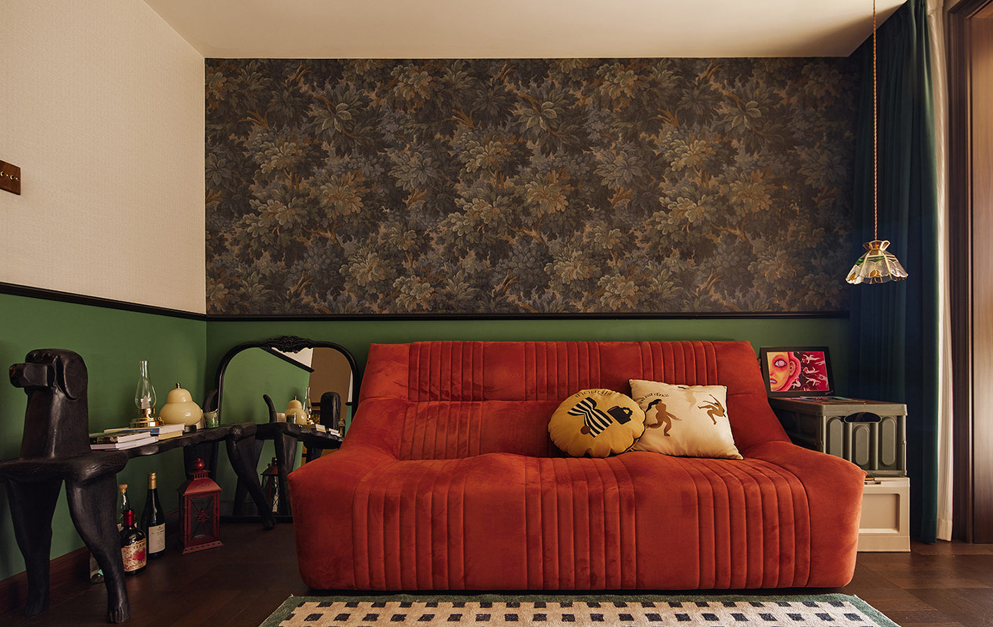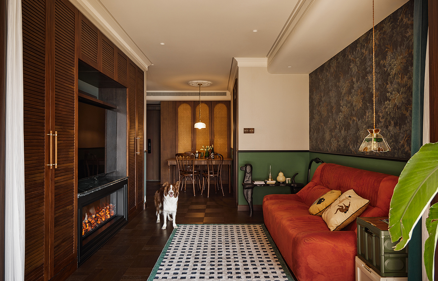 步入这个新家,仿佛踏入复古与现代交融的梦幻之境。玄关以仪式感设计开场,餐厅则展现出ArtDeco复古风情,胡桃木与黄铜家具交织出油画般的质感。客厅中,红绿撞色大胆而独特,无茶几设计让空间更显自由与艺术。