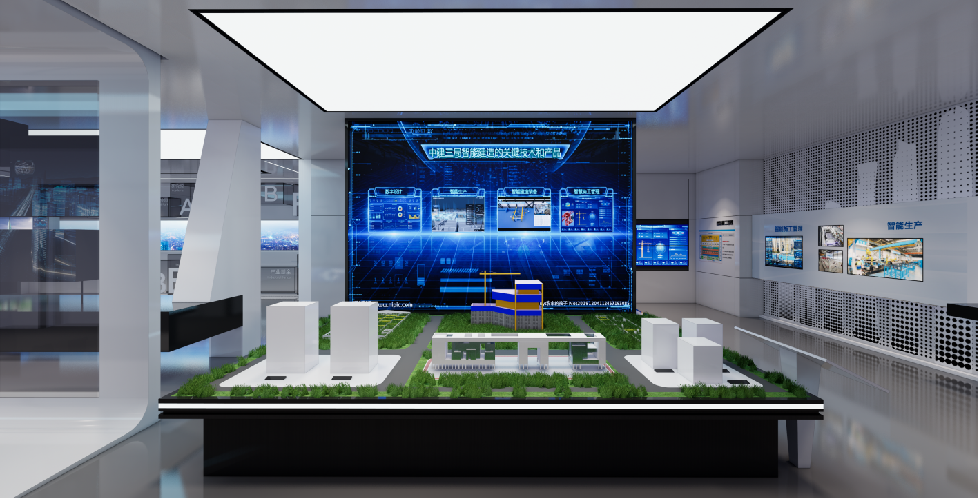 第一单元主要突出三局在智能建造中的关键技术模块,细分技术及产品产业化的成果,是展厅展示的核心部分。以多种互动形式让观众在交互中领略产业园区相关产业和企业在智能建造方面所结成的硕果。