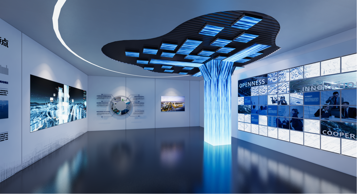 孵化区域的展厅在设计中作为整个产业园的门面,建成后将集规划平台、企业宣传、技术展示和行政服务等功能于一体的企业文化展厅。 -