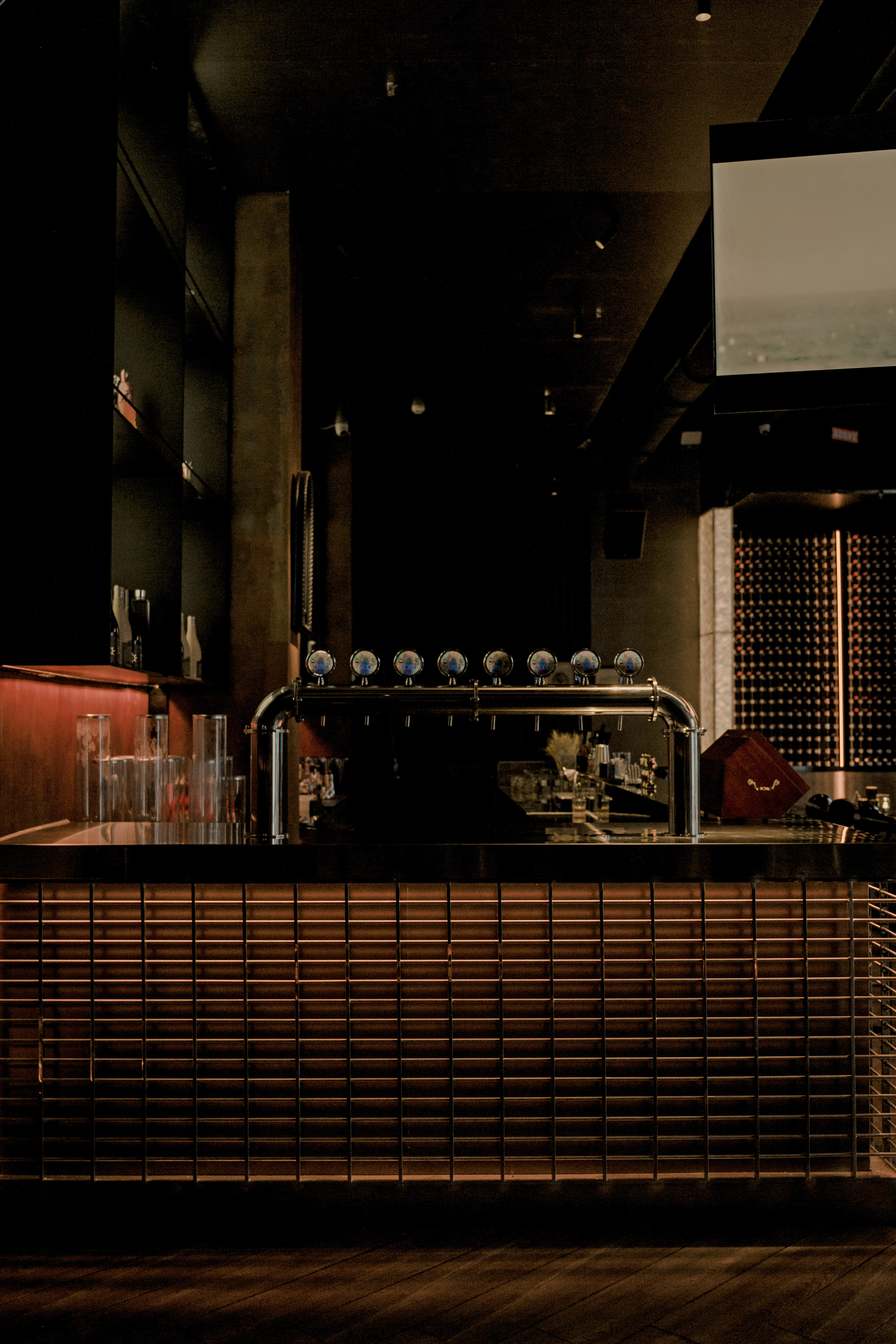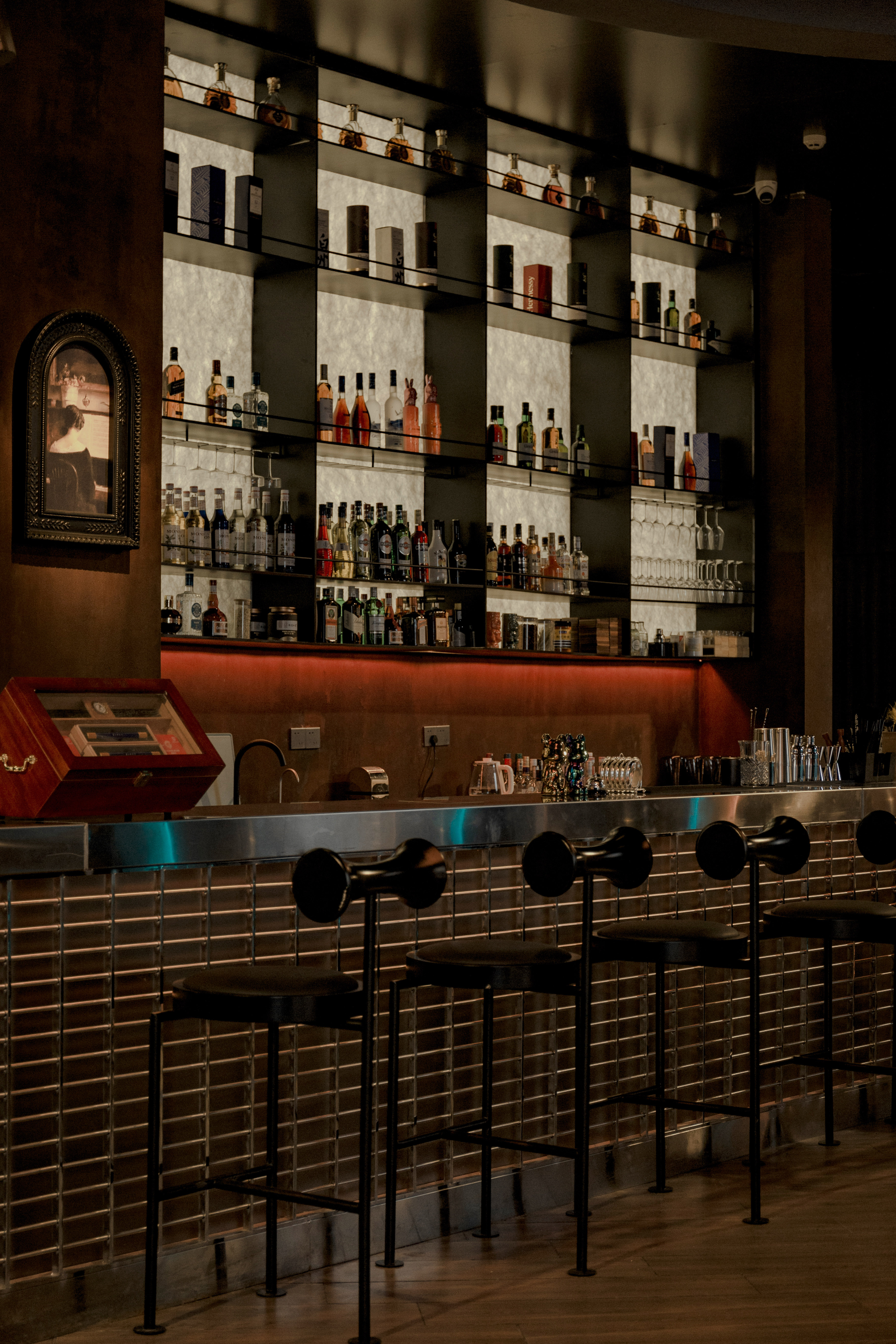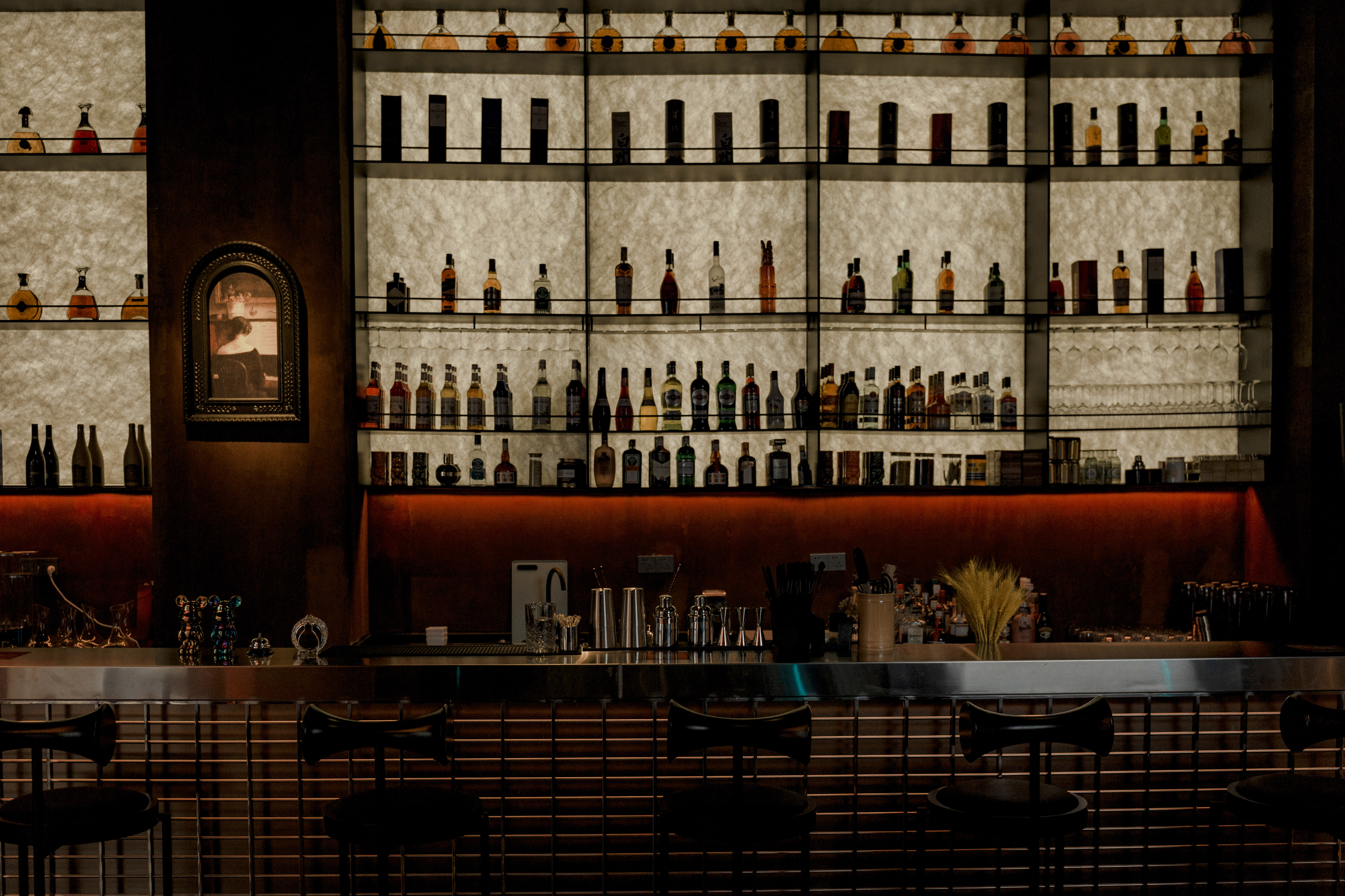 吧台放置在酒吧空间的中心区域,与各功能区良好的连通,同时正对大门,亦可以作为吸睛的卖点。