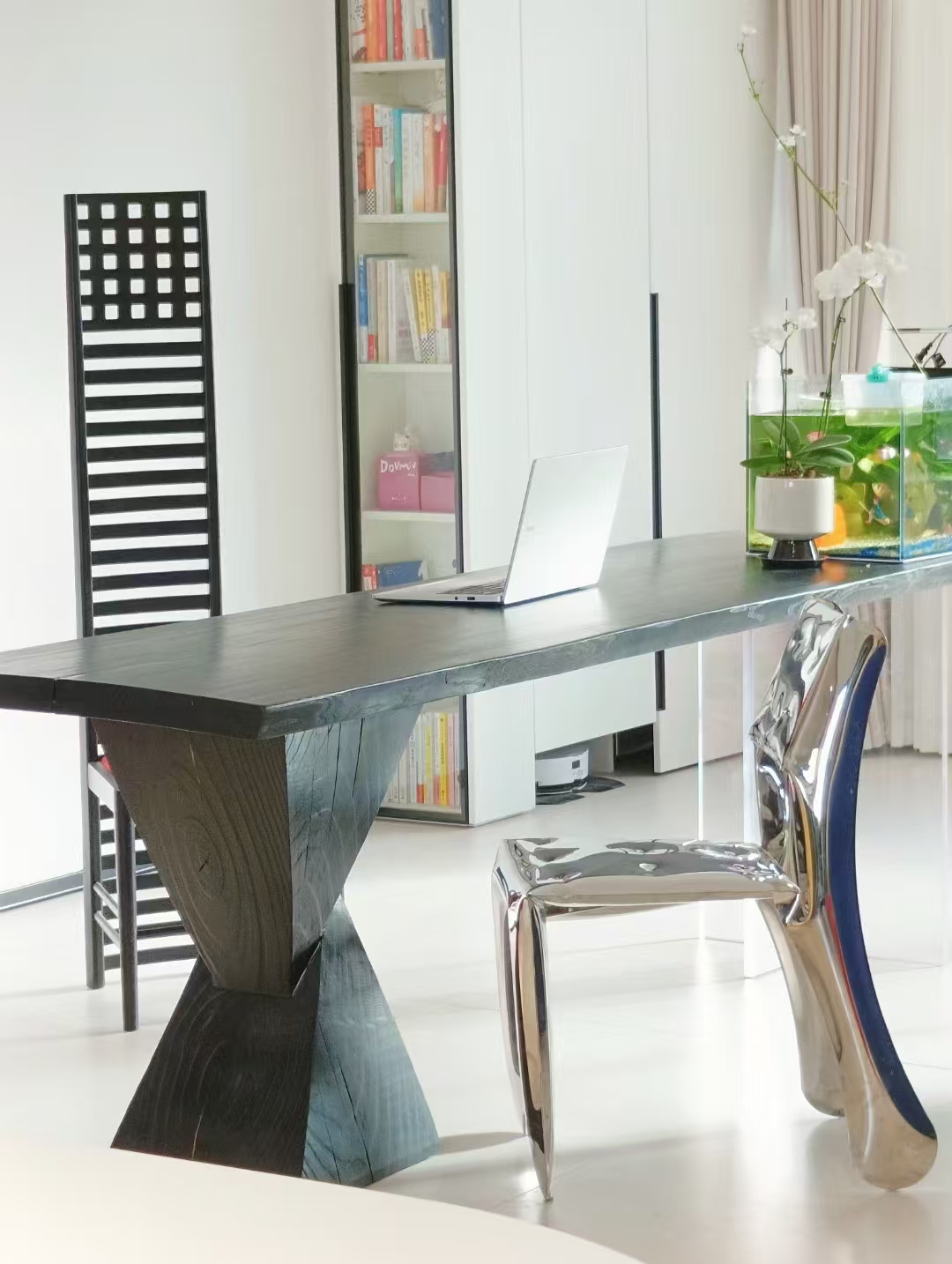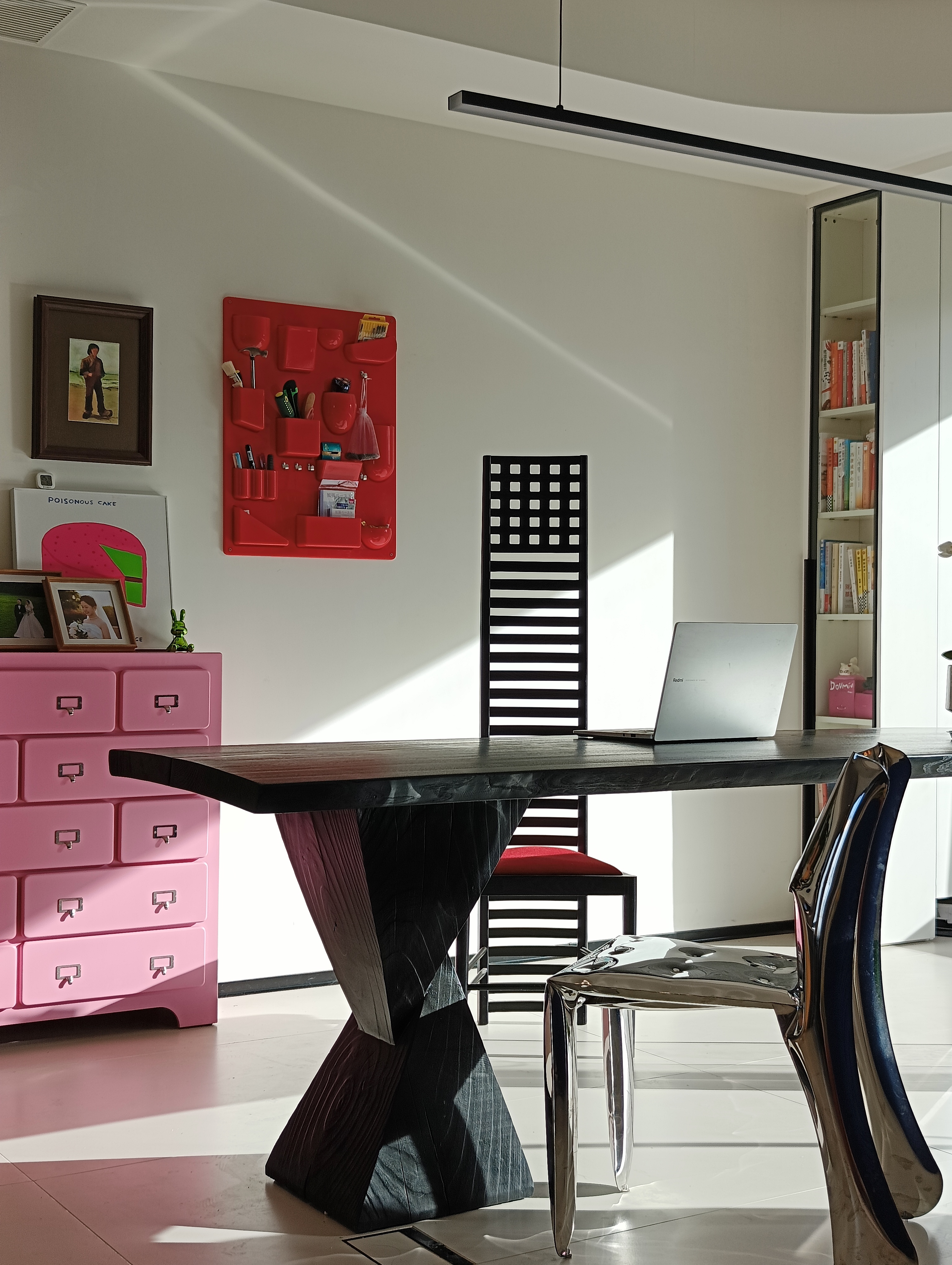 设计选材:以往的装修大家的关注点很多都在硬装的材质收口与质感,在疫情过后的时代,人们越来越关注生活的本质,对房子的更多需求是居住的舒适性,所以我们在整个空间硬装与材料上尽可能的控制了预算,而是通过储物与软装来满足生活的本质需求,同时也营造空间的氛围感。
