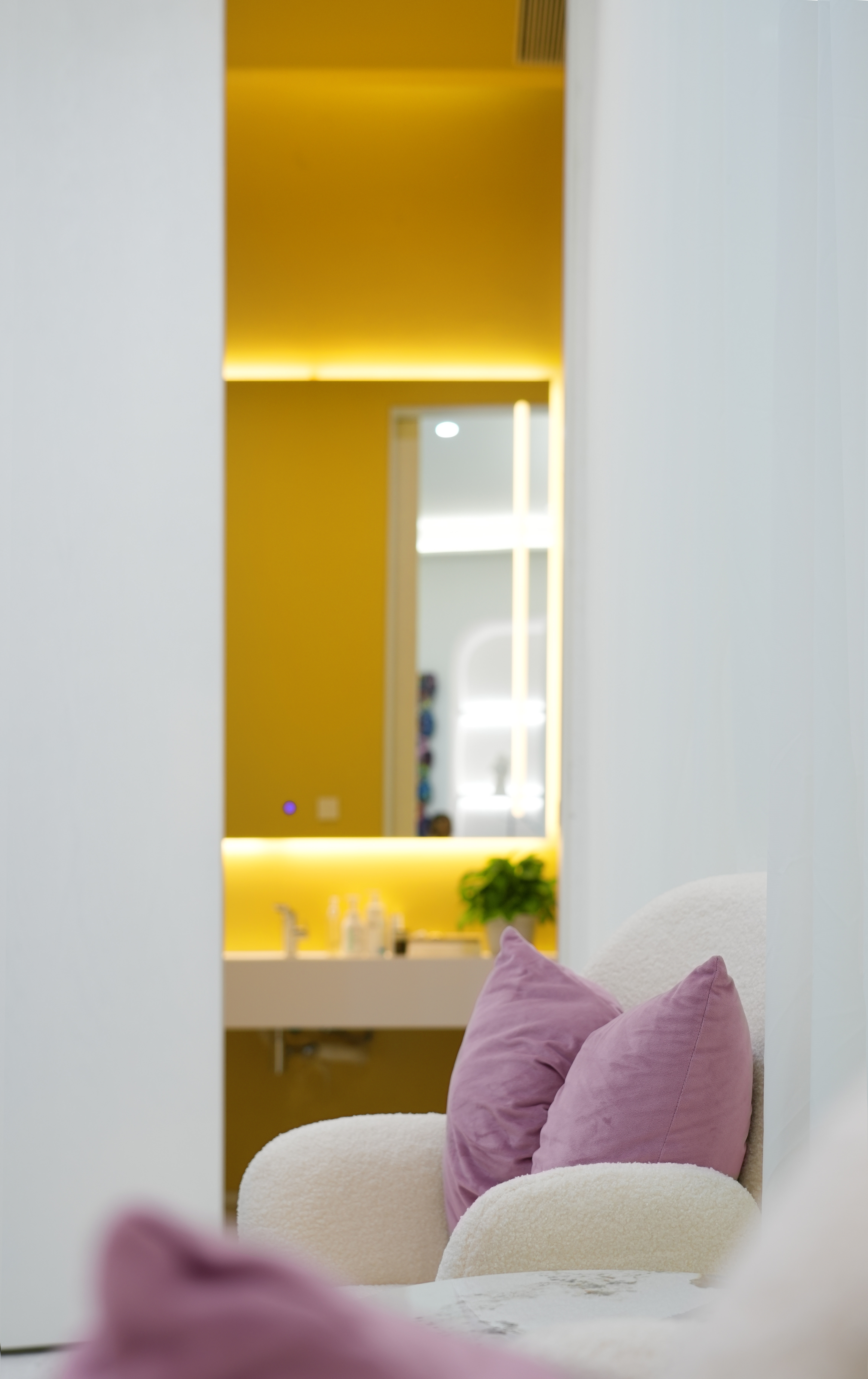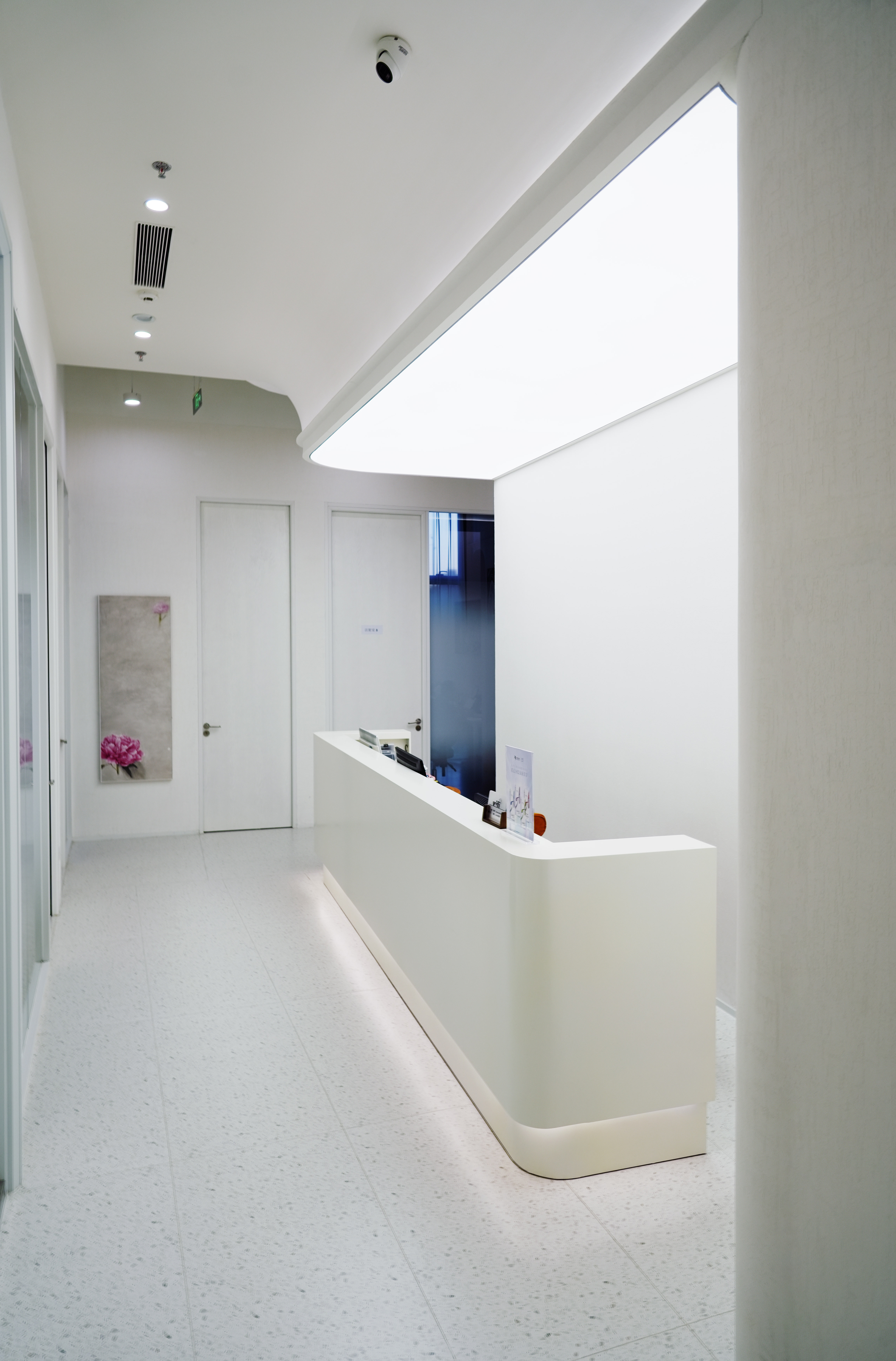 项目定位:项目聚焦国贸 CBD 高端女性客群,定位为集美学与功能于一体的医美空间。设计上,以白色极简风塑造高级质感,运用女性化弧形元素增添柔美。选用环保材料,借镜面反射拓展空间,通过 AI 墙画与仿真绢花营造艺术氛围,打造专属女性的网红打卡地,引领医美空间新潮流。