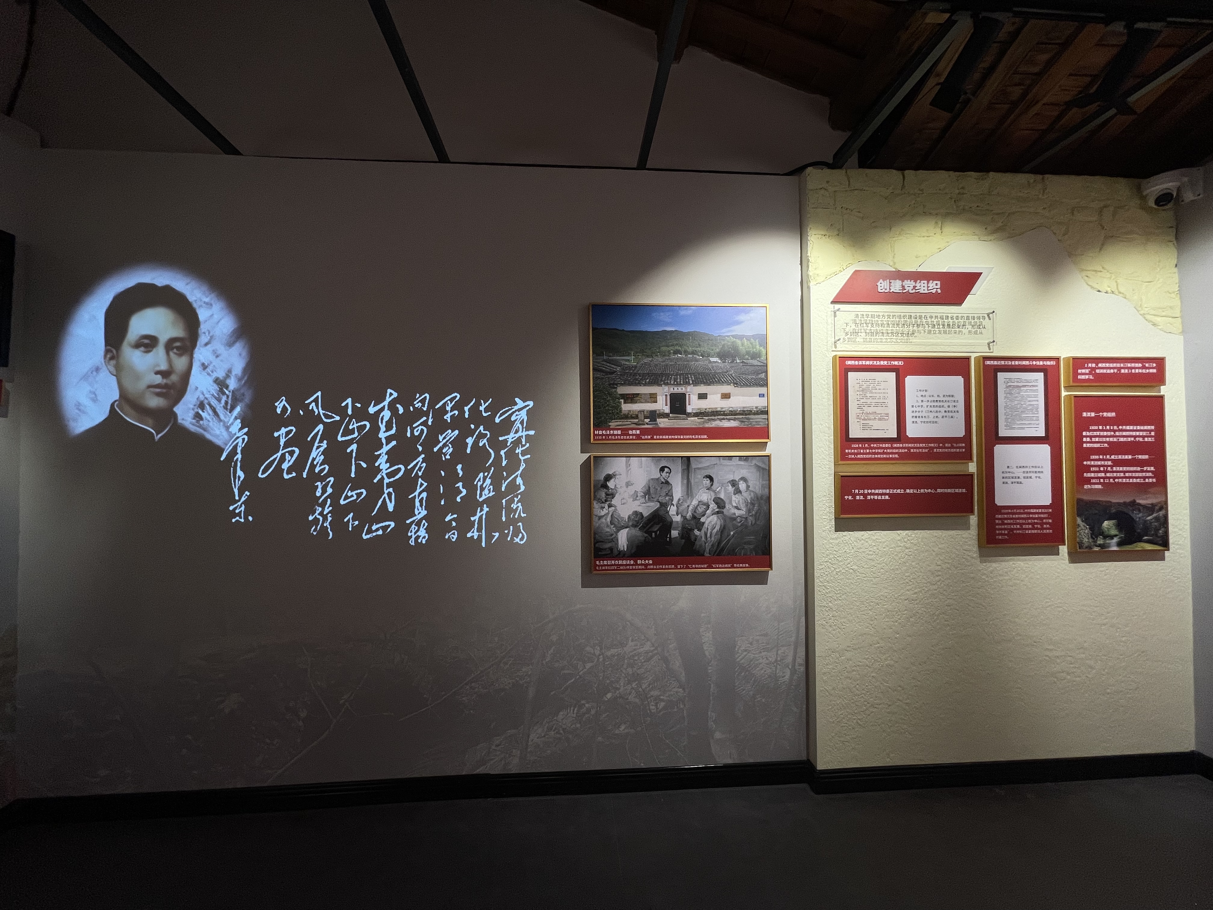 第一部分互动多媒体展项:滚动播放毛泽东行军驻扎在清流一带时写下的《如梦令·元旦》
