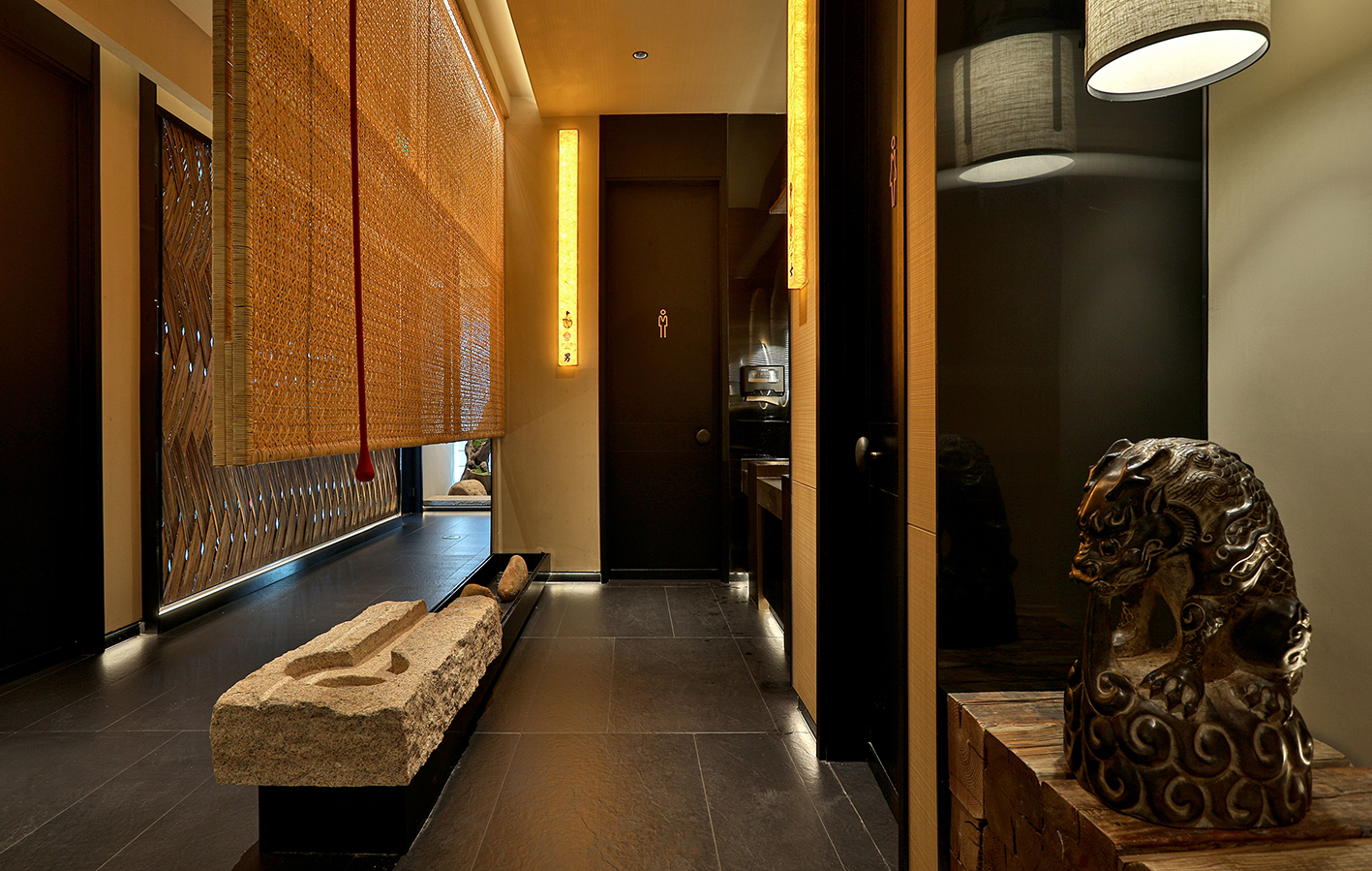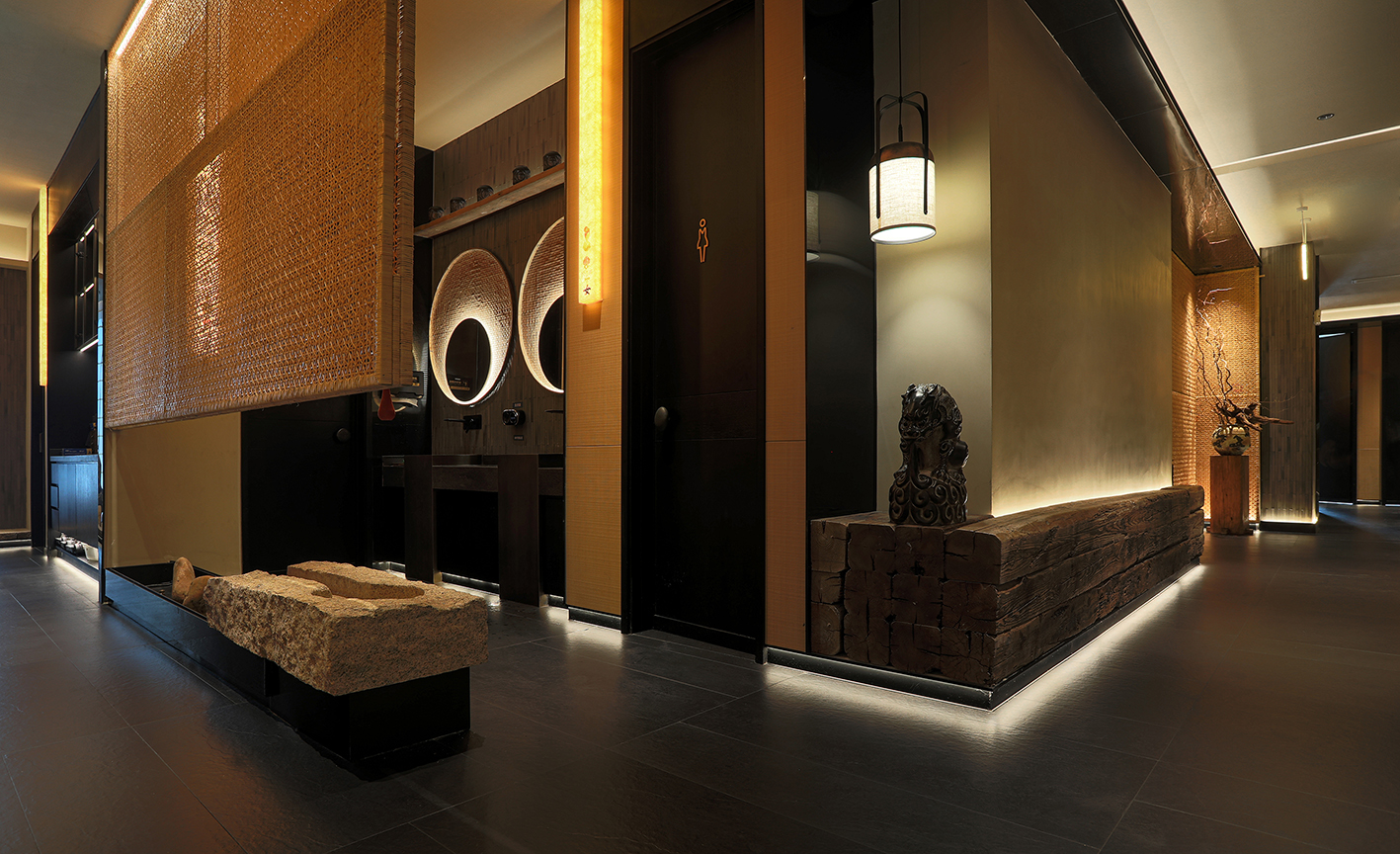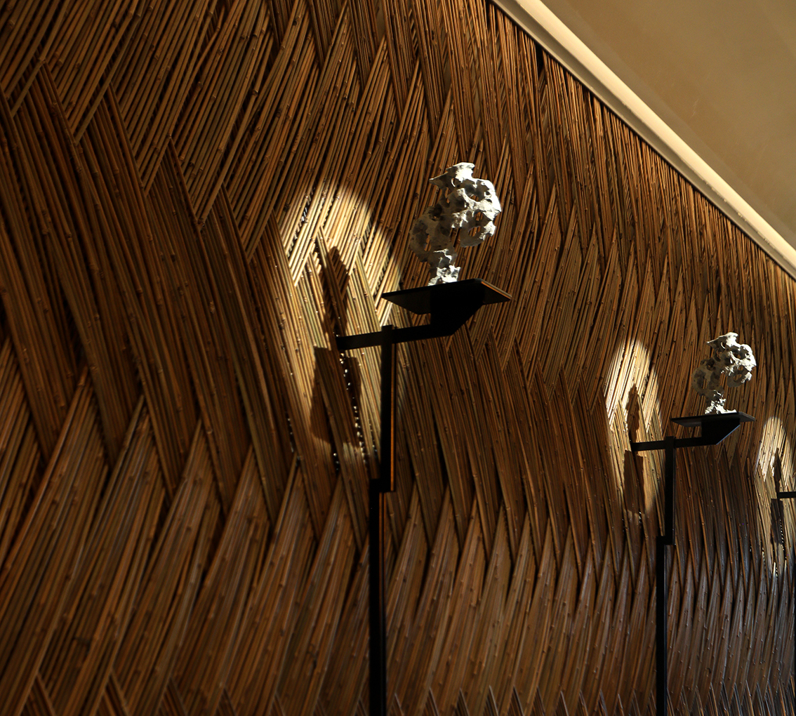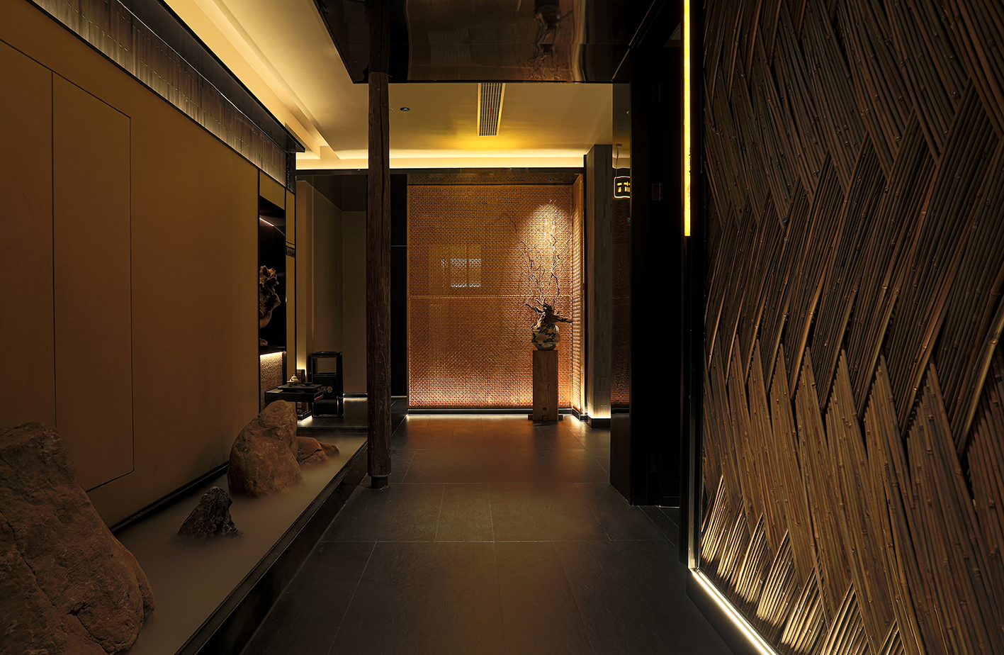 空间内提取有江南符号的元素,如竹编、席编、老木头,老石板等自然材料进行精致化演绎,以写意概括的空间语言构建具有当代性的民俗文化体验感和设计感,营造轻松雅致的氛围。