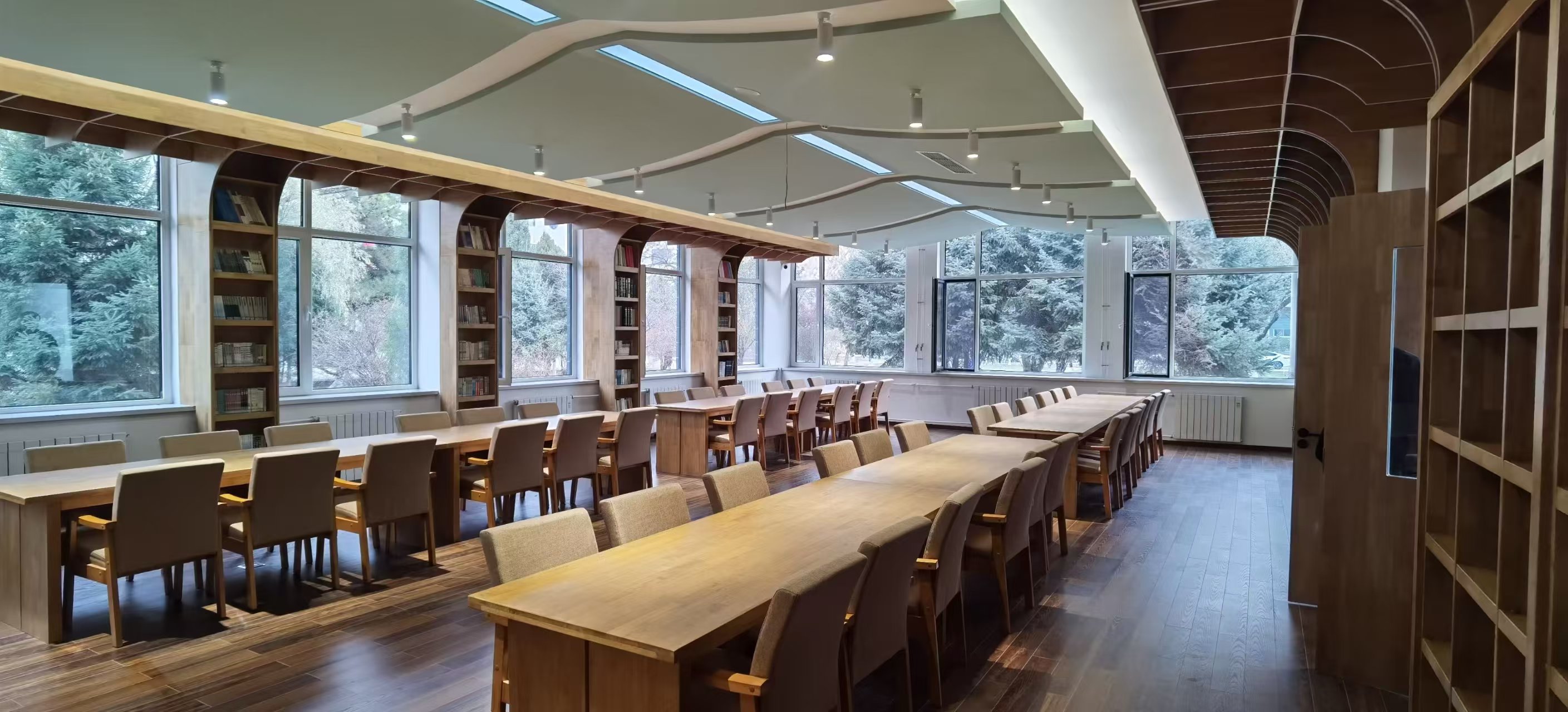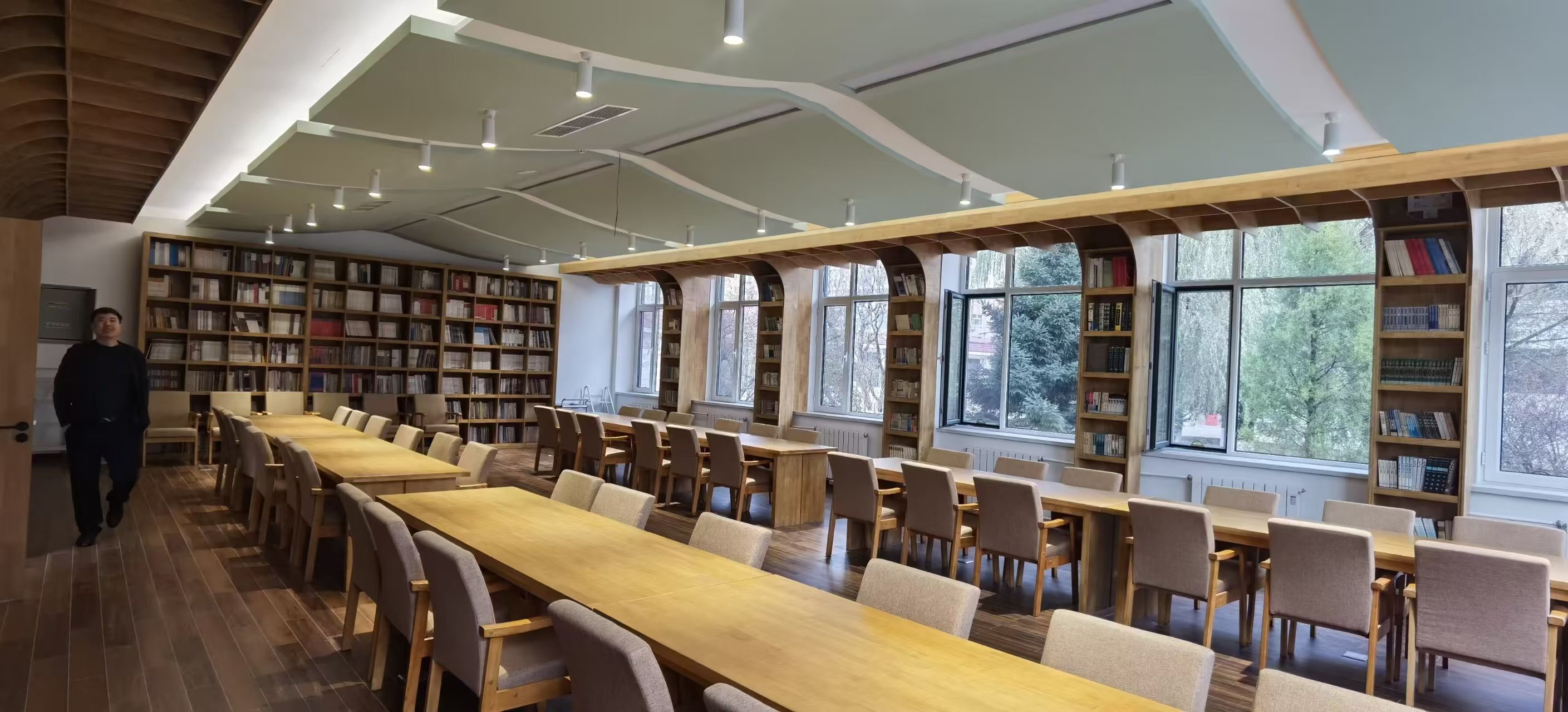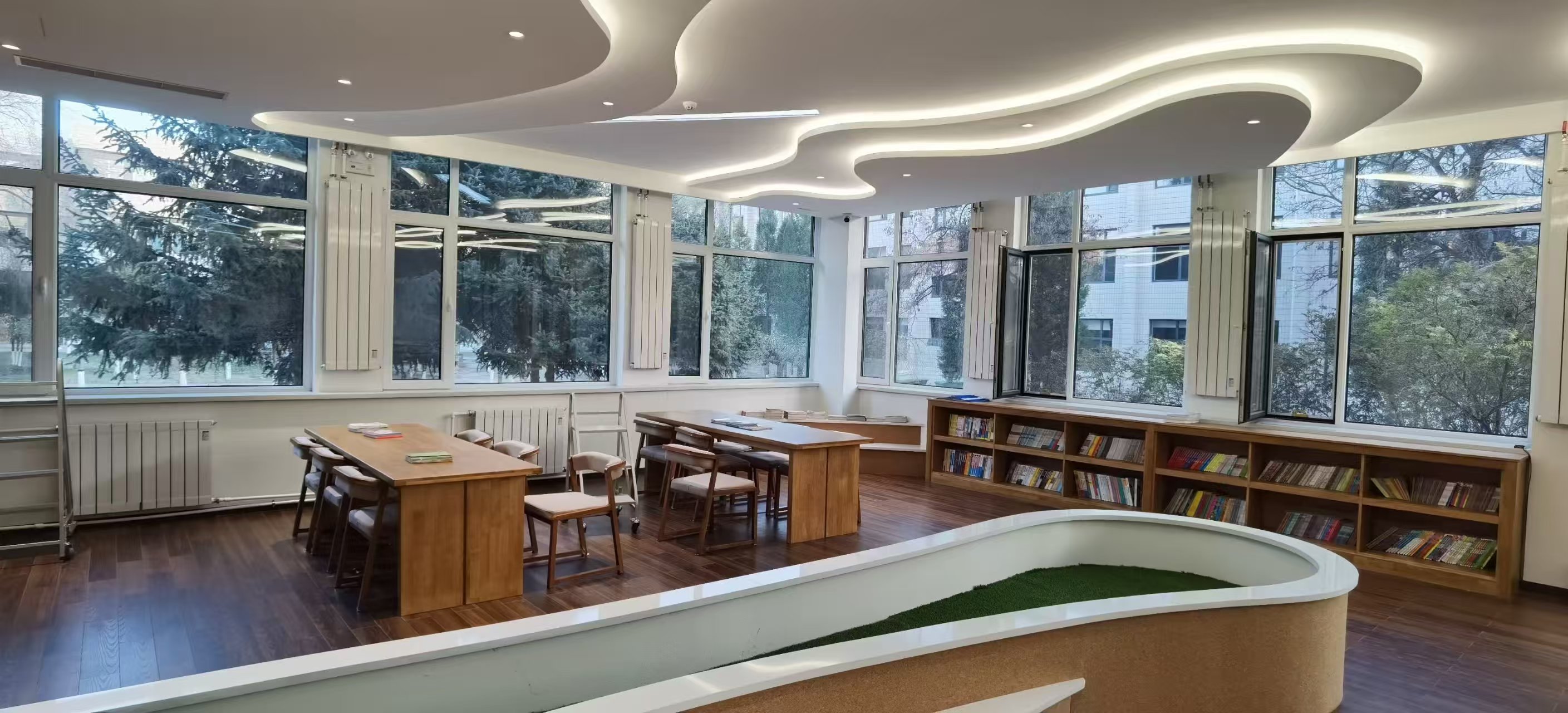 图书馆翻新后成为学校的亮点工程,提升了学校的整体形象。弧形设计与自然元素的融合体现了学校的文化底蕴和对教育的重视,吸引了更多师生和外界的关注。