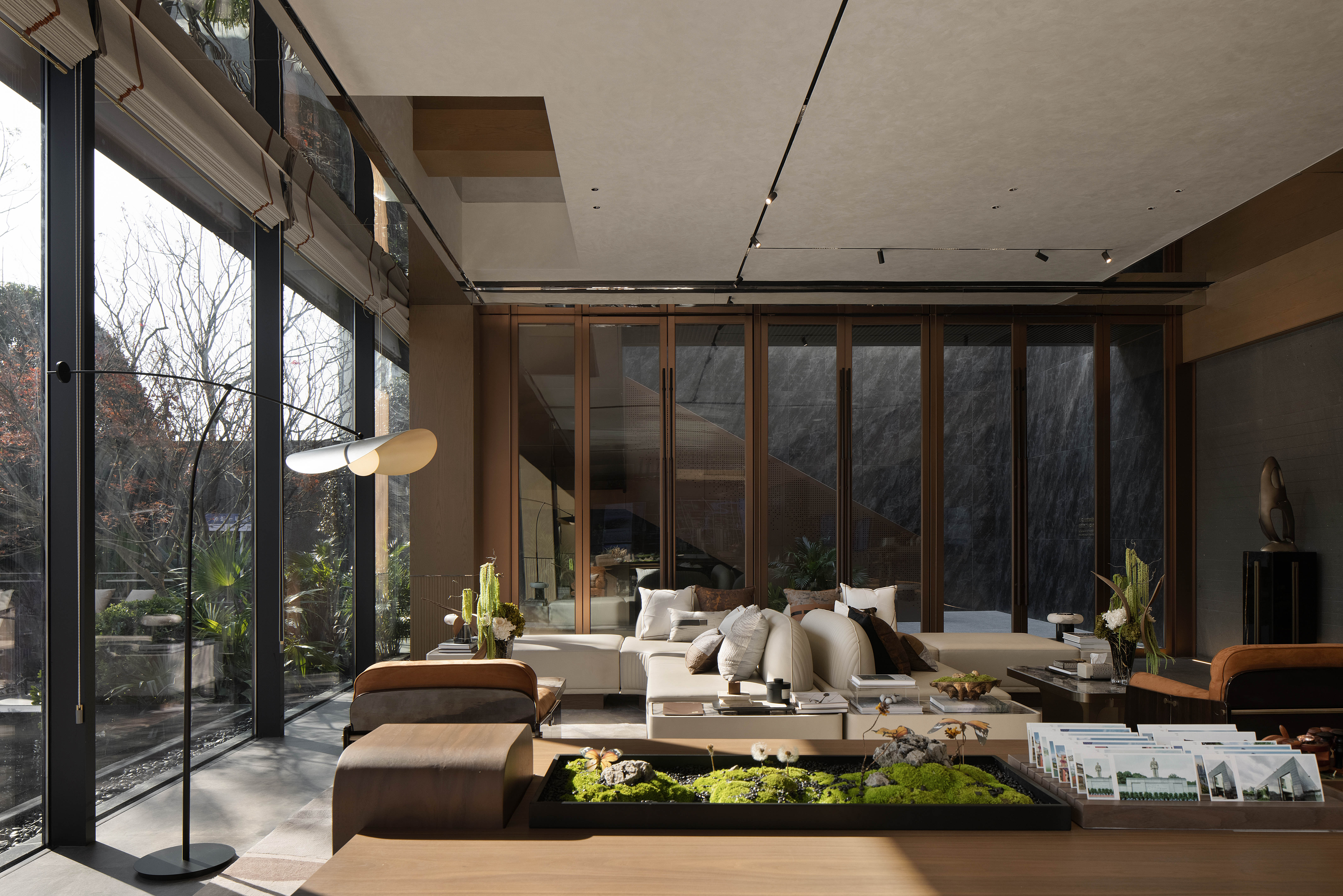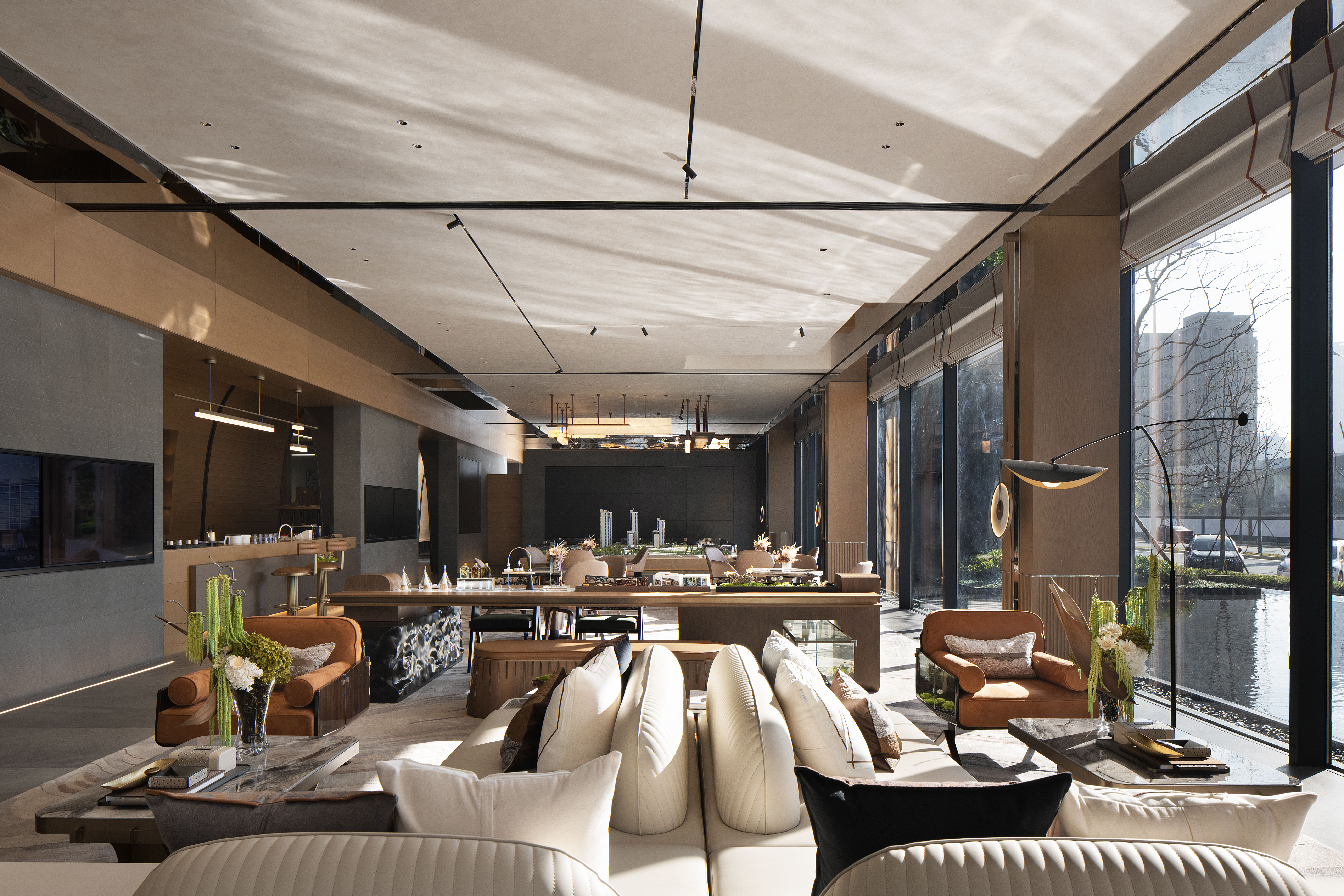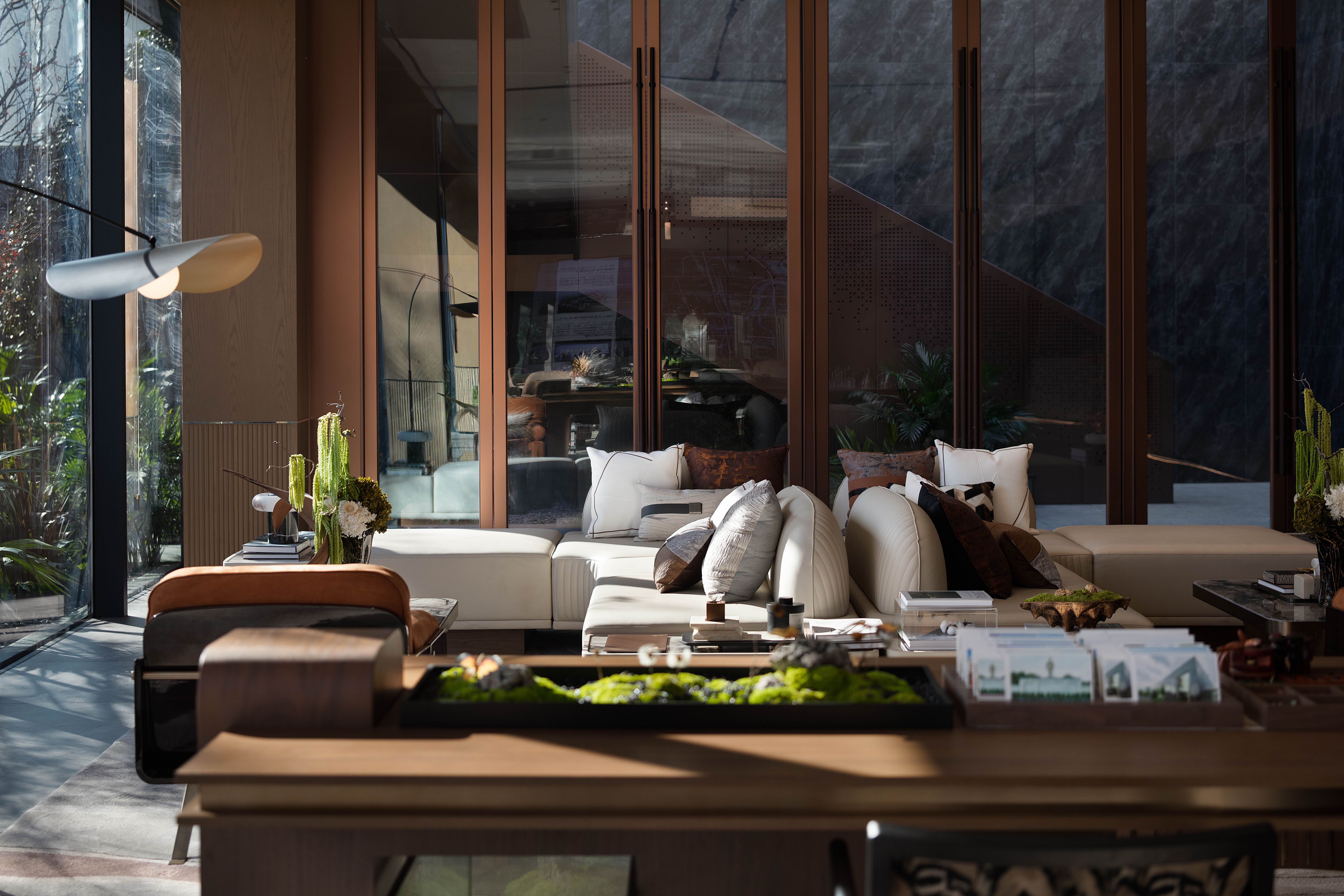 设计选材:售楼处也是归家大堂,打造舒适惬意的社交环境是重要的,后续成为归家大堂时,不需要再进行改造,而是直接转化成业主休闲放松的好去处,为业主提供更多生活化场景的便利。