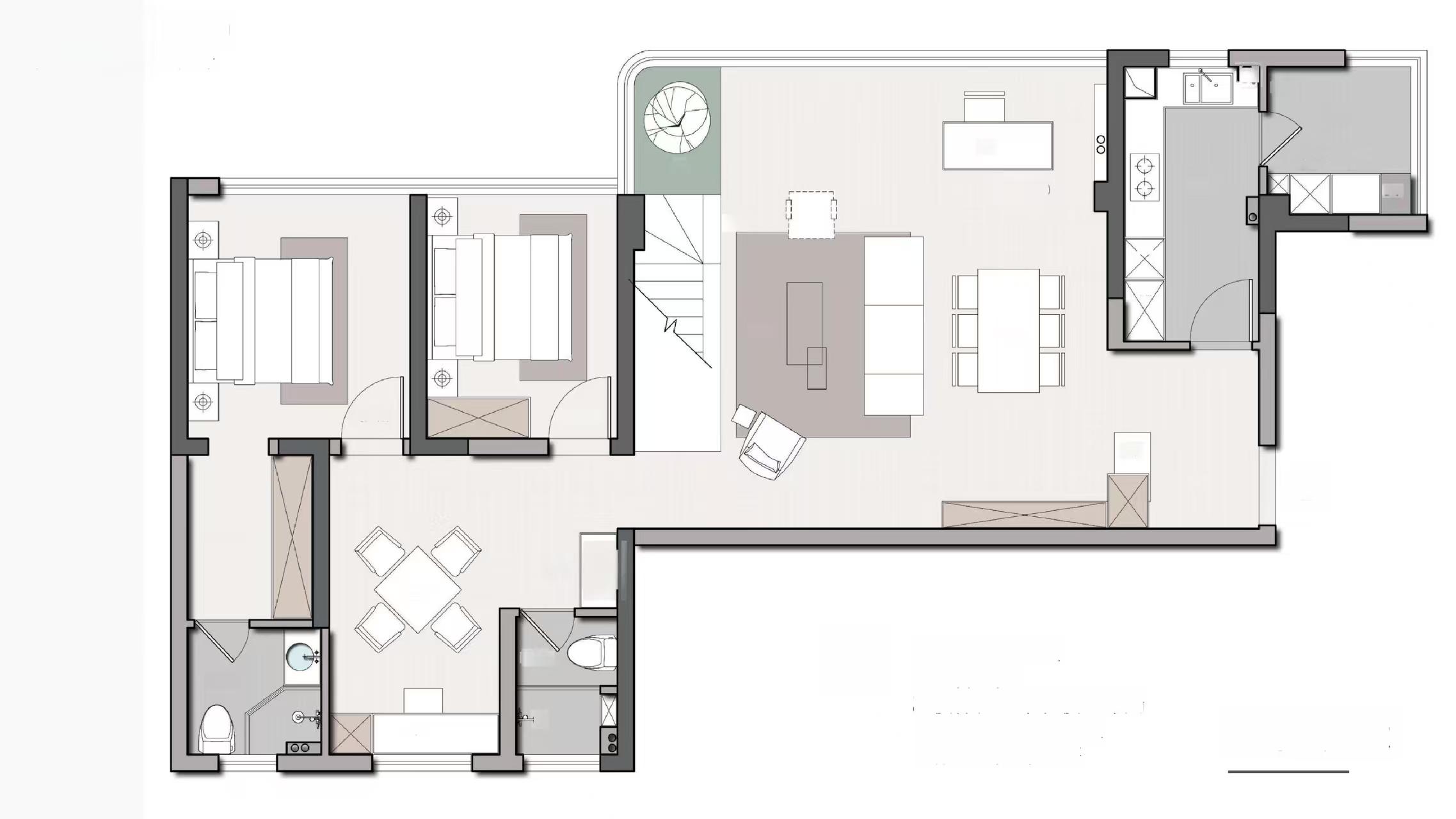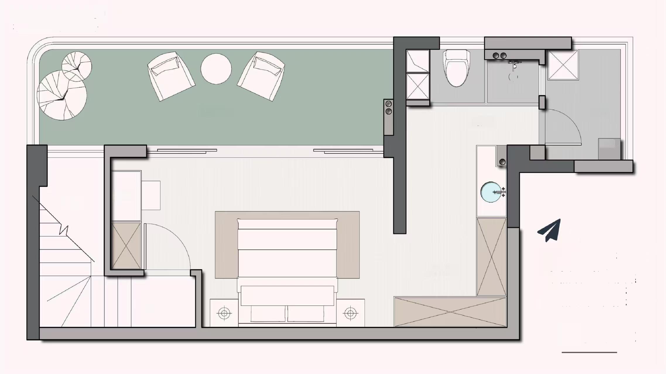 利用复式楼天然的动线特点,合理区分业主使用场景,保证个空间使用便利性。