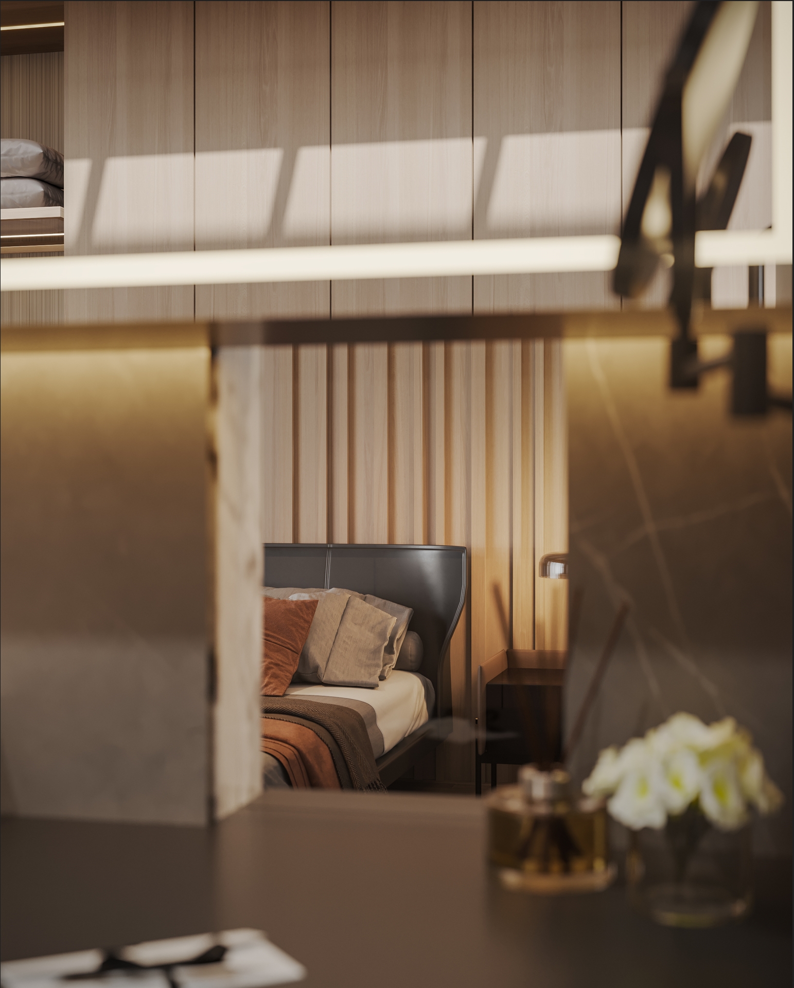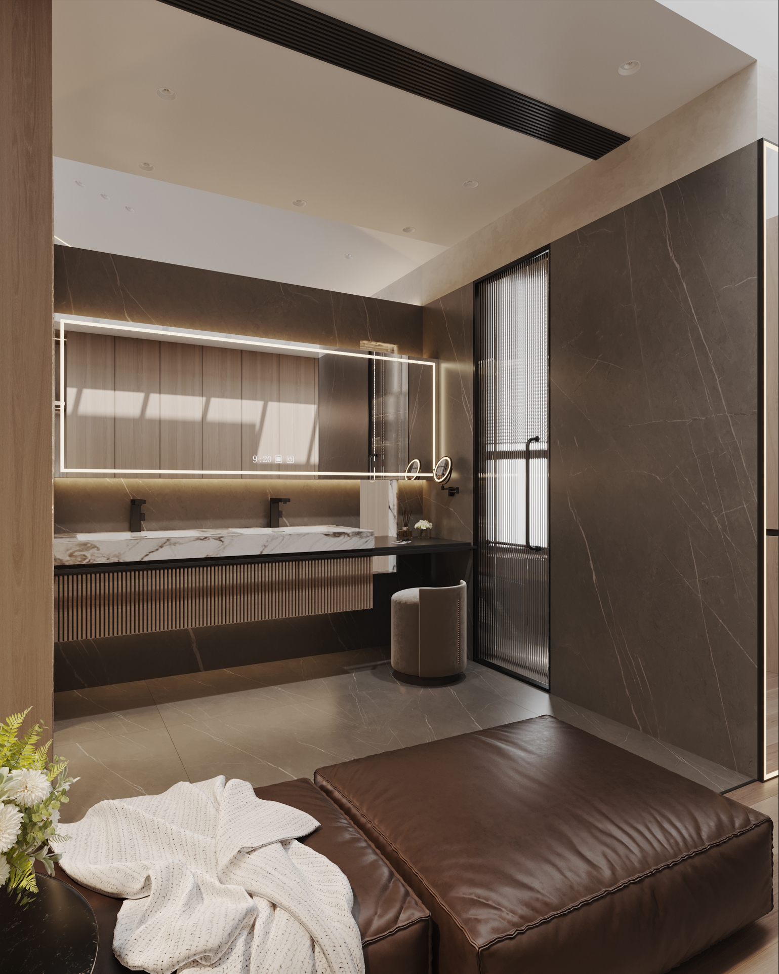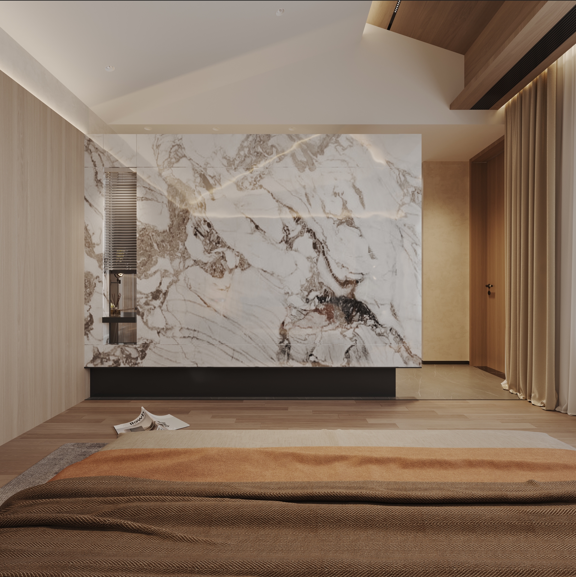 设计选材:以岩板、木饰面为主,让空间干净利落,但是不堆砌,点到位置,改留白的地方留白。