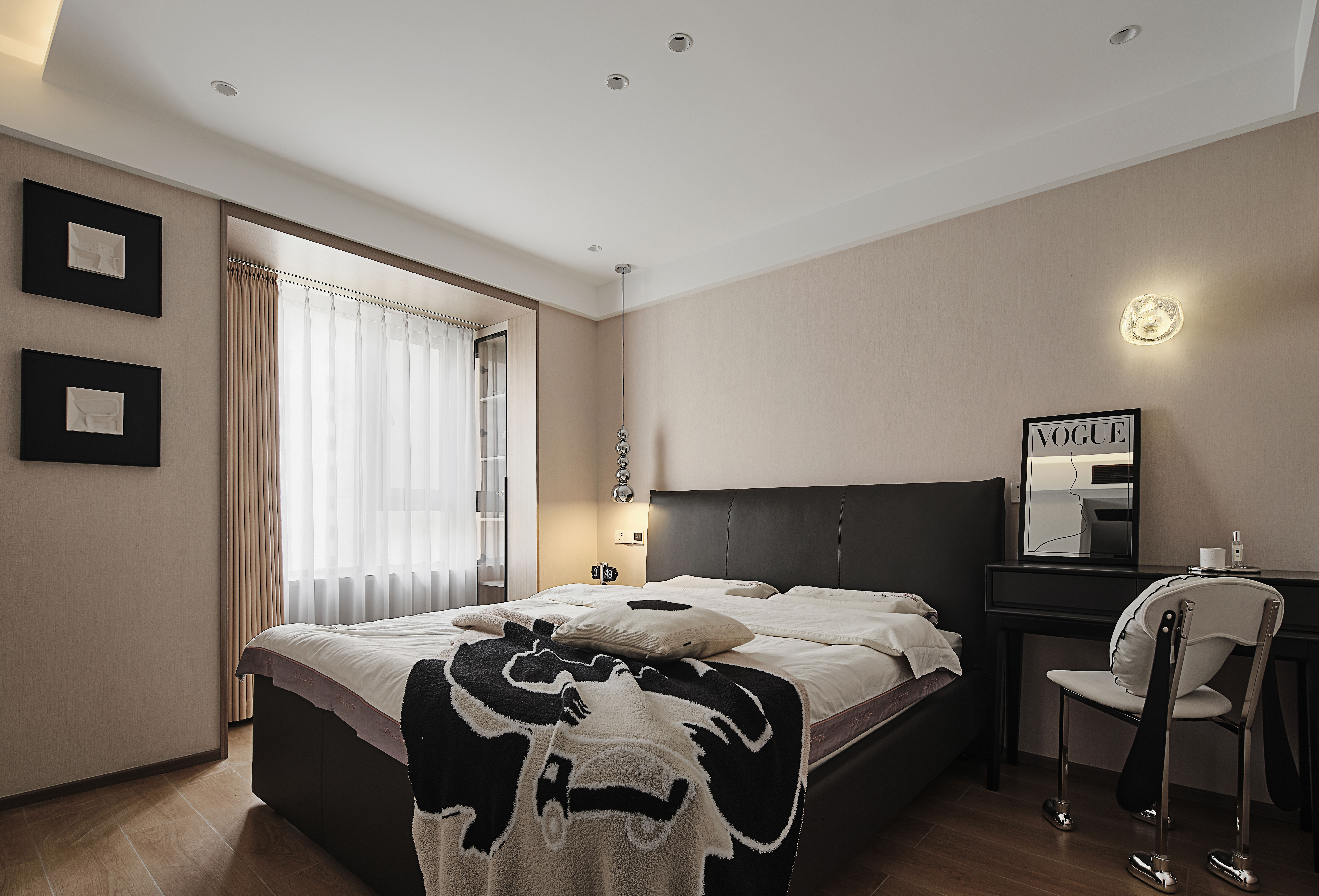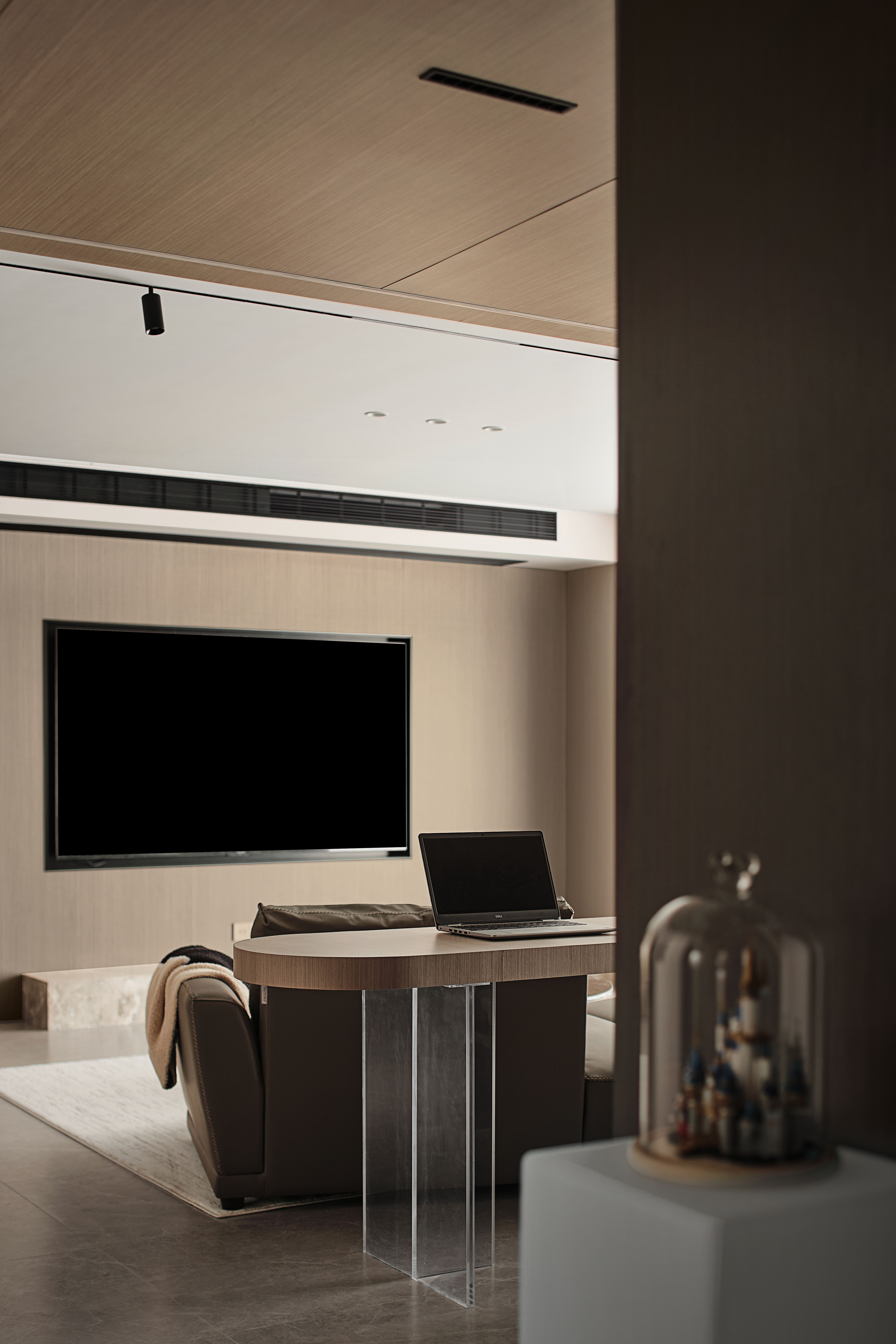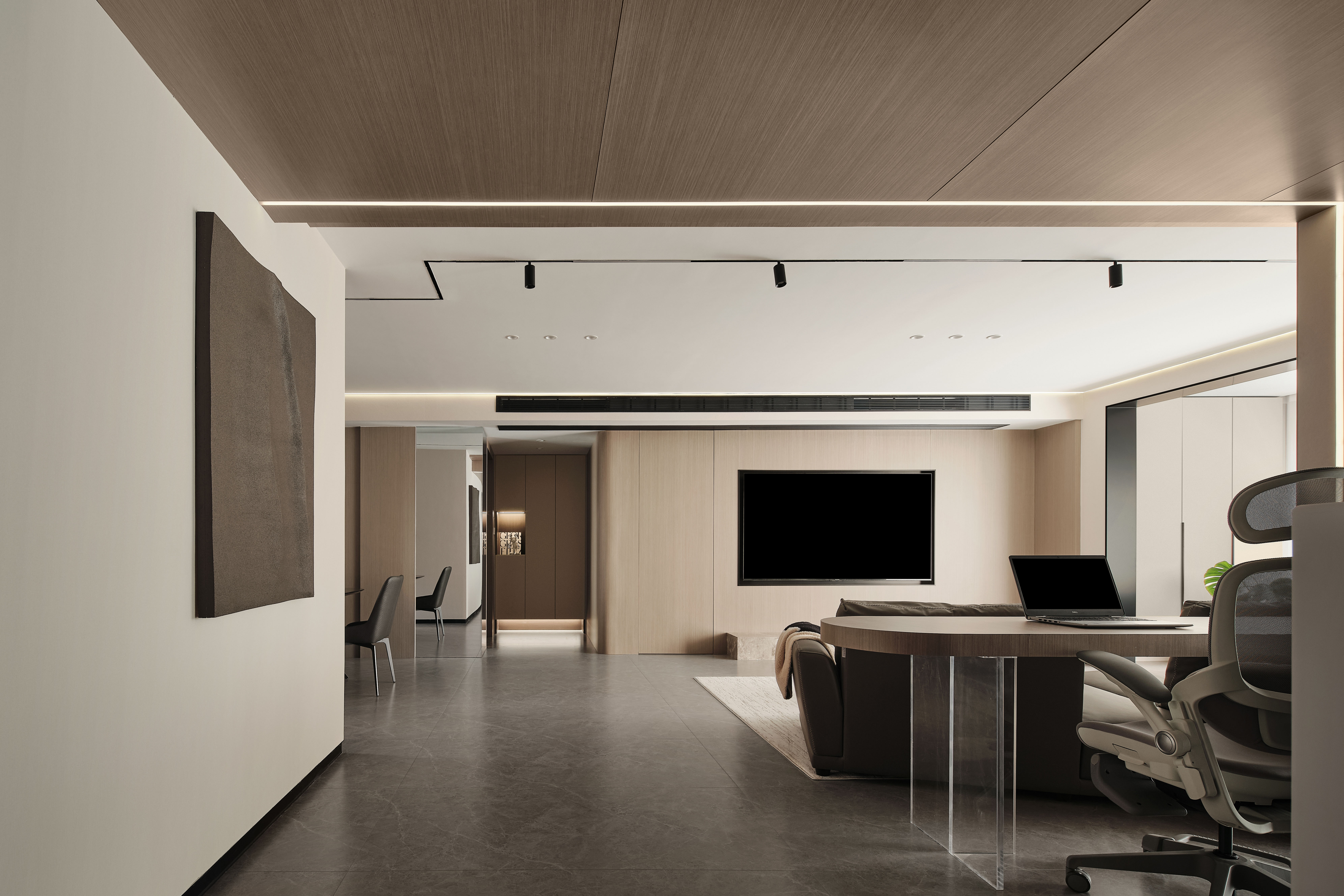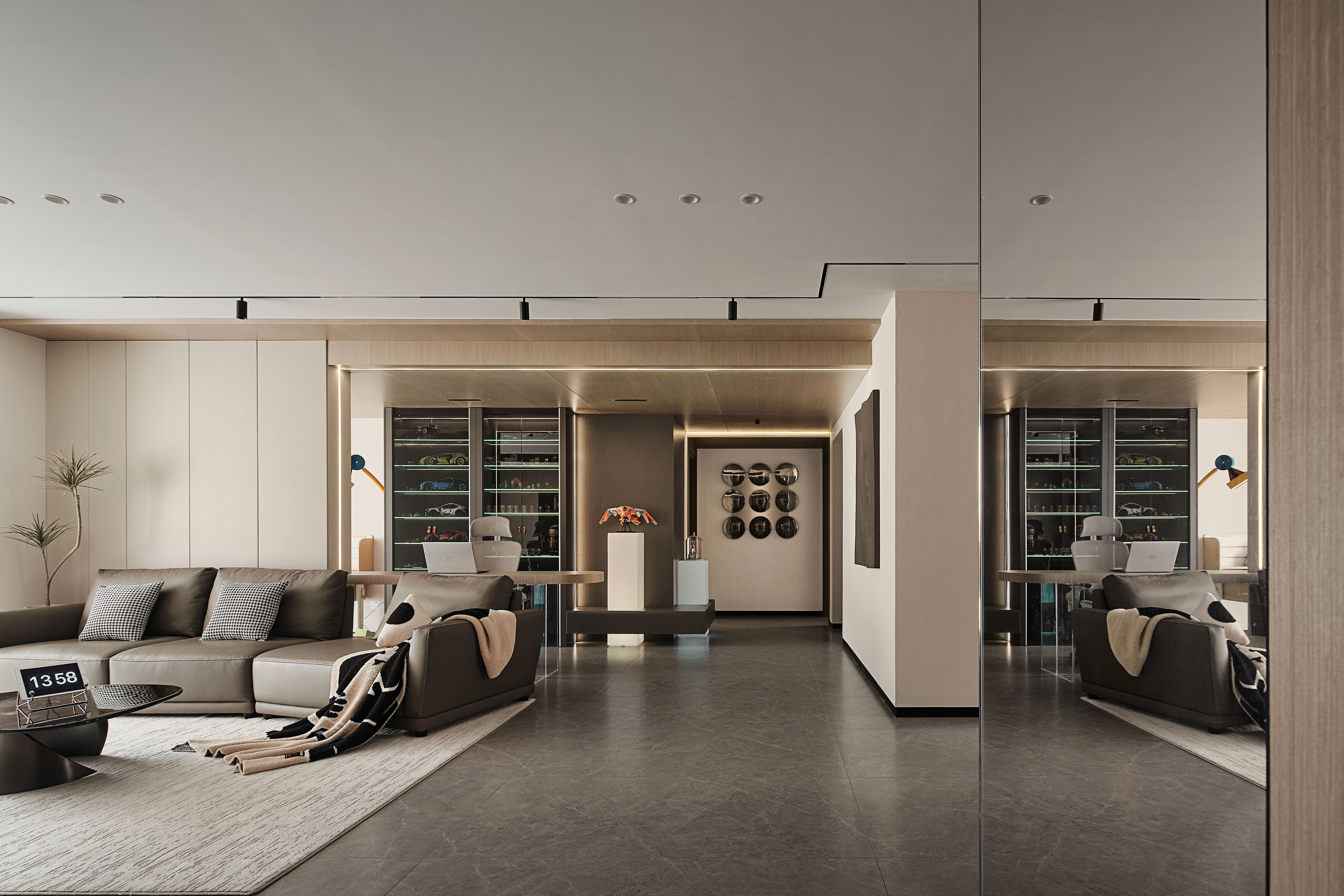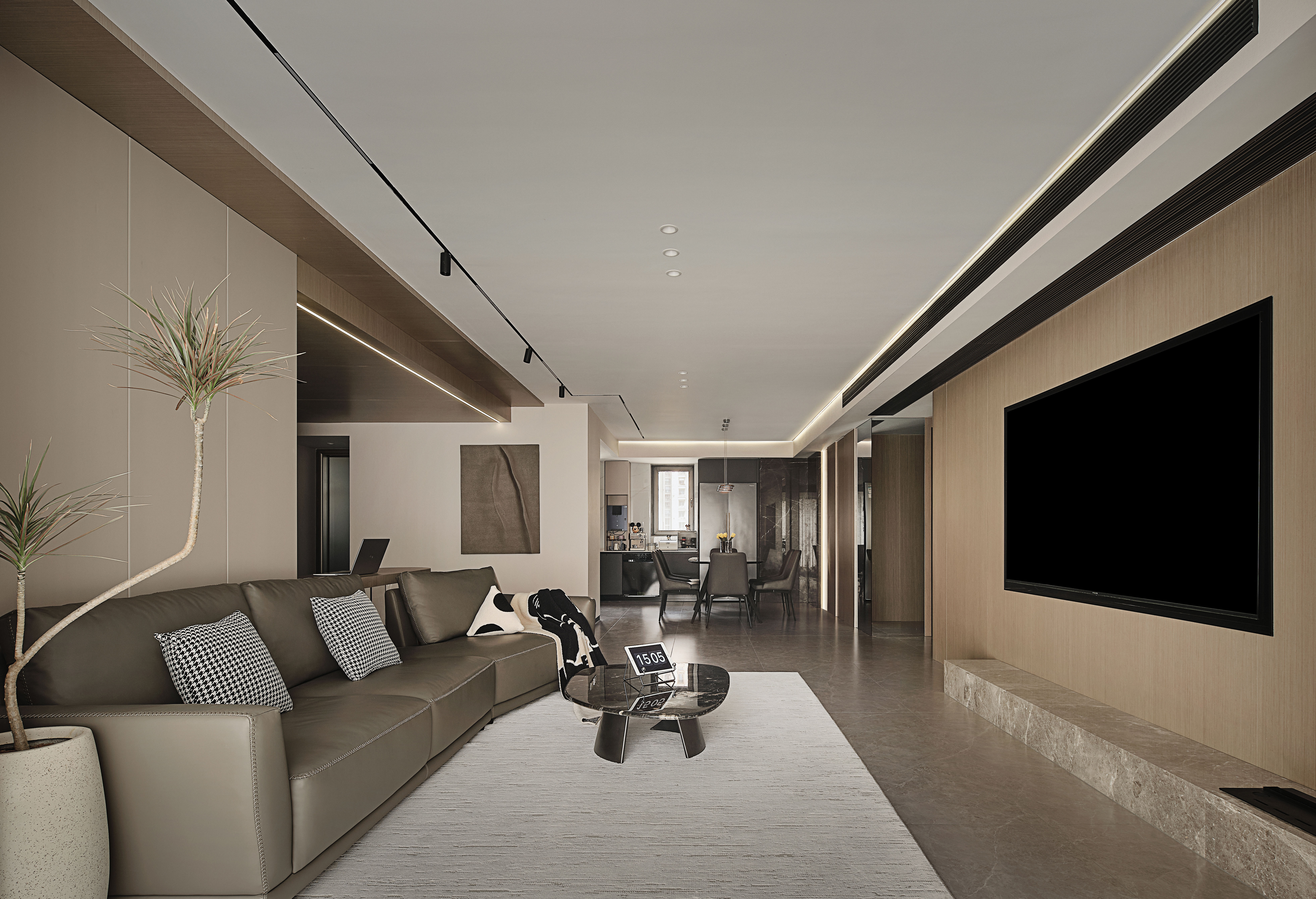 本案设计将客餐厅分别连接主脉络两端,南北窗相互穿透,自由游走于宽阔的空间场景,围合出情感聚集的能量,促进家人之间交流与互动。开放式餐厨搭建自由连贯的交流场景烹饪,就餐,闲聚,为空间赋予无限生动的变量,跟随日常形态切换动态电影,共创生活风云。