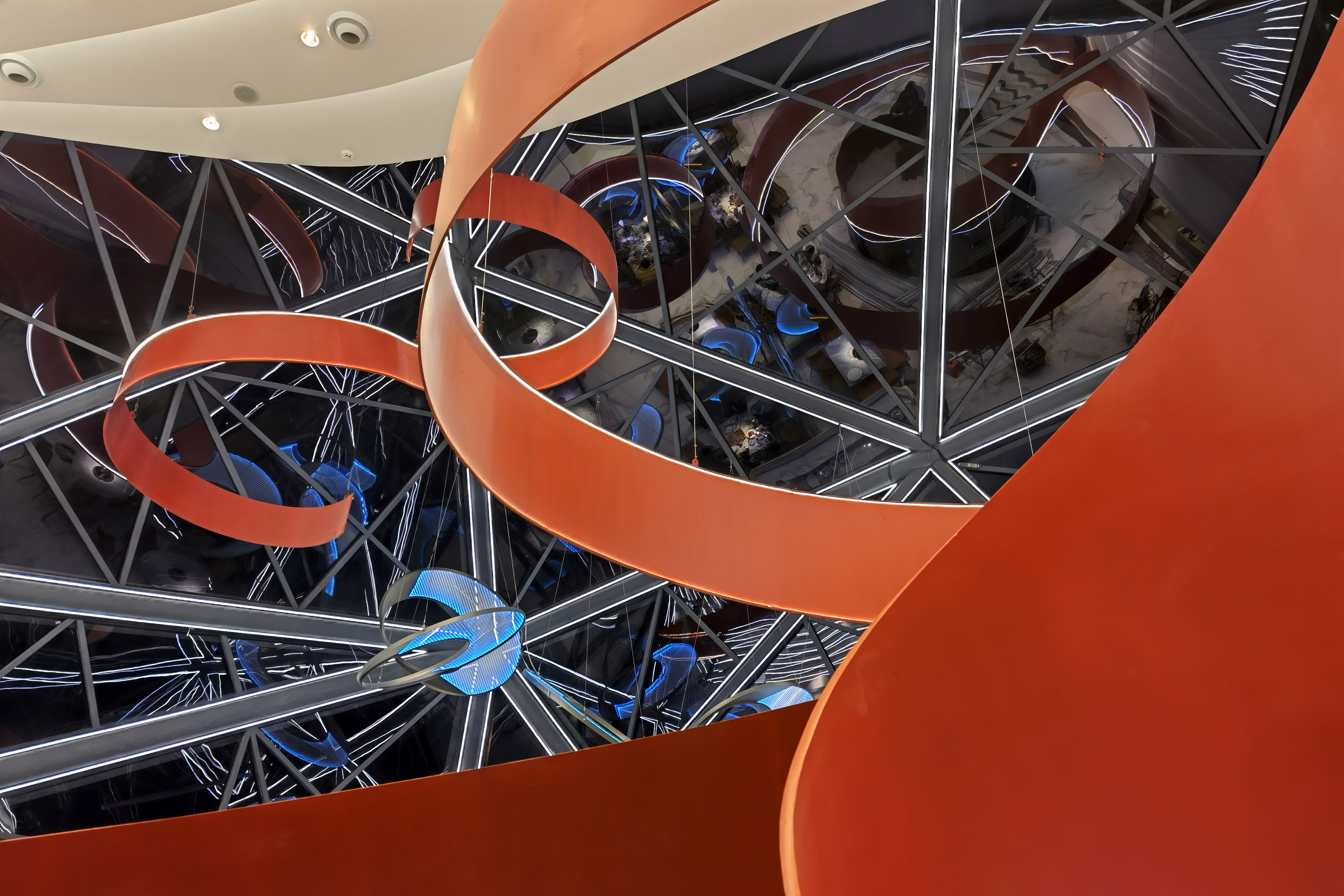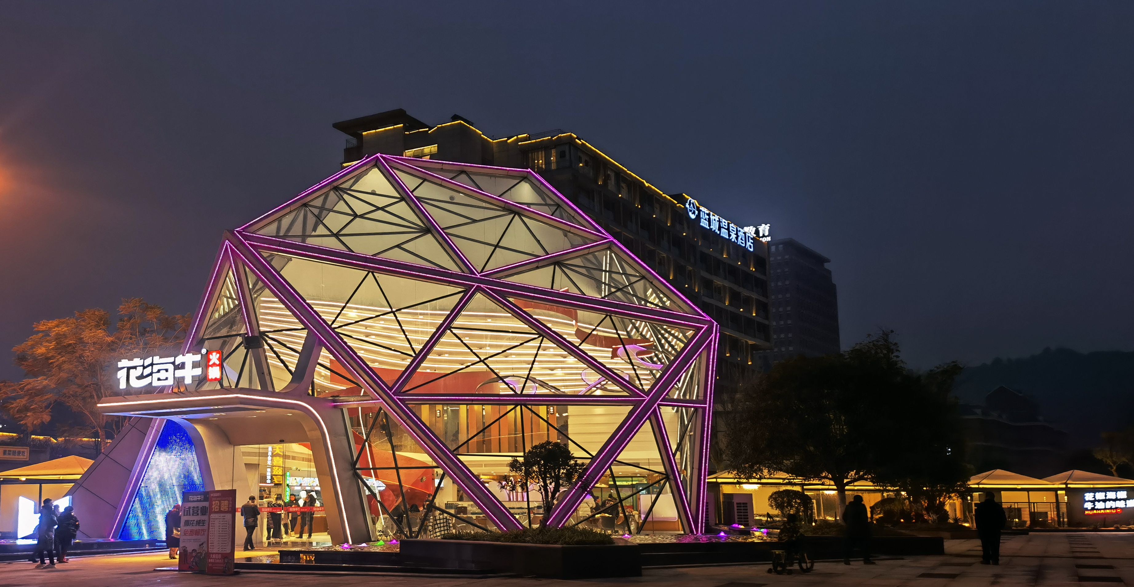 本案位于四川南充这一巴蜀火锅盛行的城市,在众多的火锅店一面的市场下,如何脱颖而出,利用原来建筑物的独特性,我们利用艺术化呈现,营造关于科幻场景火锅新概念,打破对火锅餐厅的传统认识,让食客沉浸式体验非凡的火锅之旅。