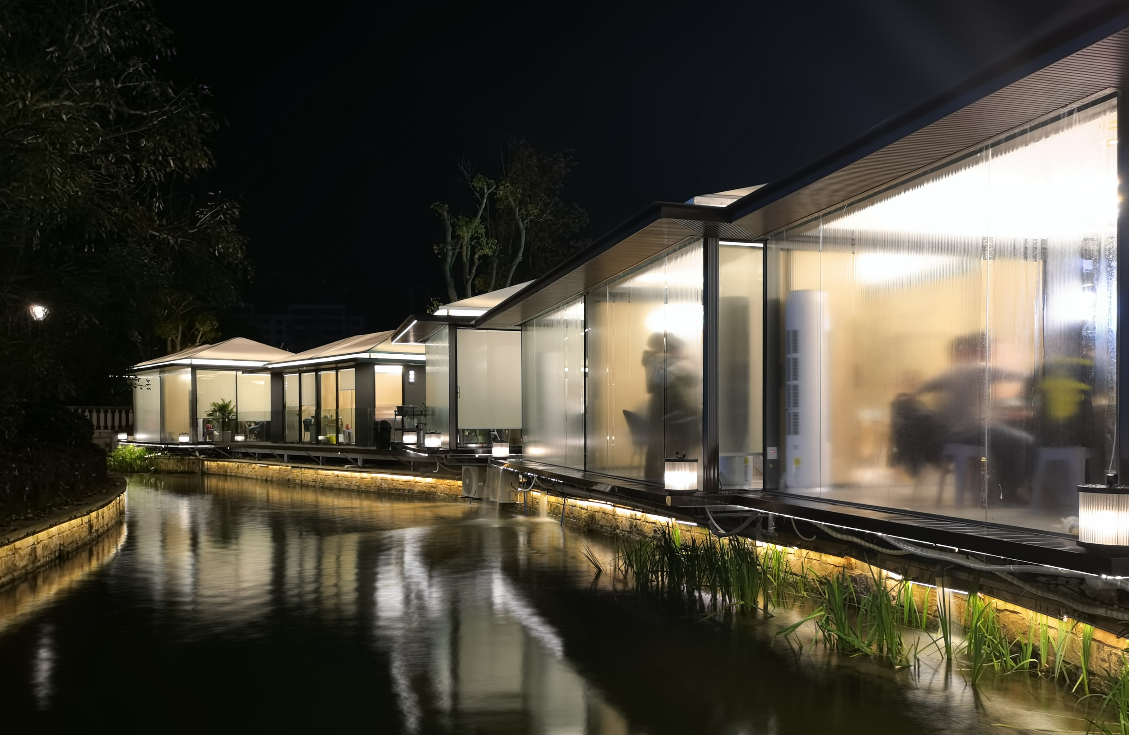 主题空间尽量利用原建筑结构作为空间设计的元素,后场空间采用钢构建筑,从修造到装修一体化,从而达到投资的经济性。
