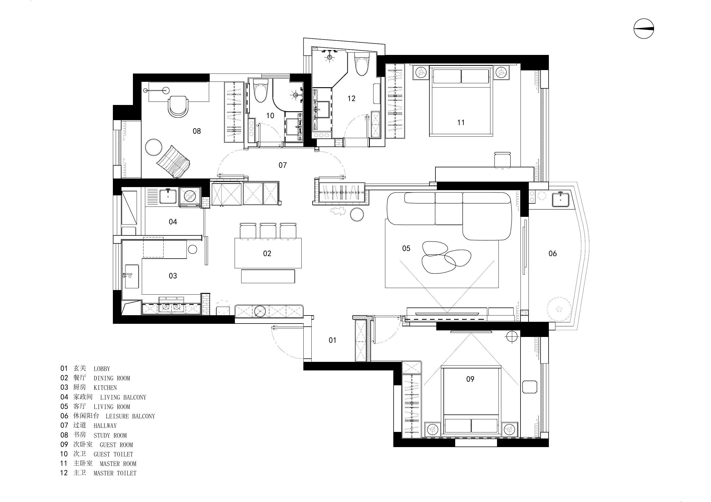 空间布局:强调开放性和流动性,打破门厅客厅与餐厨的界限,让居者自由地移动与呼吸...