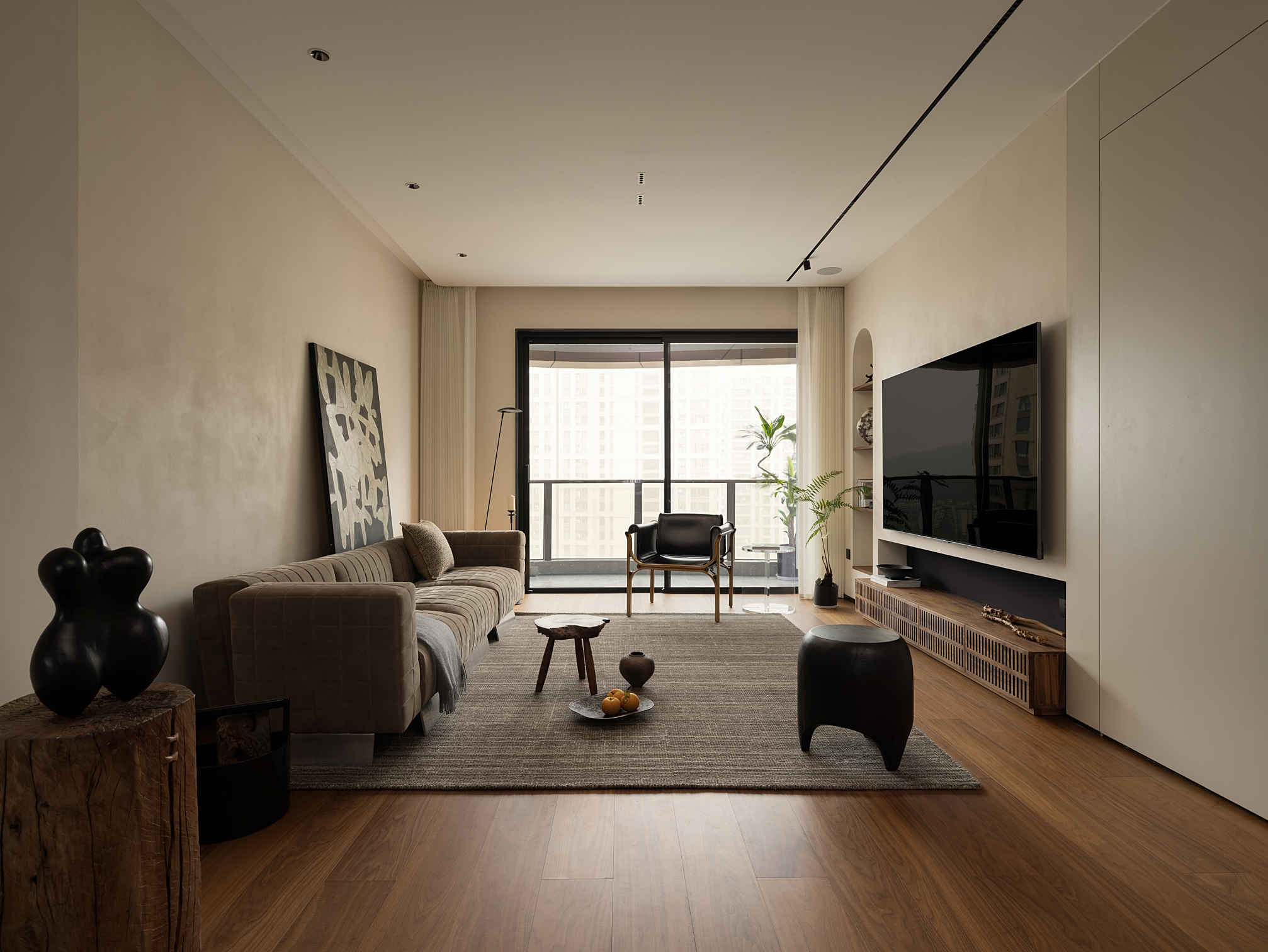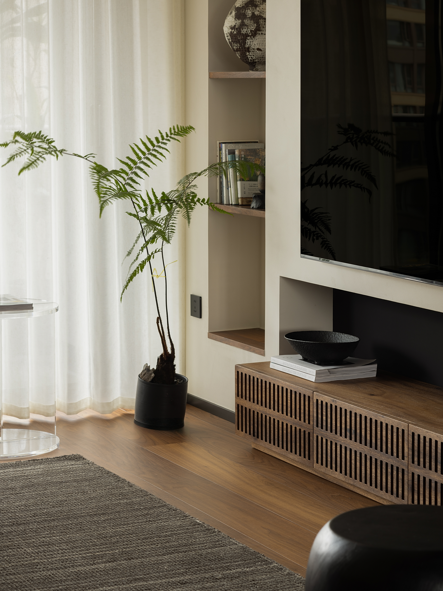 自然松驰的家 向自然探寻,生活之韵 向艺术求索,空间之灵 每一次归家,即是一场栖心旅程 从自然中汲取灵感,将自然元素巧妙的融入家居中,一抹翠绿的植物,一块未经雕琢的原石,都是自然的馈赠。让居者在家的场域里,感受到自然的韵律和节奏。 空间强调开放性和流动性,打破客厅与餐厨界限,让居者自由地移动与呼吸。大面积的落地推拉窗,让自然光线和微风形成对流,自然延伸至家中的每一个角落。
