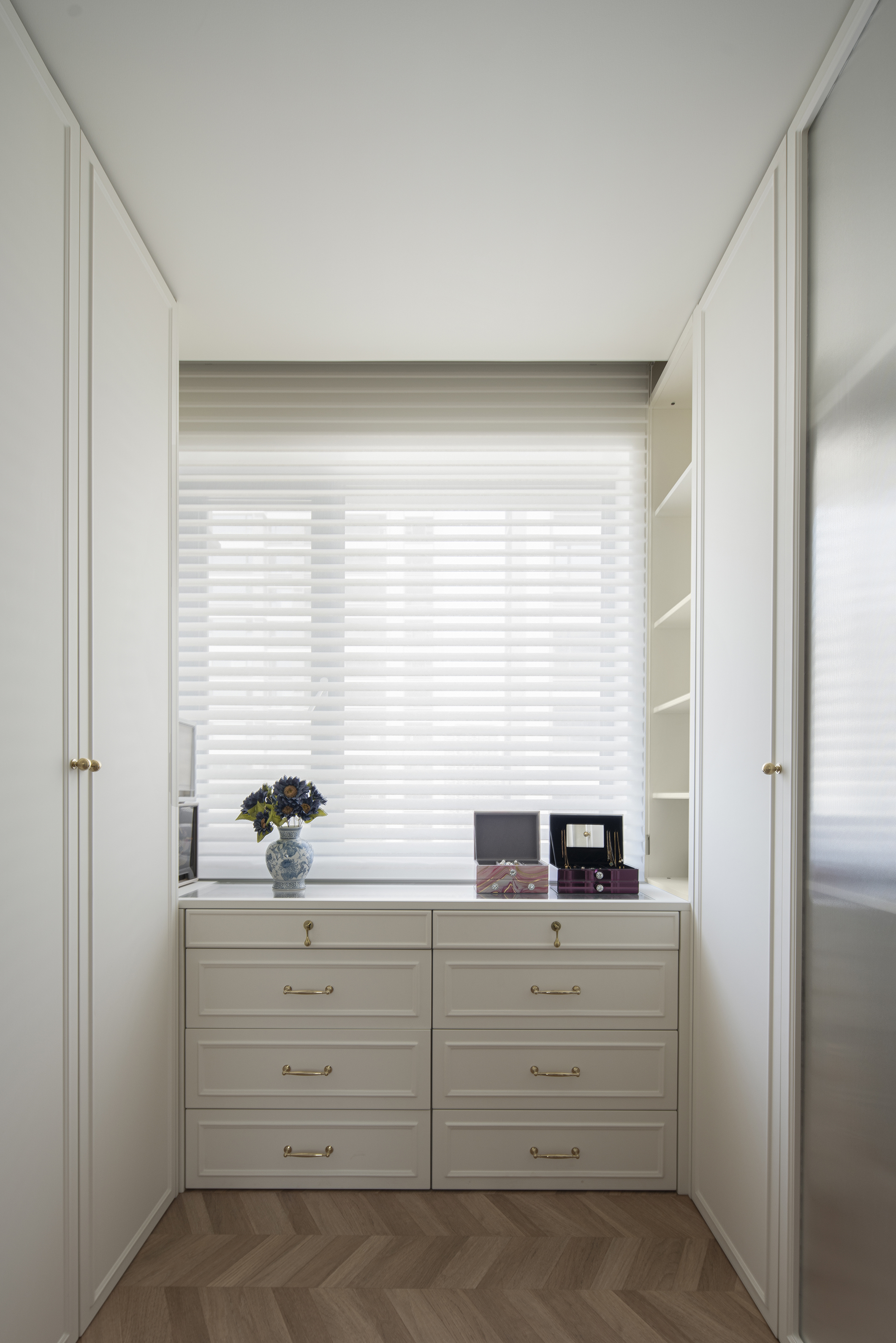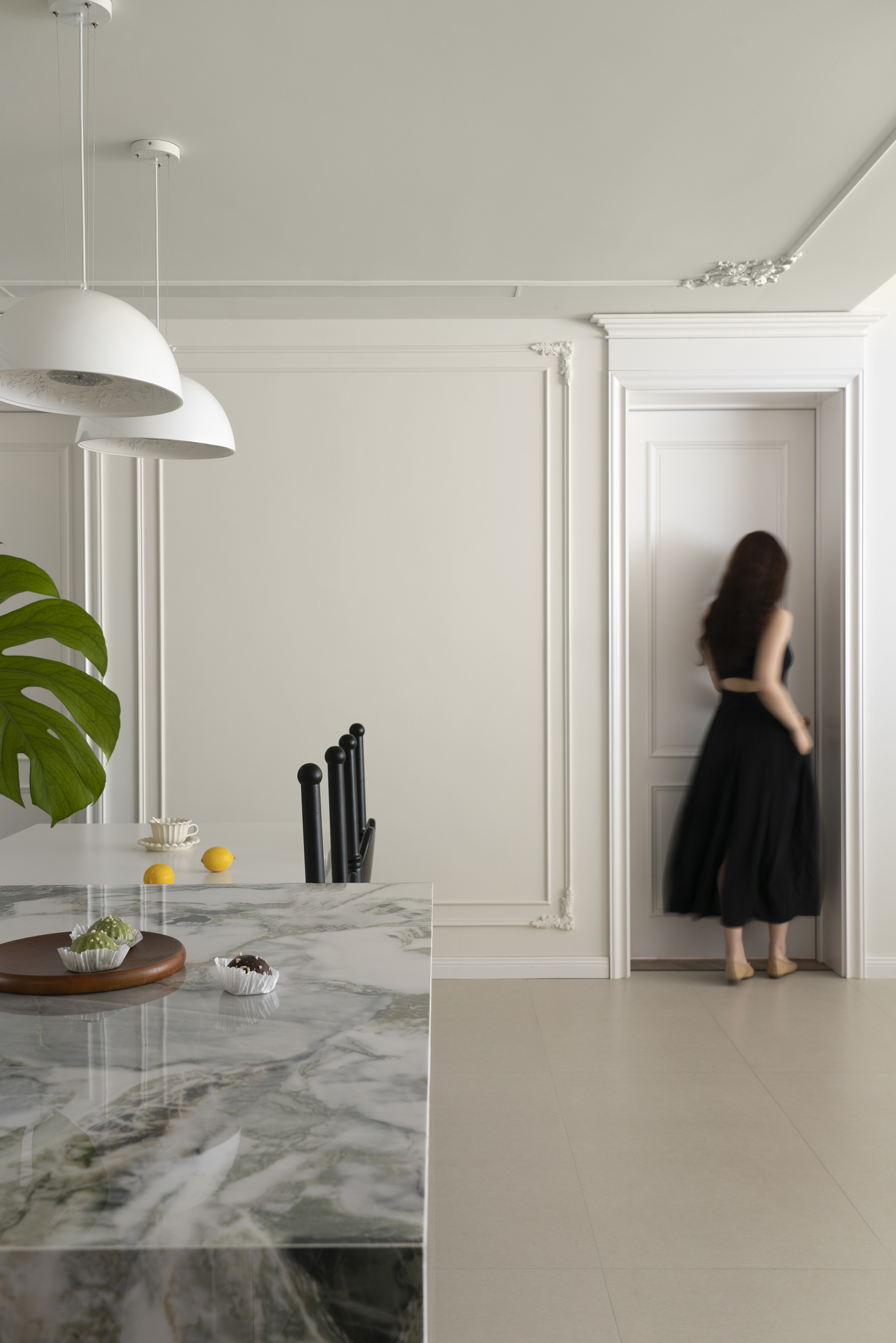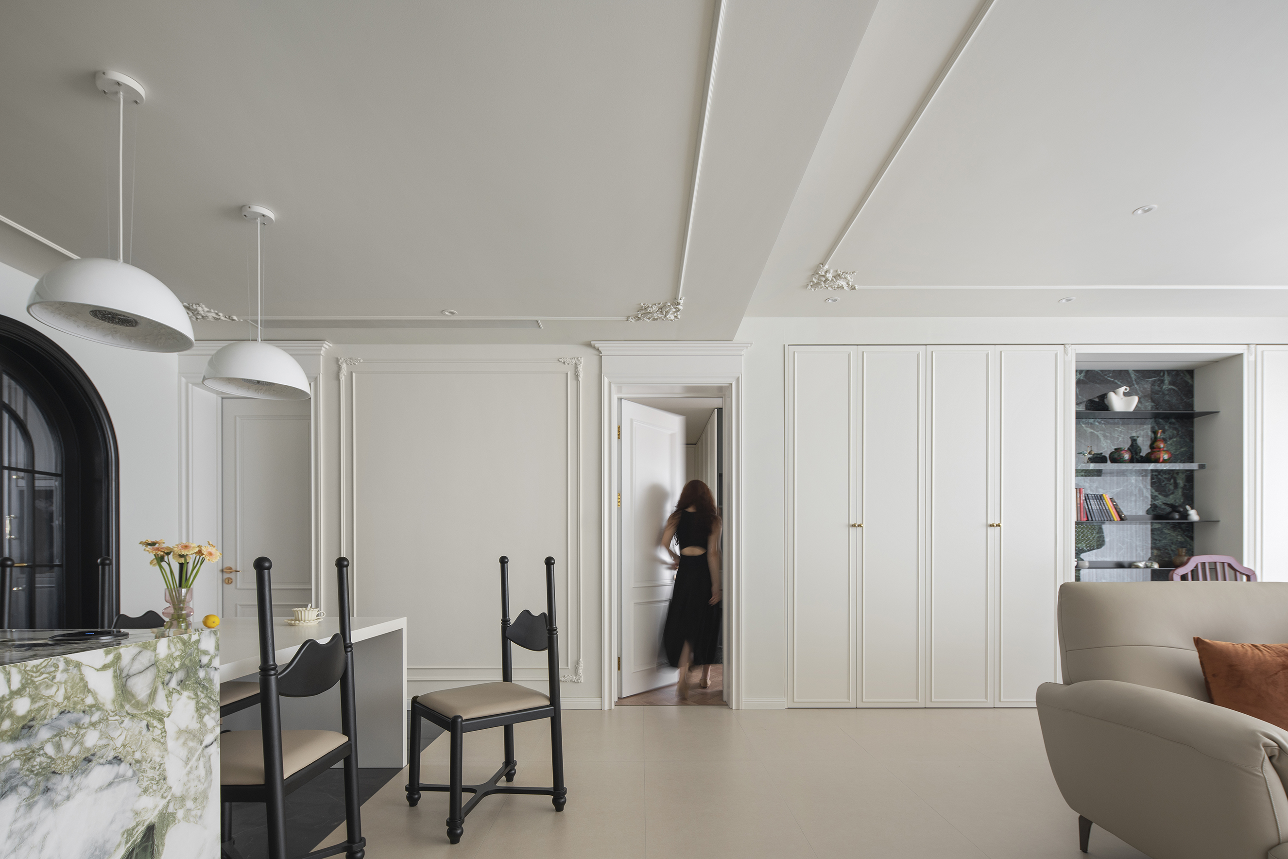 设计师用克制平衡的手法将经典的法式浪漫元素运用在设计之中。融合了业主的个人生活习惯,使设计与业主本人合二为一,打造出独属于业主的法式风格。