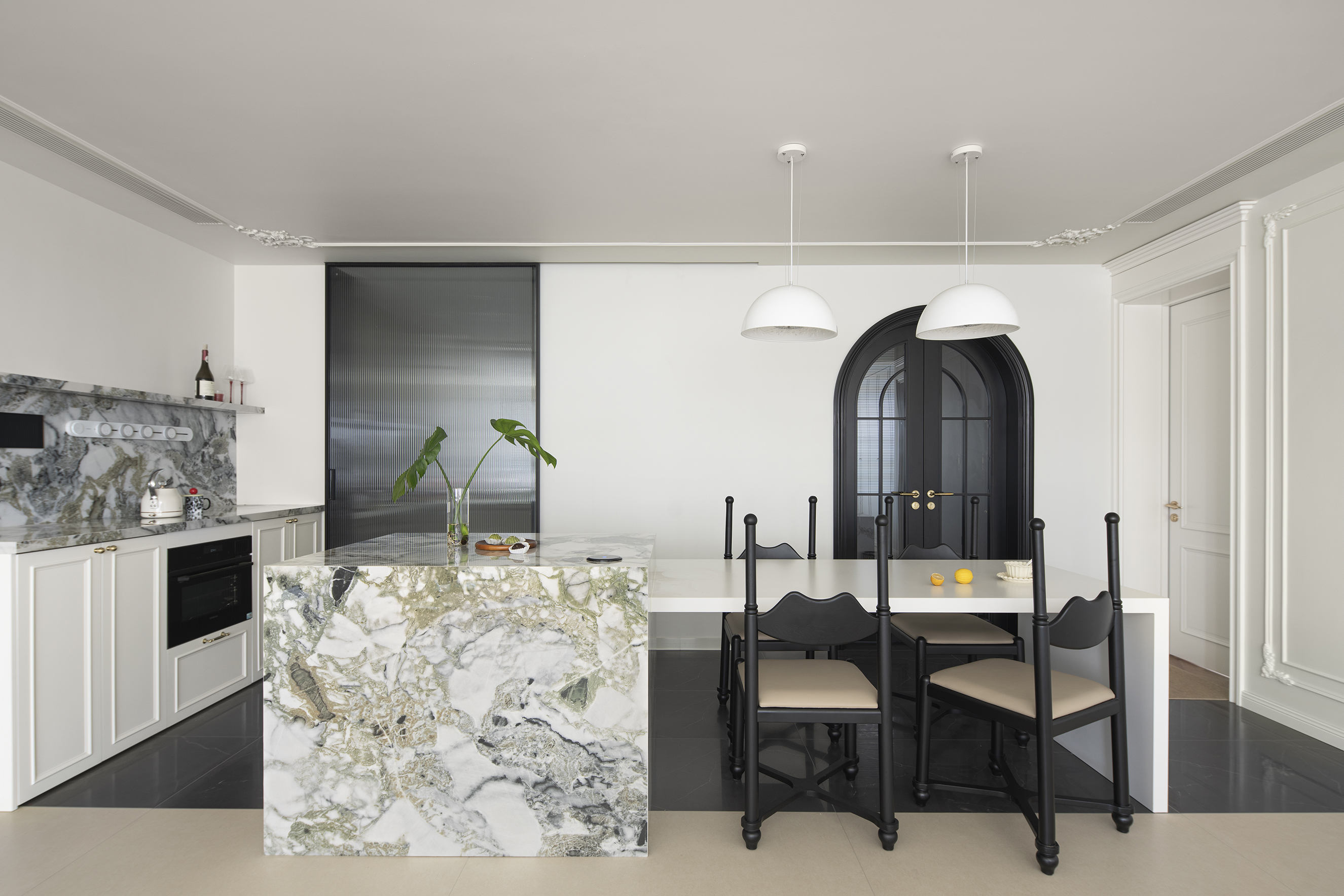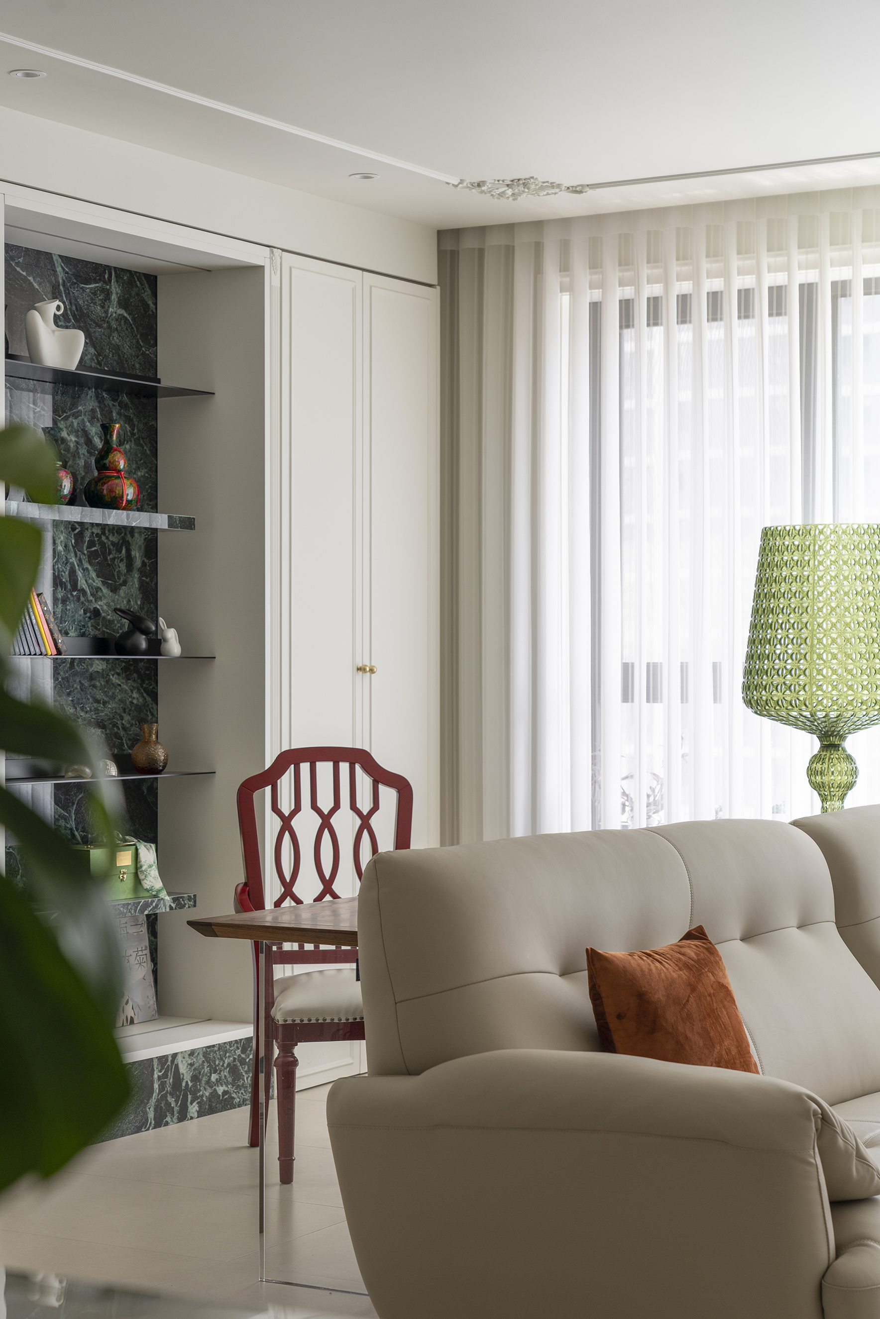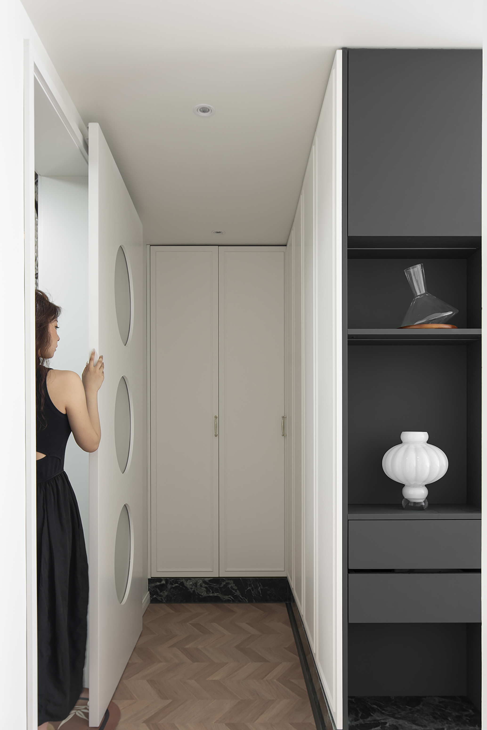 设计师用克制平衡的手法将经典的法式浪漫元素运用在设计之中。融合了业主的个人生活习惯,使设计与业主本人合二为一,打造出独属于业主的法式风格。