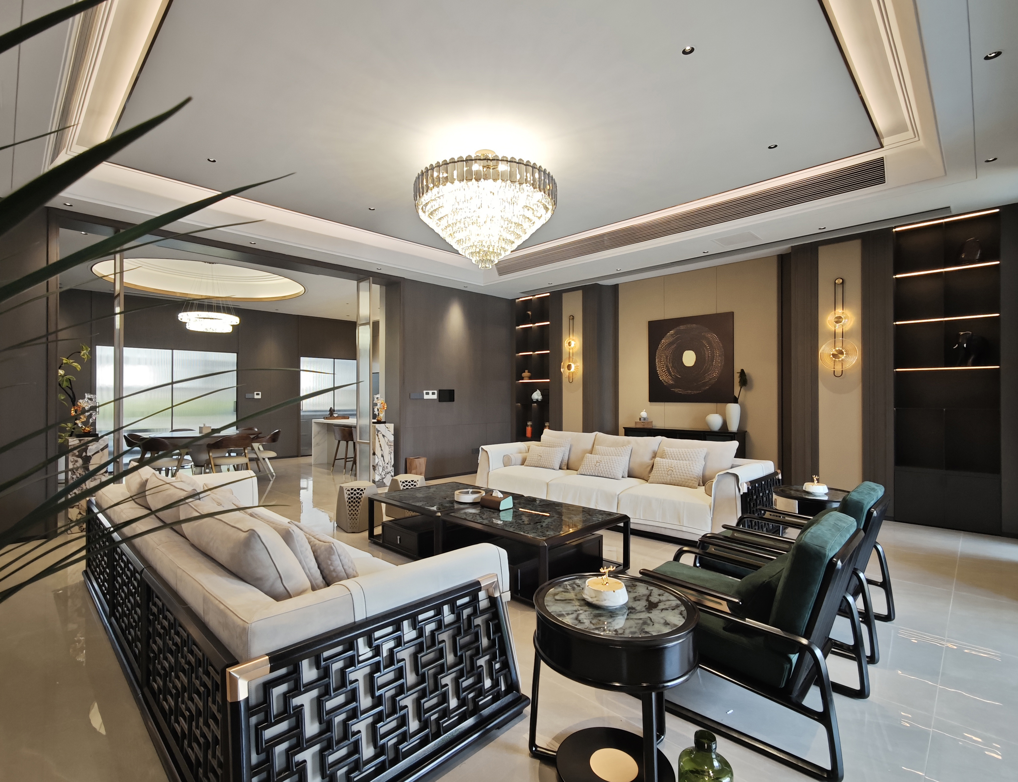 项目定位:设计是一种超越风格的语言,将东方的雅致跟西方的尊贵完美融合,打造出一个既现代有充满文化底蕴的空间。