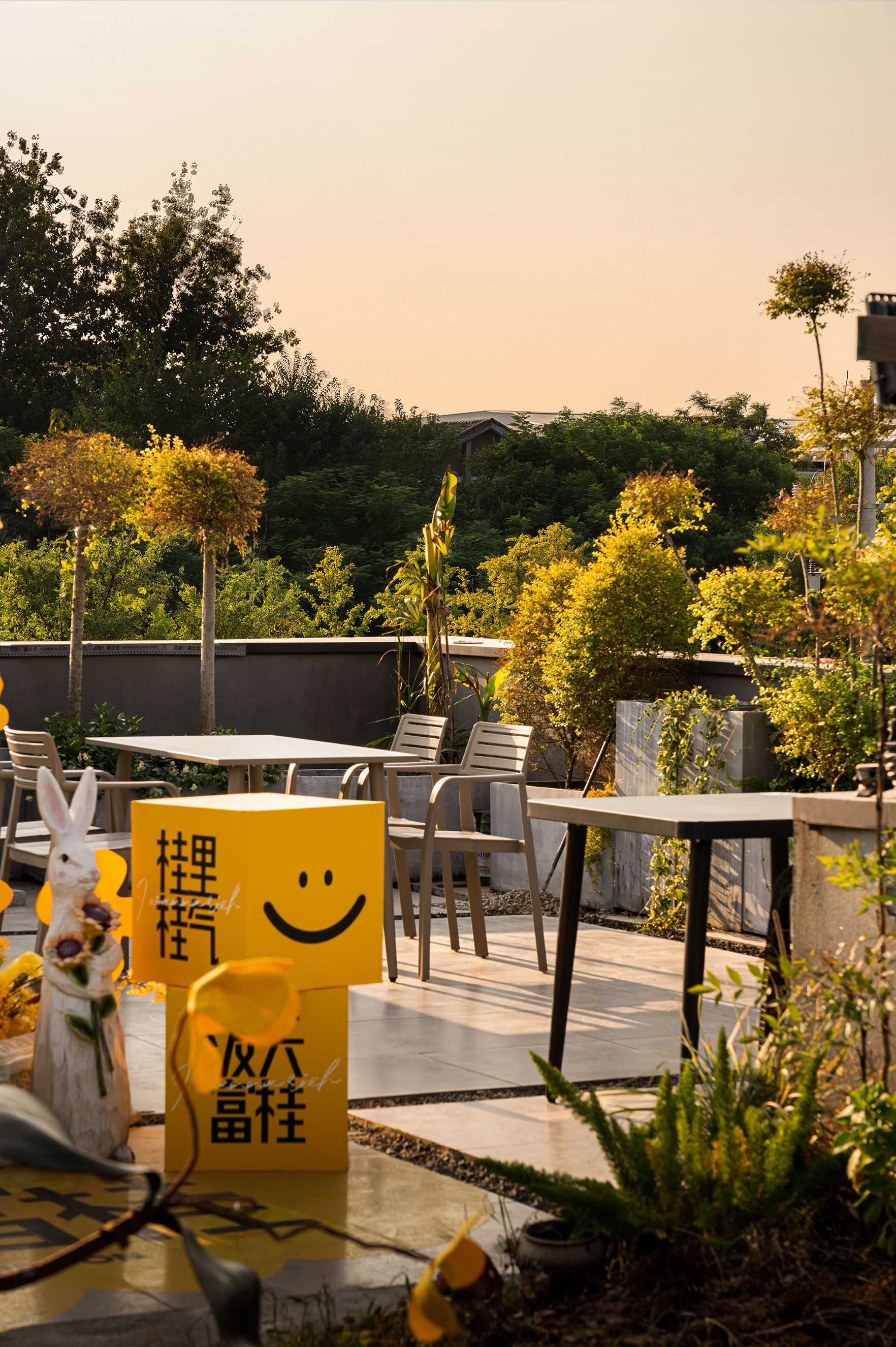 05 看夕阳 三层空间是独一无二的露台,城墙内郁郁葱葱的植物映入眼帘,这里能闻到四季的花香、看日出与日落。 在视线最好的边界处设计桌椅,通过景观处理形成层次错落的天然环境,不仅可以日常使用,简单布置就能丰富适应各种节假日主题。舒适度、自由度满分的社交场所。