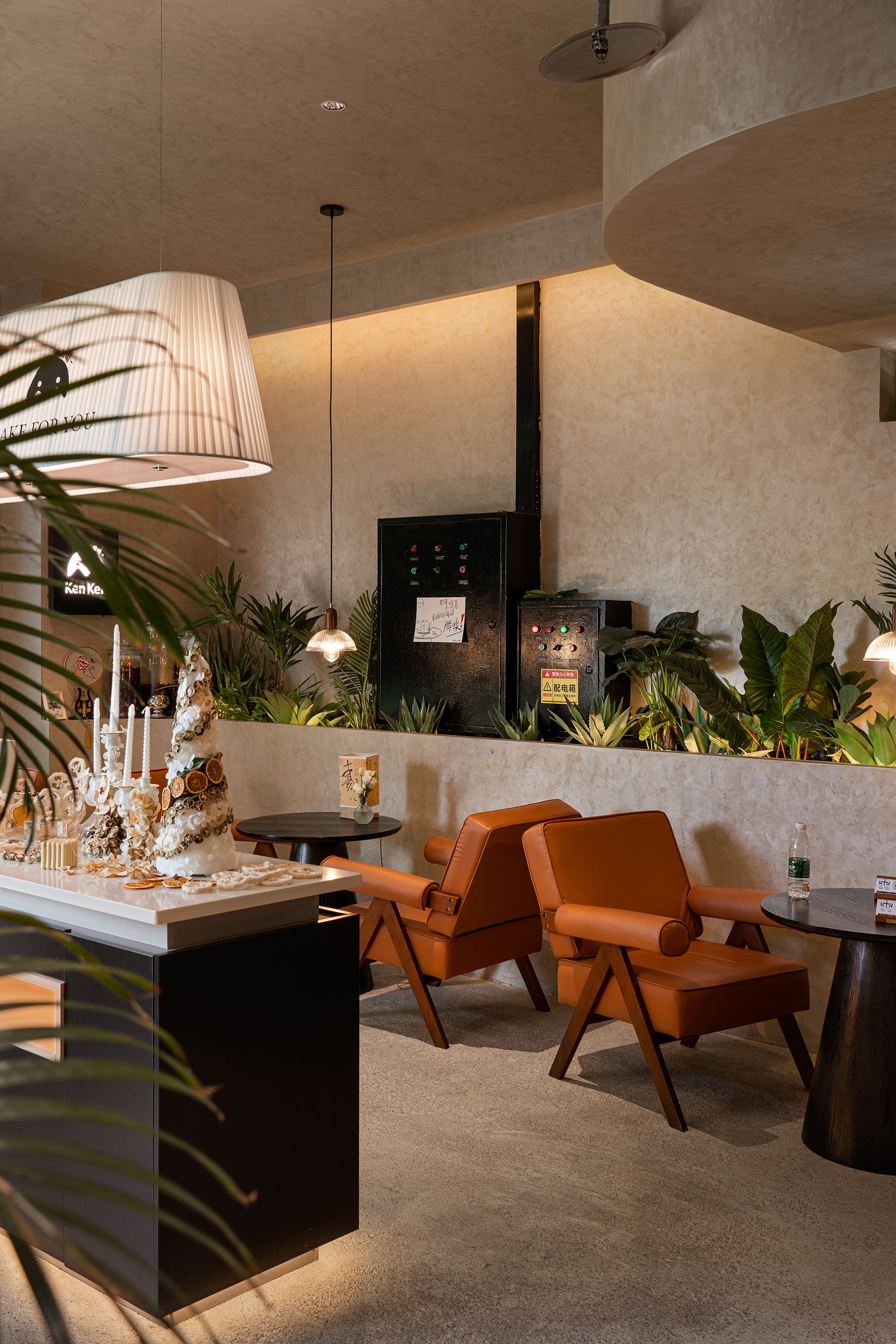 自然光线与室内暖光交织出会呼吸的温暖感。甜品的香气及视觉的体验足以唤醒食欲与幸福的感知力。