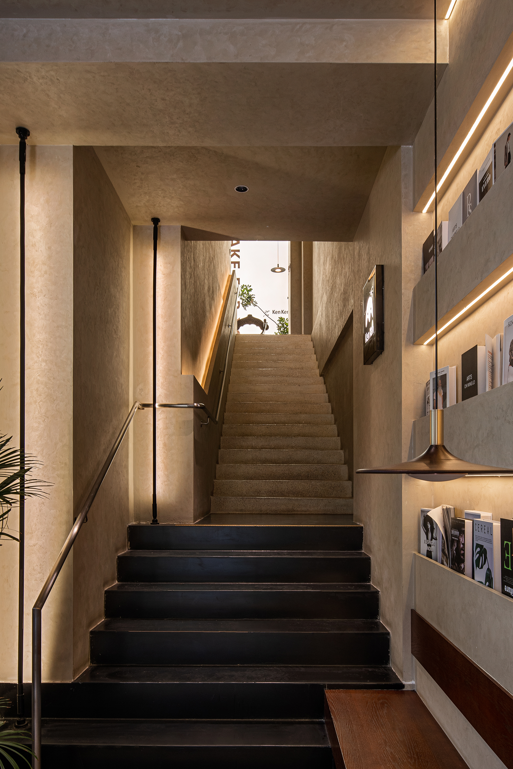 03 去感受,去体验 楼梯,衔接着上下两层空间,隐藏灯带引导着顾客穿梭于不同区域。