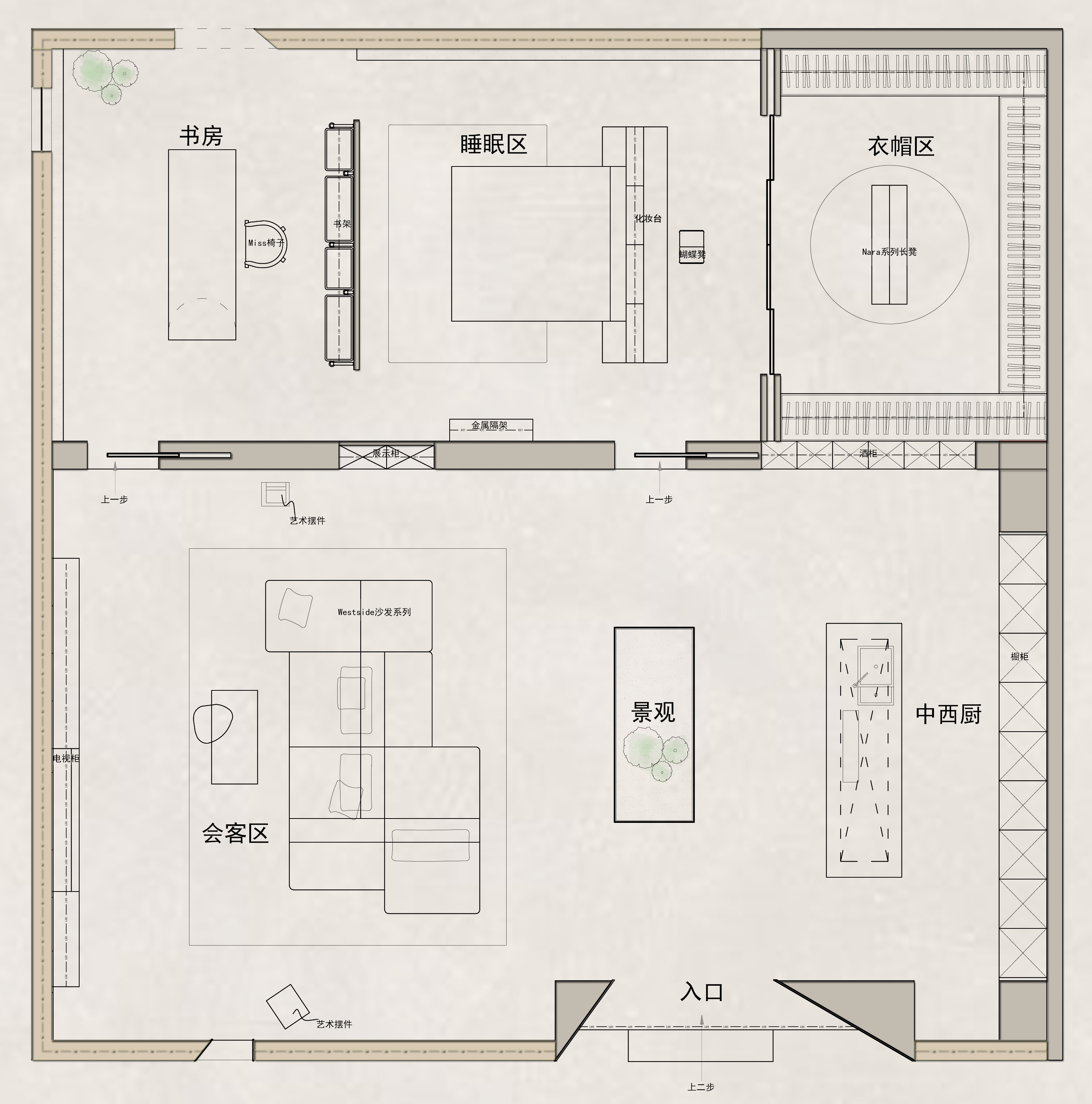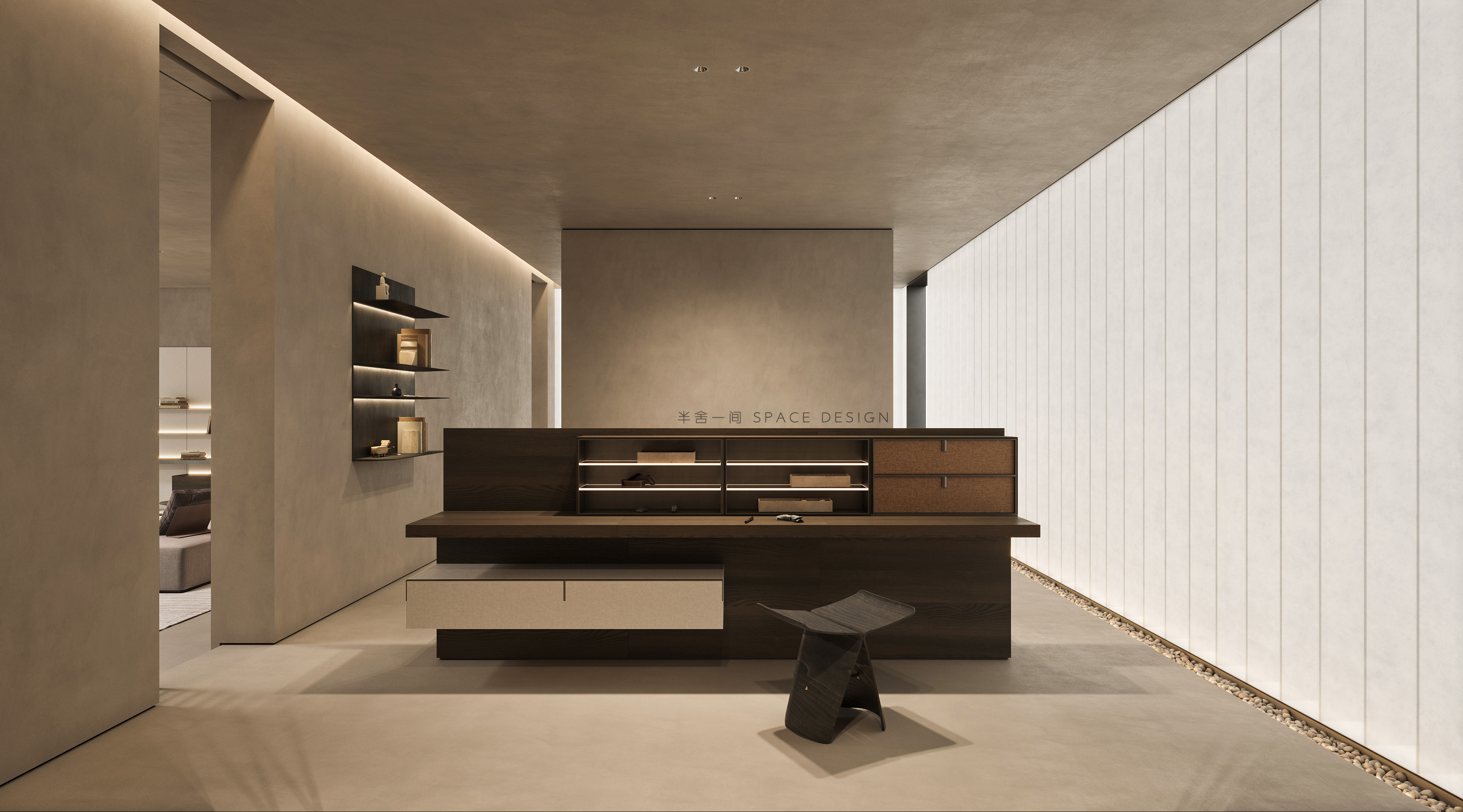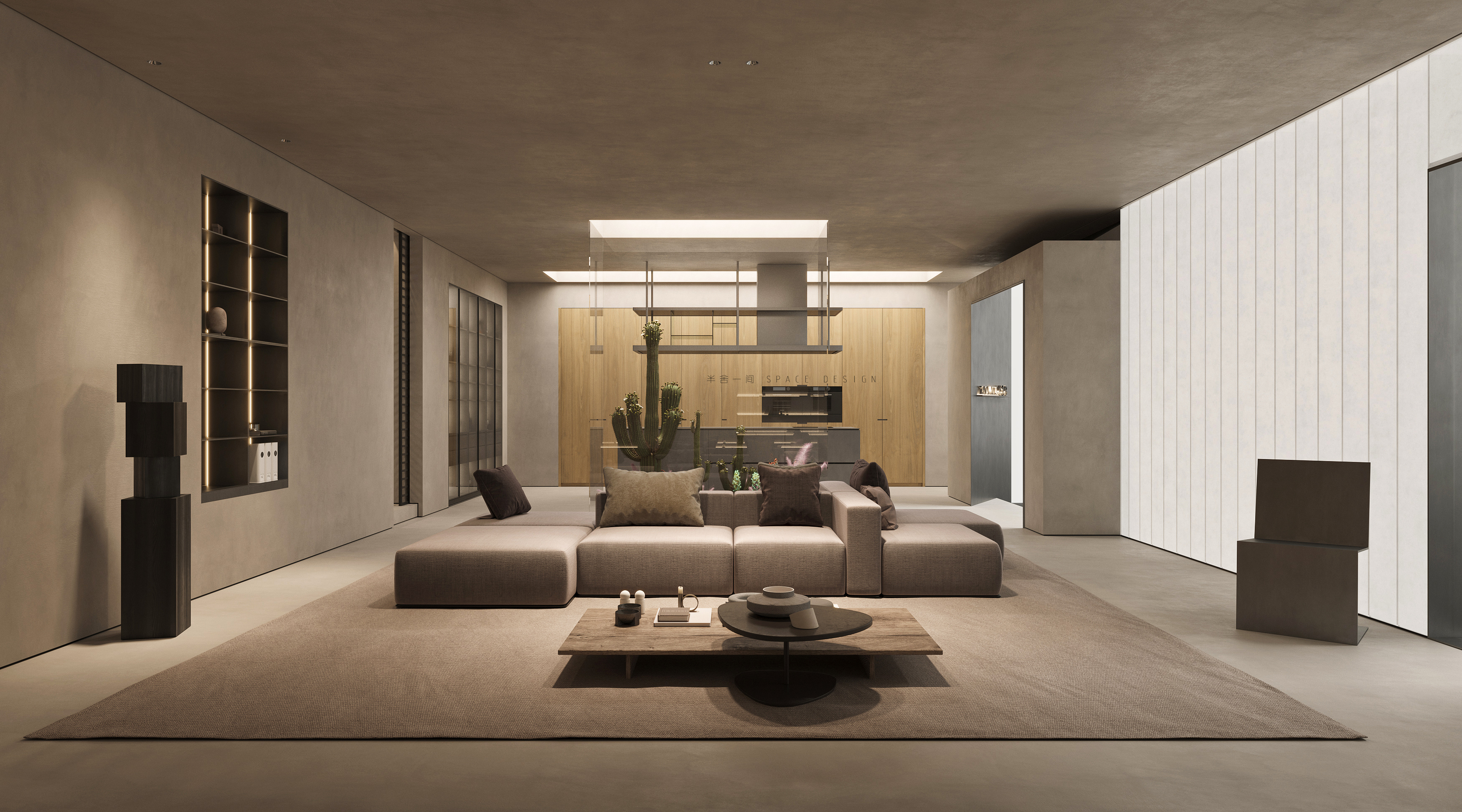 设计氛围在整体空间的考量上偏向于安静、自然,沉浸式的包裹感能让人有停留的意愿。它不仅是一个展厅,还是关于品牌与产品艺术的结合造物,彰显空间格调