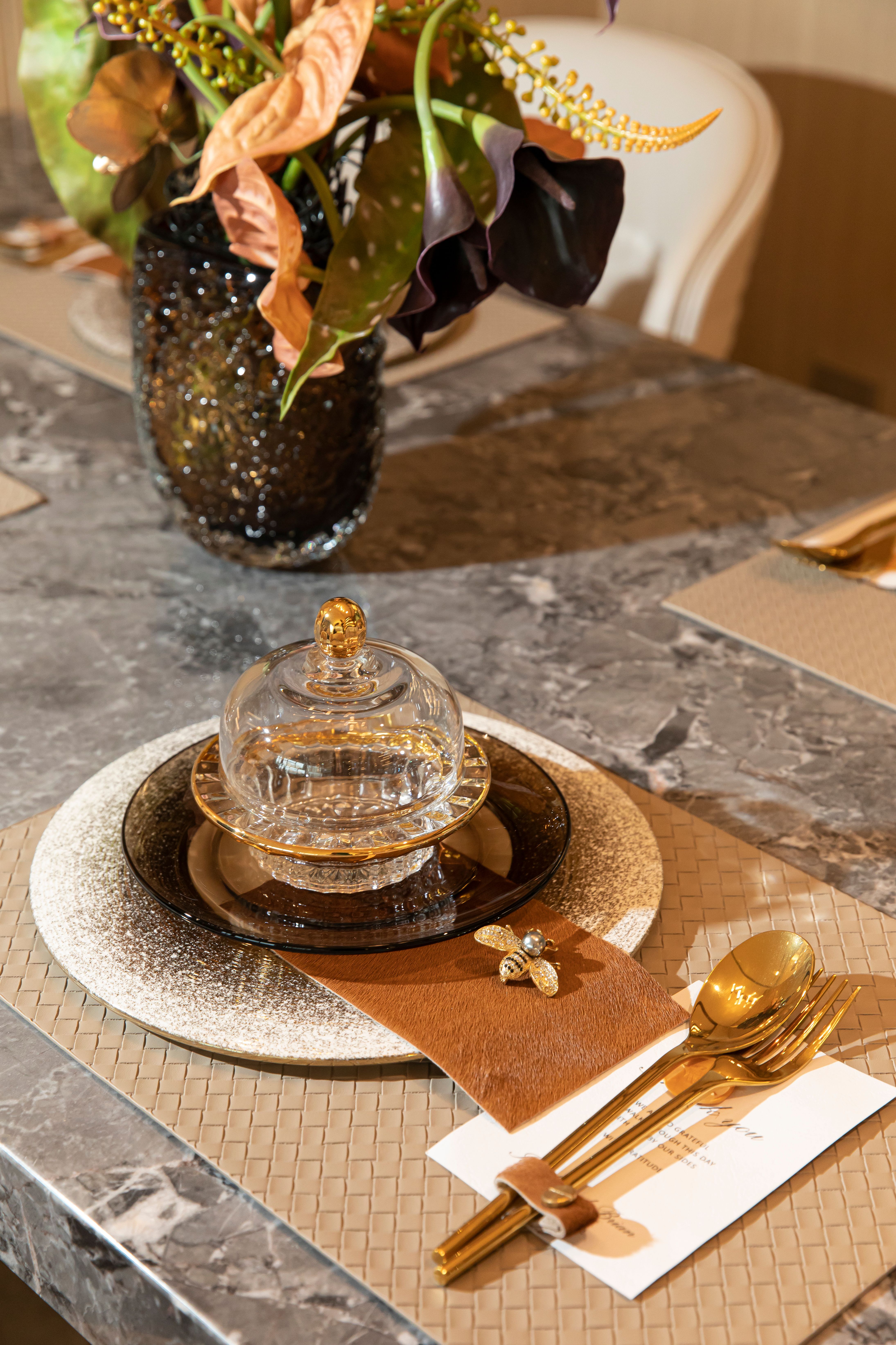 客厅铺设天然的理石地板,并于其上放置一张条纹式地毯,历经时间雕刻而成的层次肌理与地毯纹路产生共鸣,荡漾起不疾不徐的旋律。
