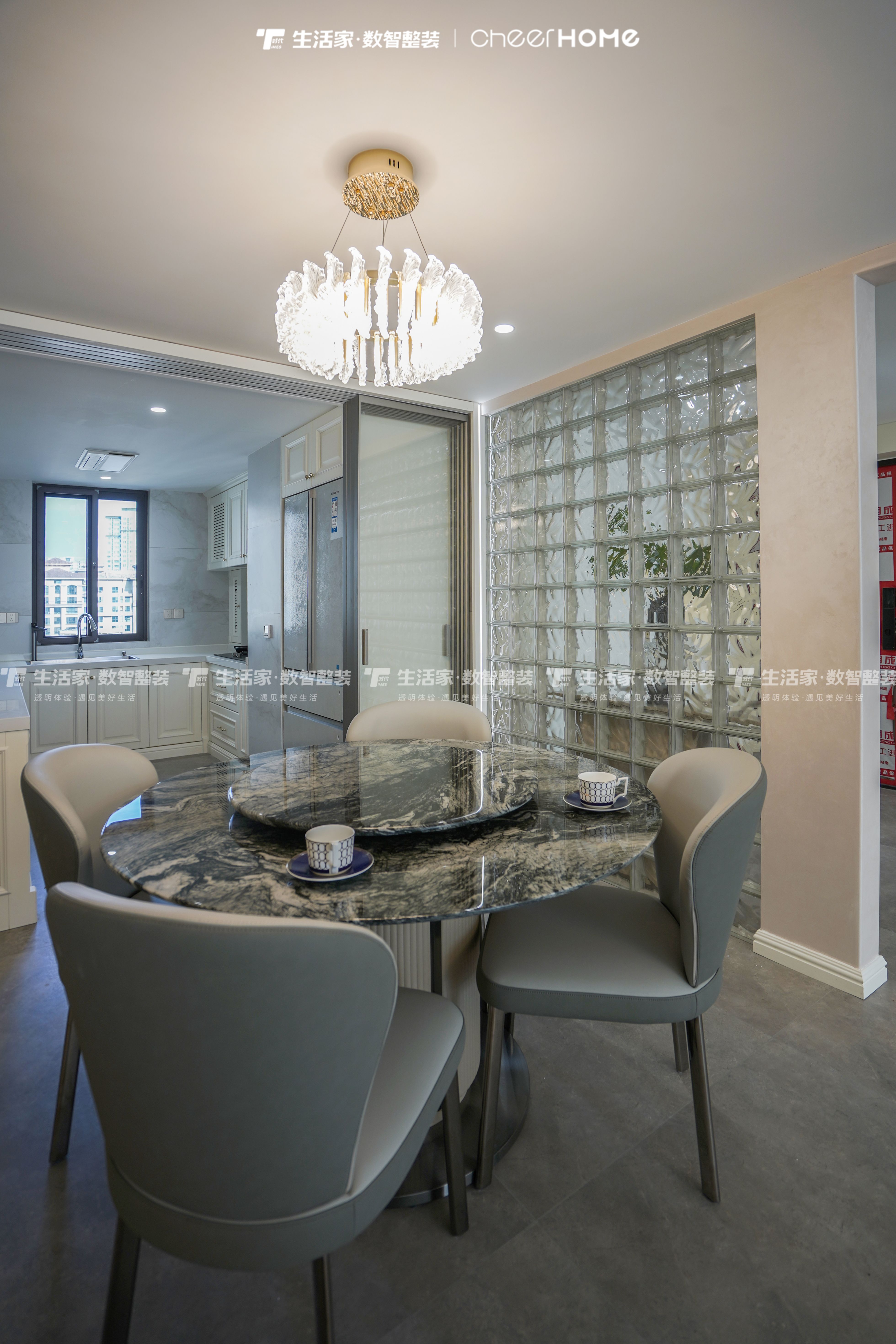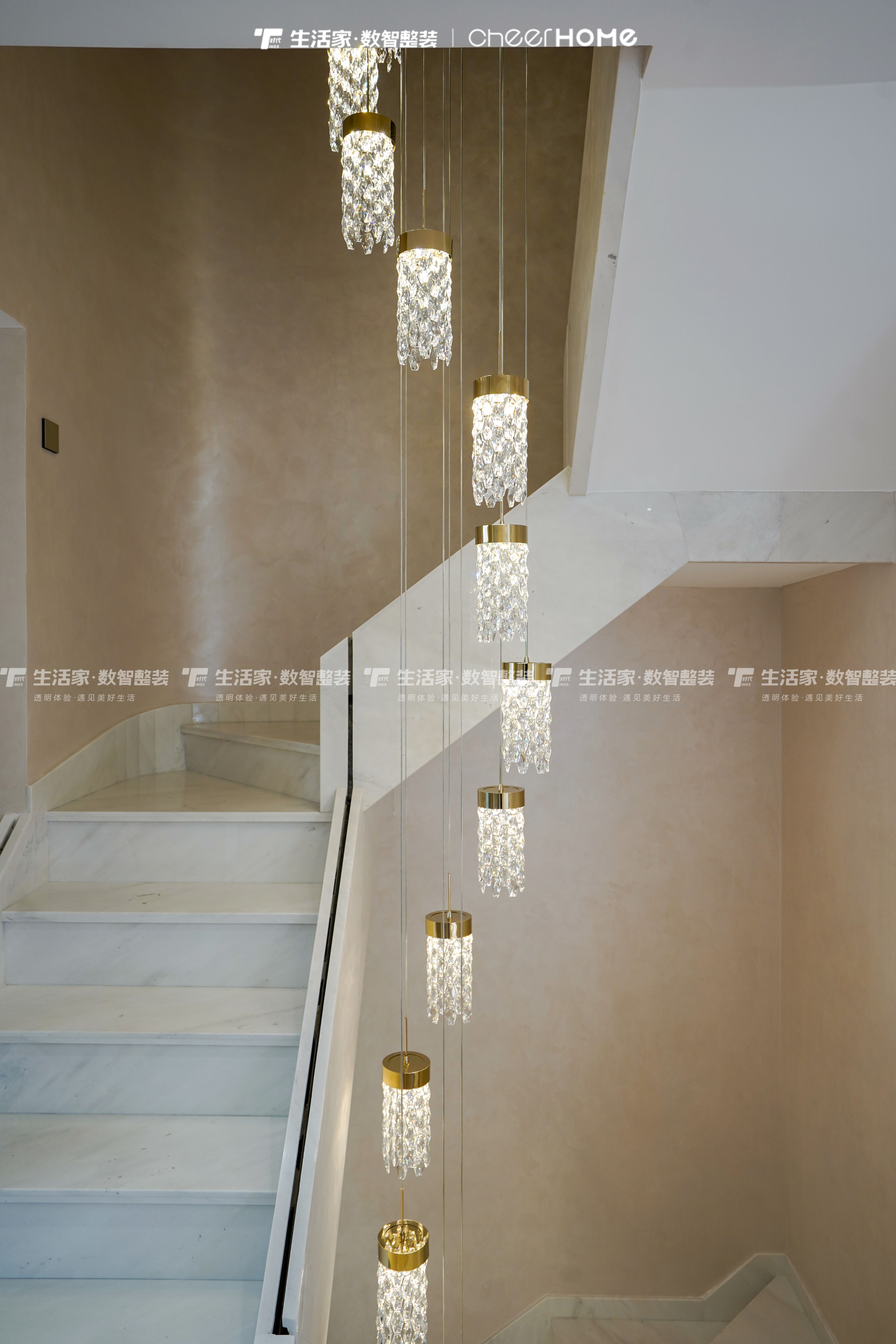 项目定位:在重新梳理了空间形态、结构、功能以及生活场景的需求后,运用皮革,大理石,水晶材质的碰撞,打造出轻松舒适有艺术感,令人精神愉悦的居住空间