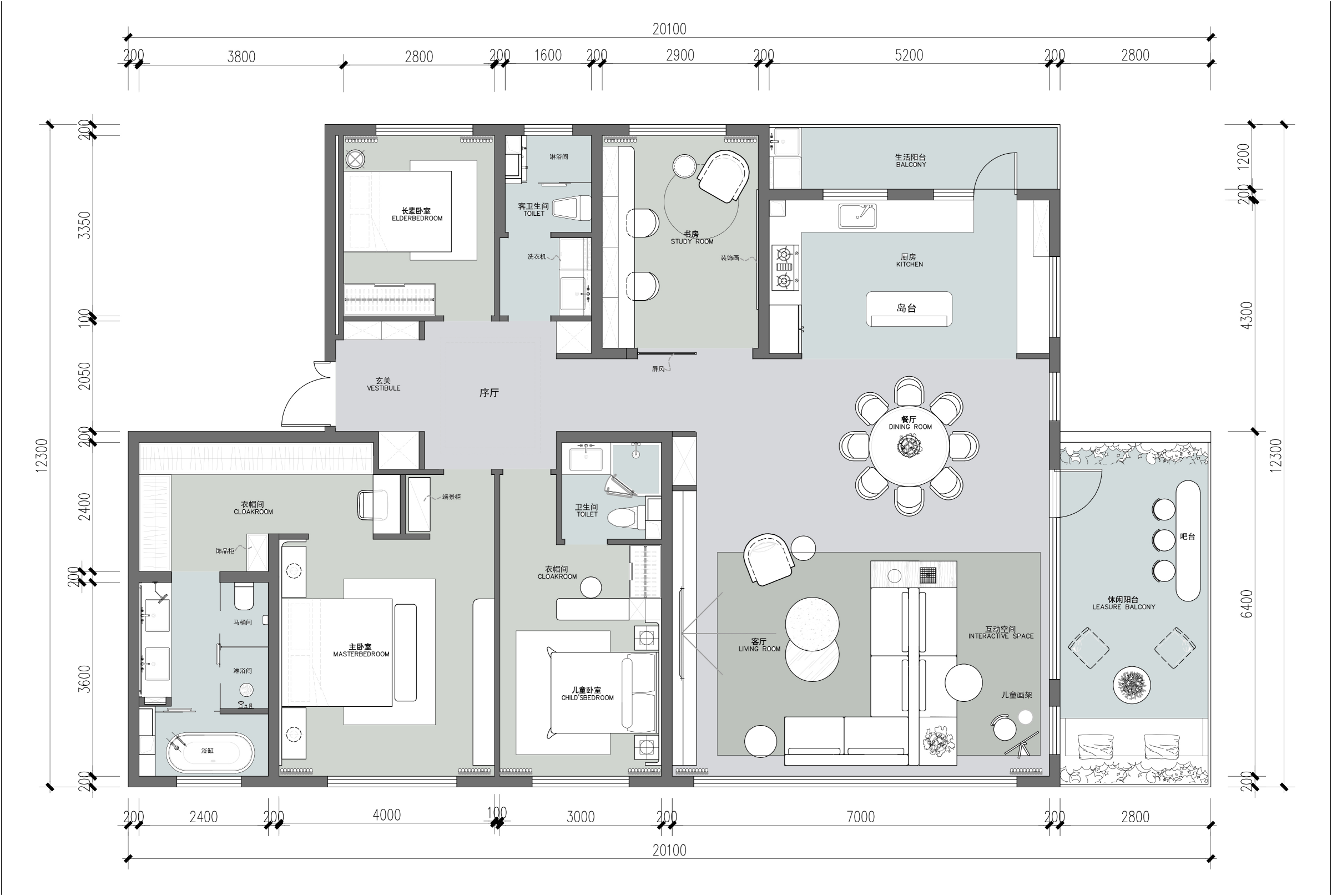 家人之间更为聚拢和贴近,营造更亲密的社交距离。开敞的西厨与中厨有机结合,提供一个区别于正常空间的社交场所,令空间更具灵活性,融于生活、融于社交、融入风景。