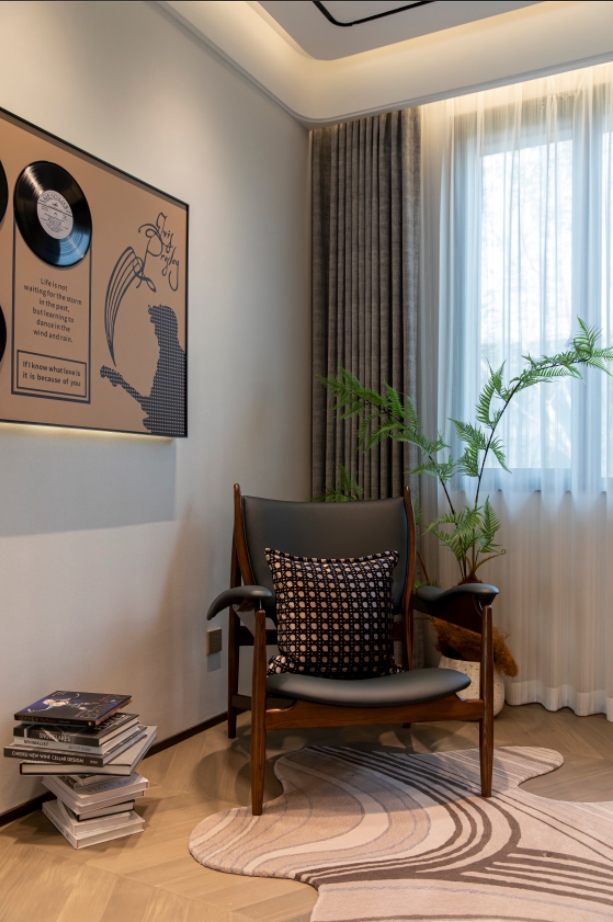 整体空间布局动线设计优化入户体验,将生活区与休闲区区分,从而提高生活品质。弧形的流线给方正的边厅内加入柔和的视角,更为温和近人。