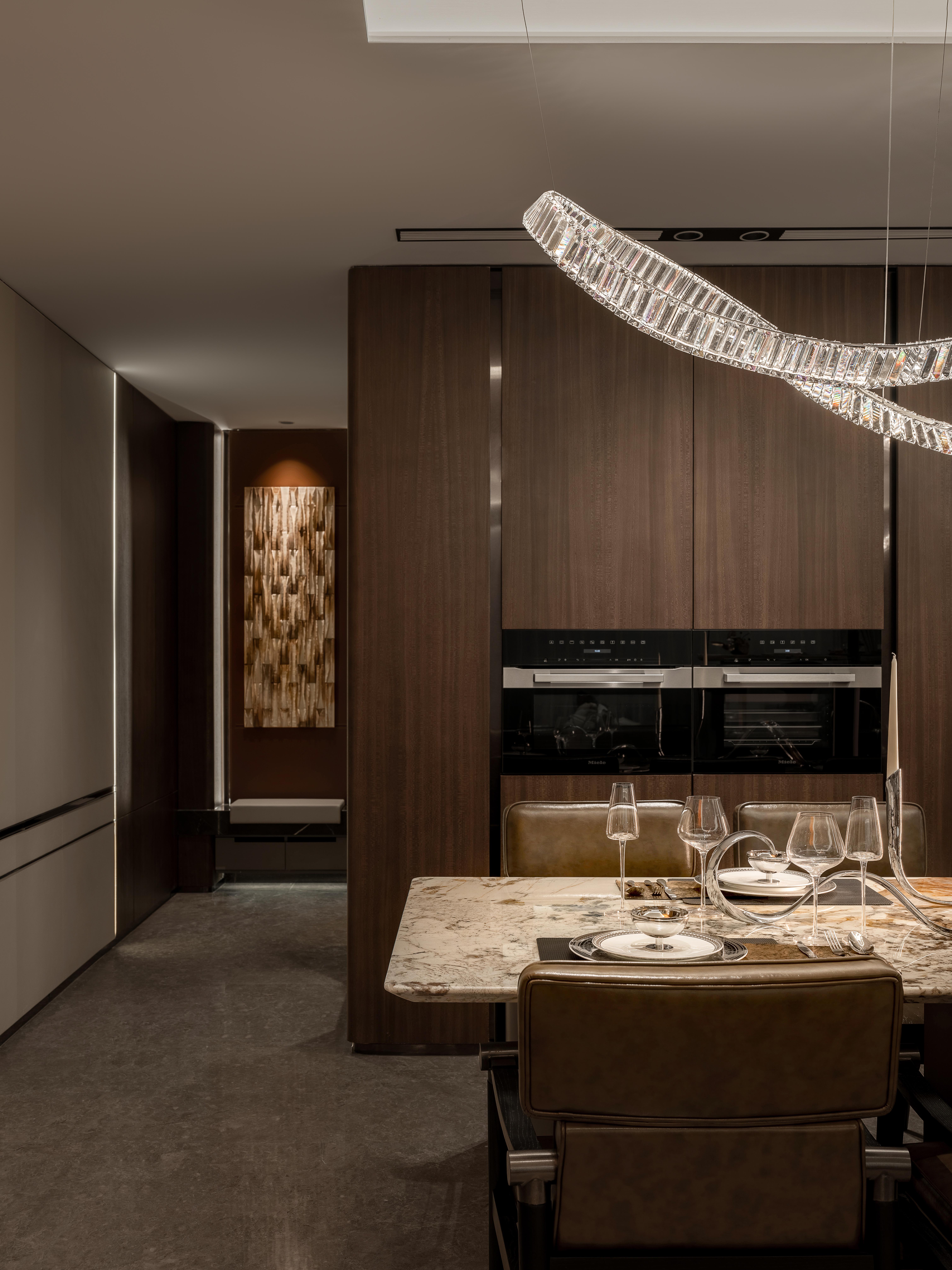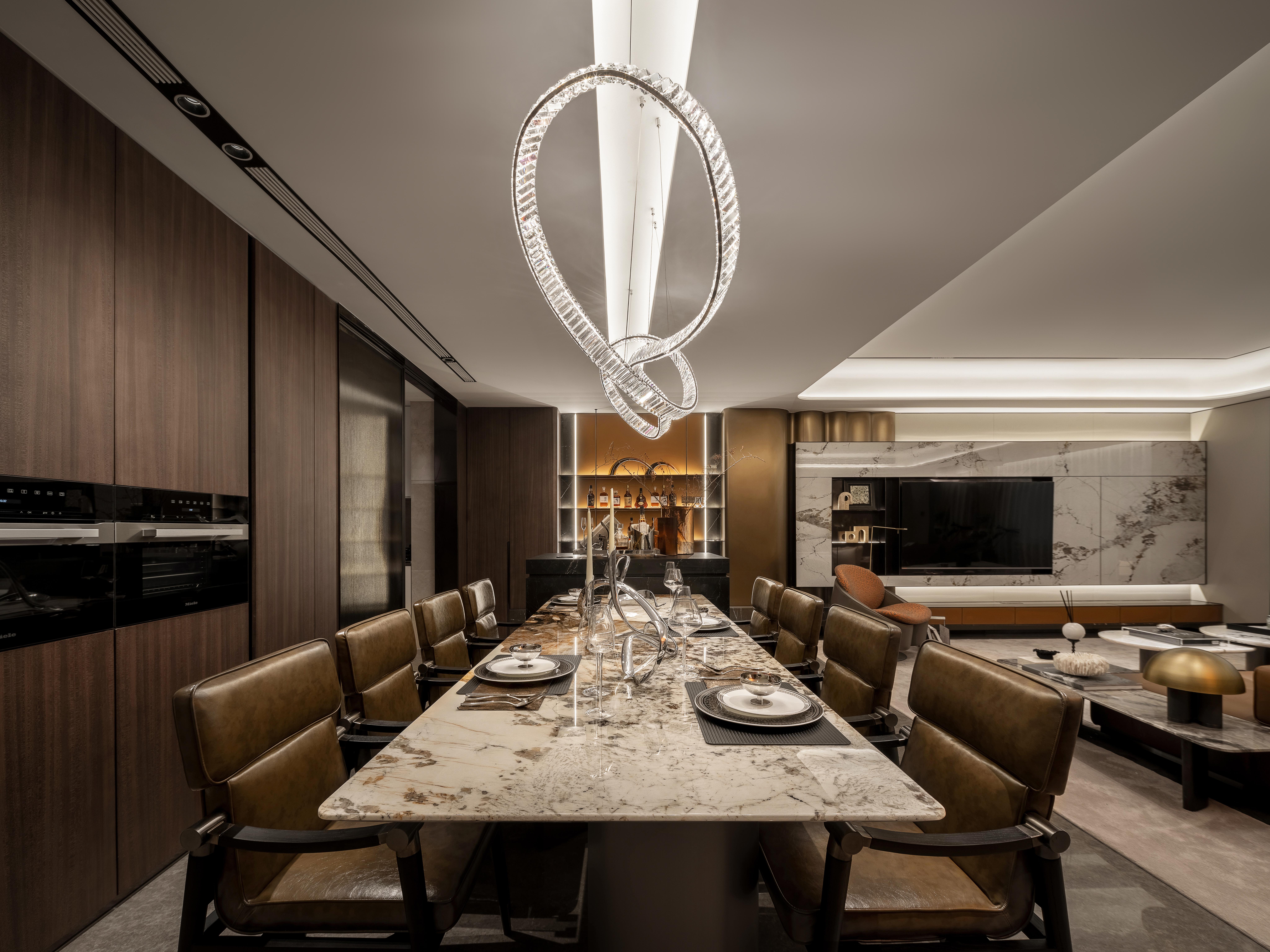 空间意境:色调上主要以暗色为主,辅以明亮细节点缀,选择优质的材质,感受自然的肌理,家具艺术品具备细致的精工工艺,将低调精致的内核,加上对经典和细节的追求,将时尚老钱风的韵味发挥到了极致。
