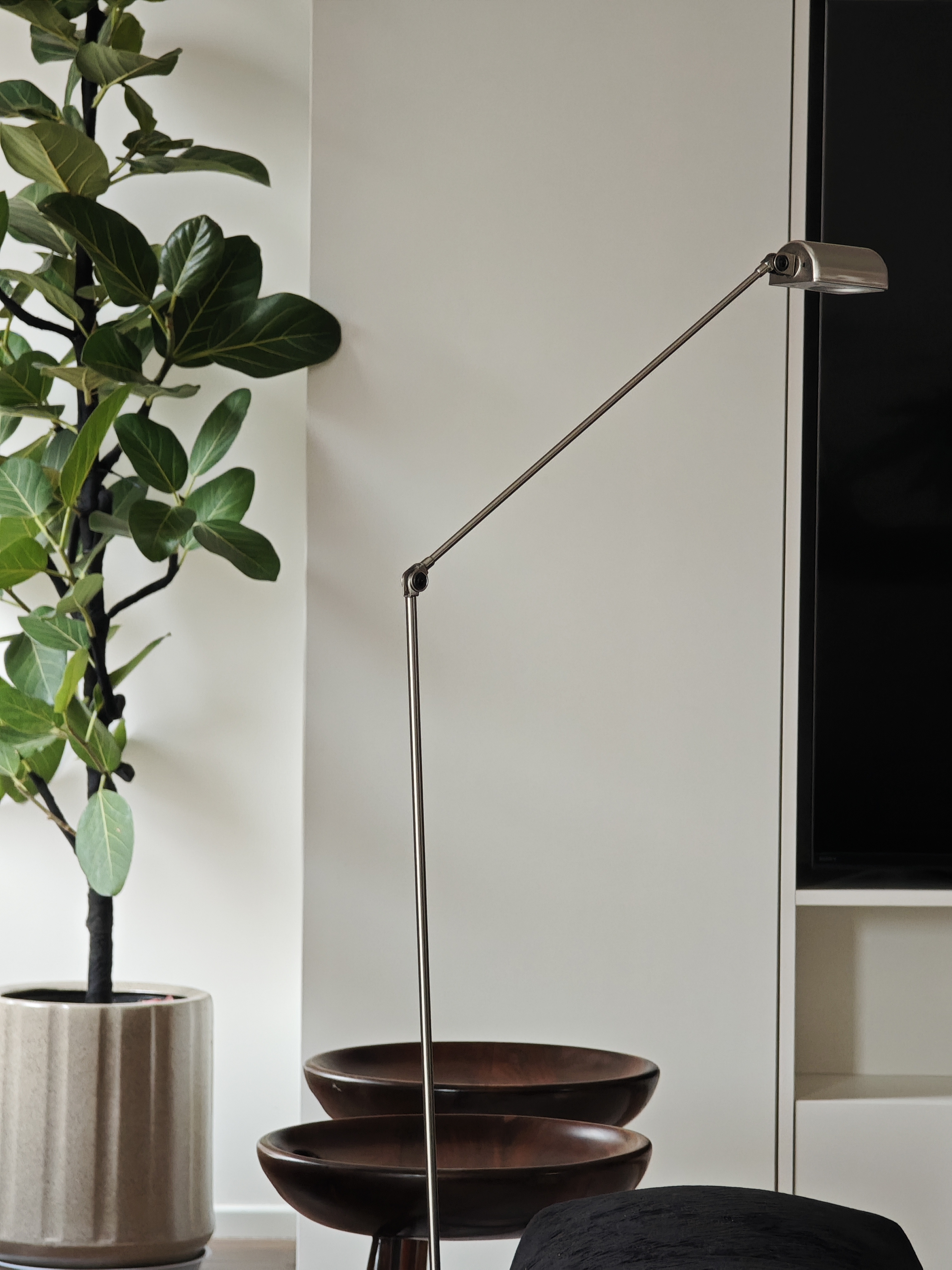 这个角落的氛围是宁静且舒适的,适合个人放松和休闲。柔和的灯光)营造出温馨的氛围,使这个角落成为一个理想的休息场所。绿植更突显的殷人心扉