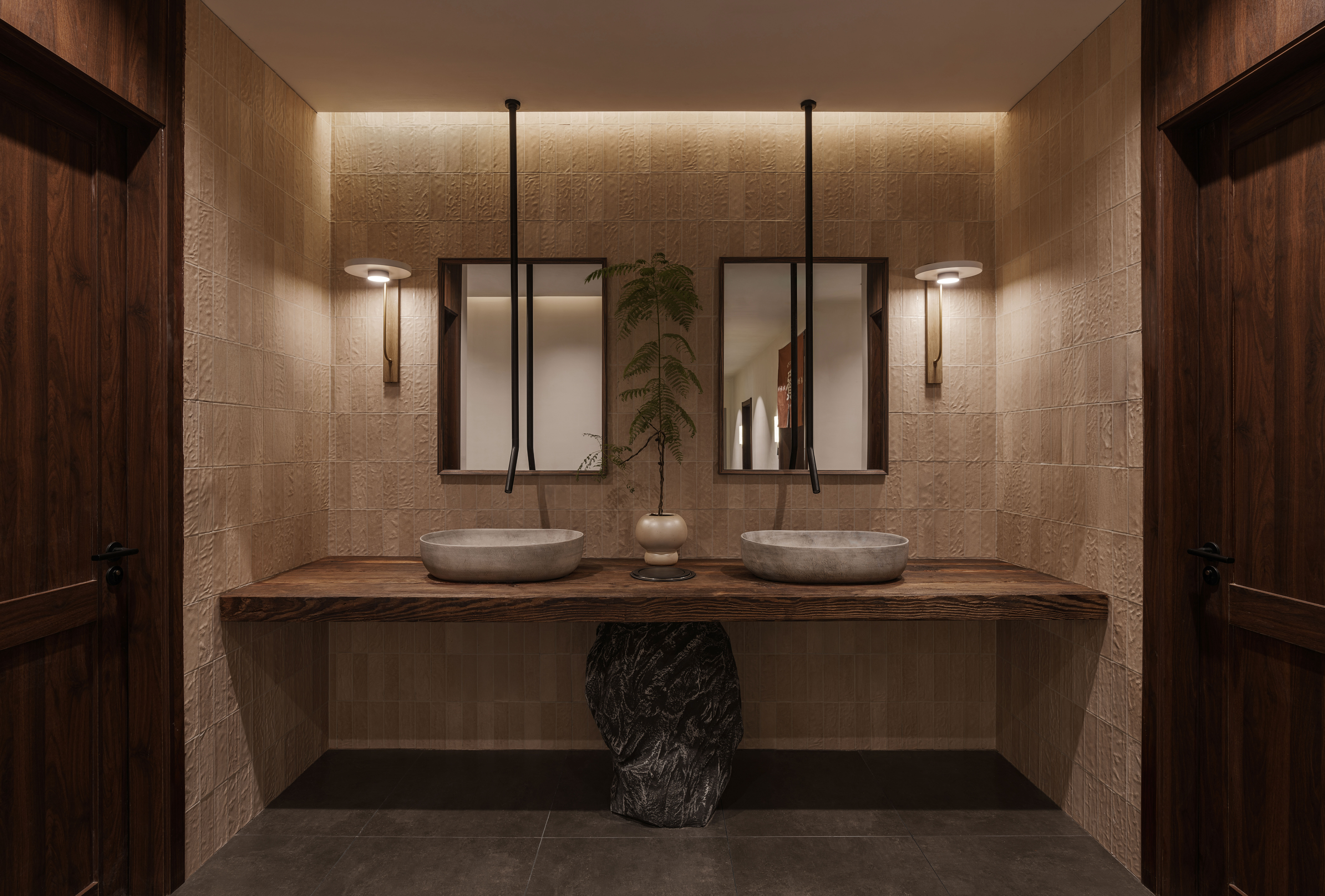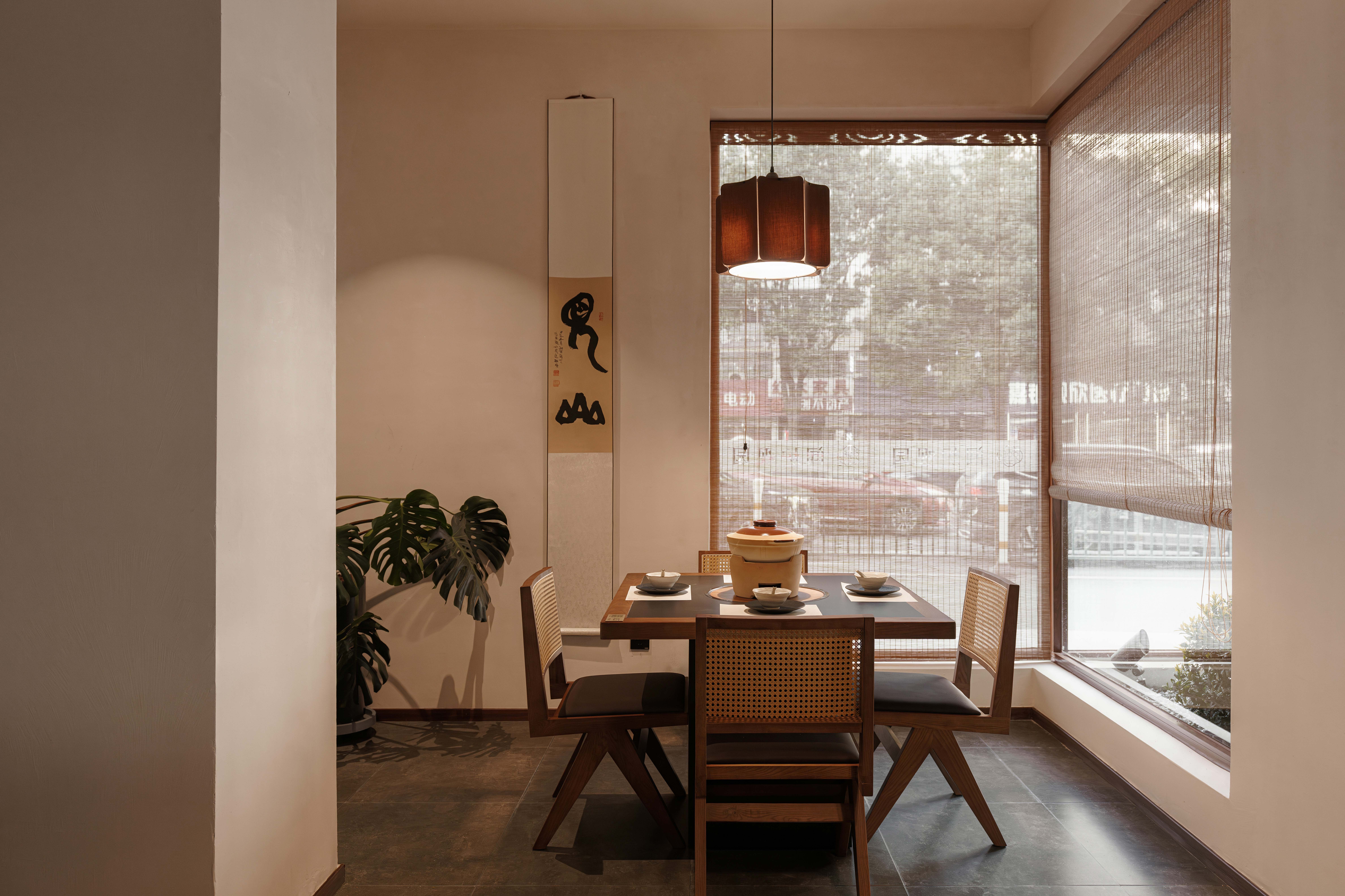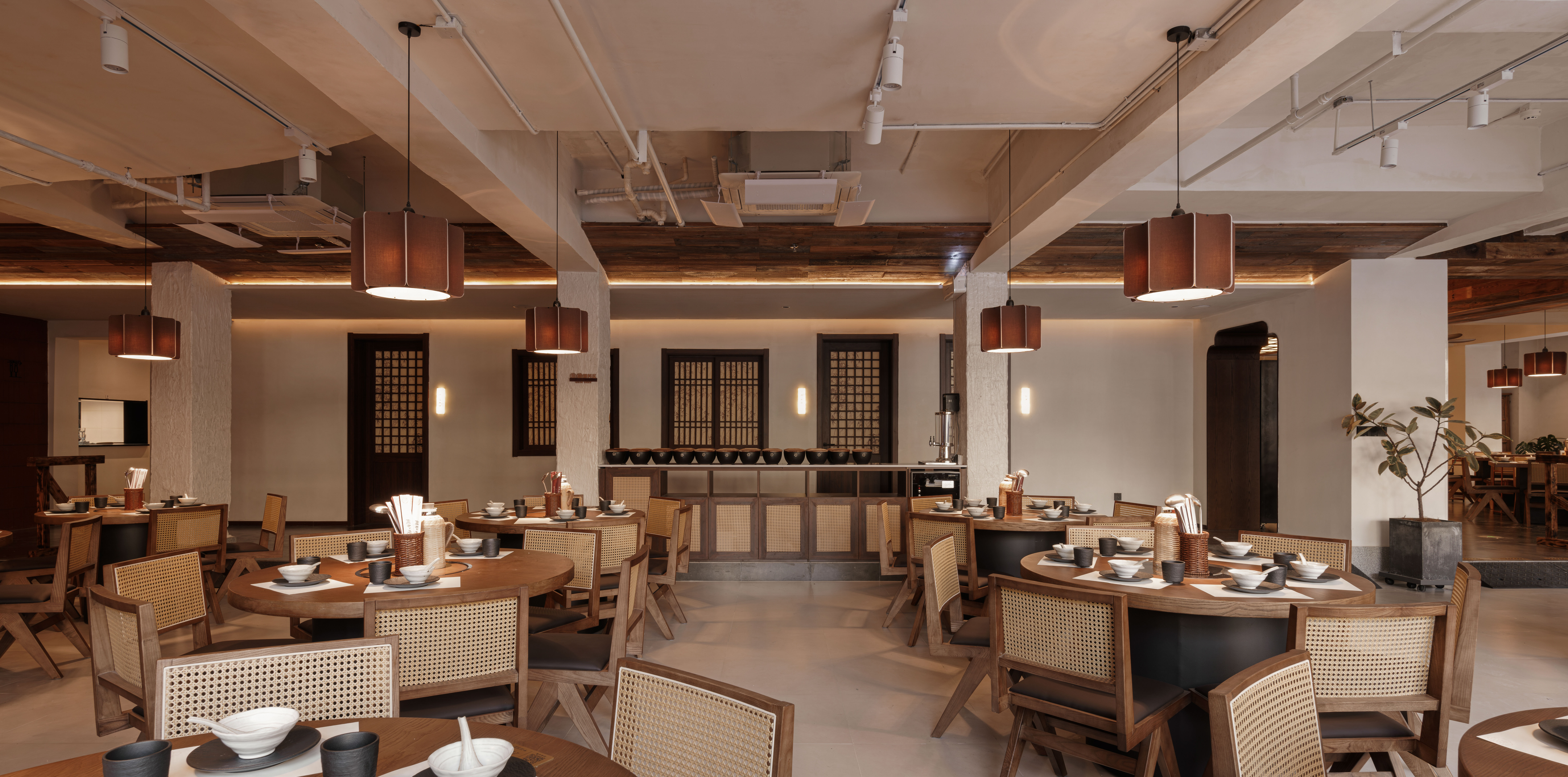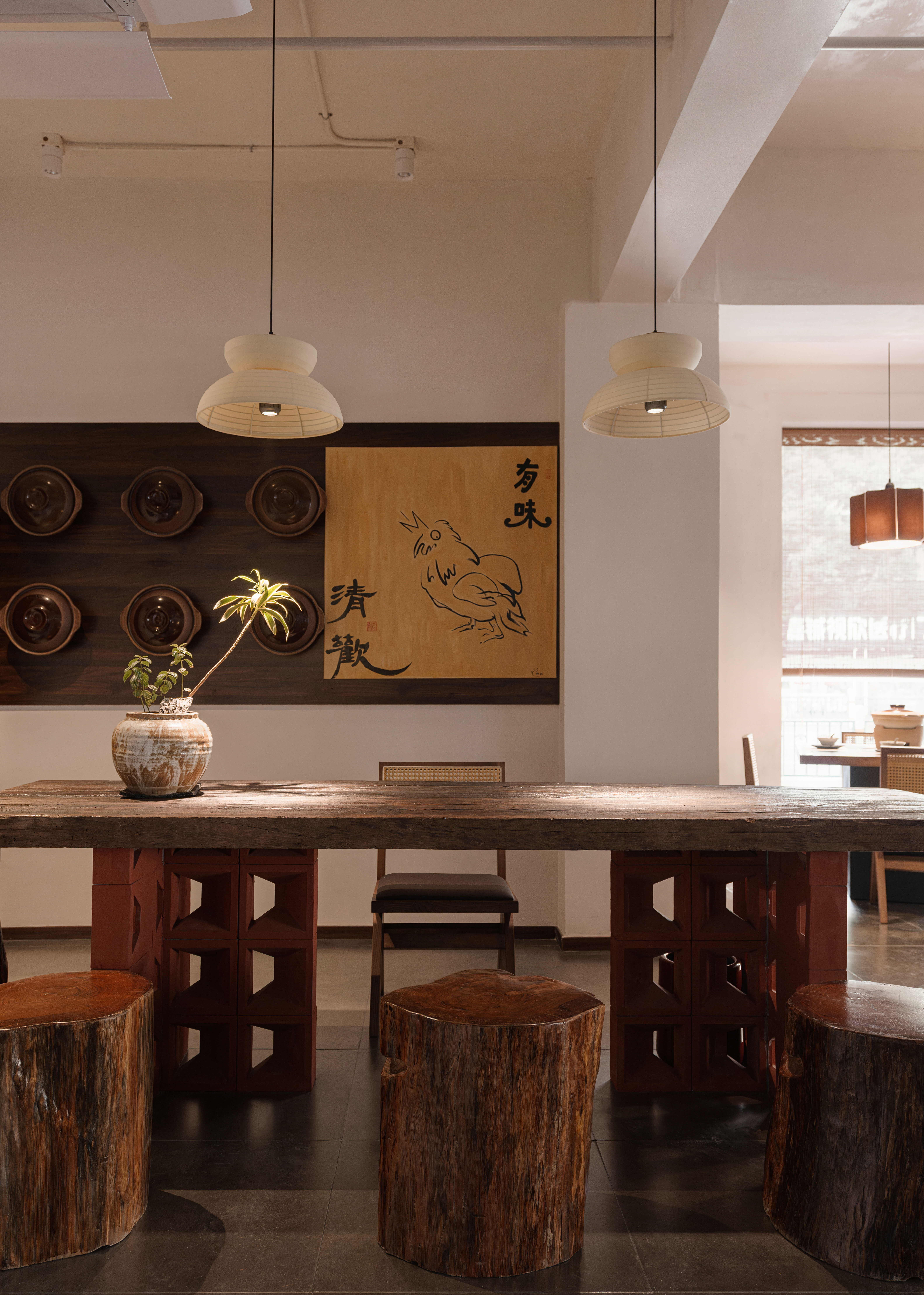 空间意境:门头采用中式园林经典的“花窗、漏窗和桥廊”手法,其设计精巧,与自然景观和谐相融,让食客能够跟随规划的动线逐步沉浸到餐厅的场景氛围之中。“观园”的尽头则是以月洞门构造的餐厅入口,结合中式禅意造景,设计风格以古典中式与现代建筑技法结合将空间表达至新的高度。