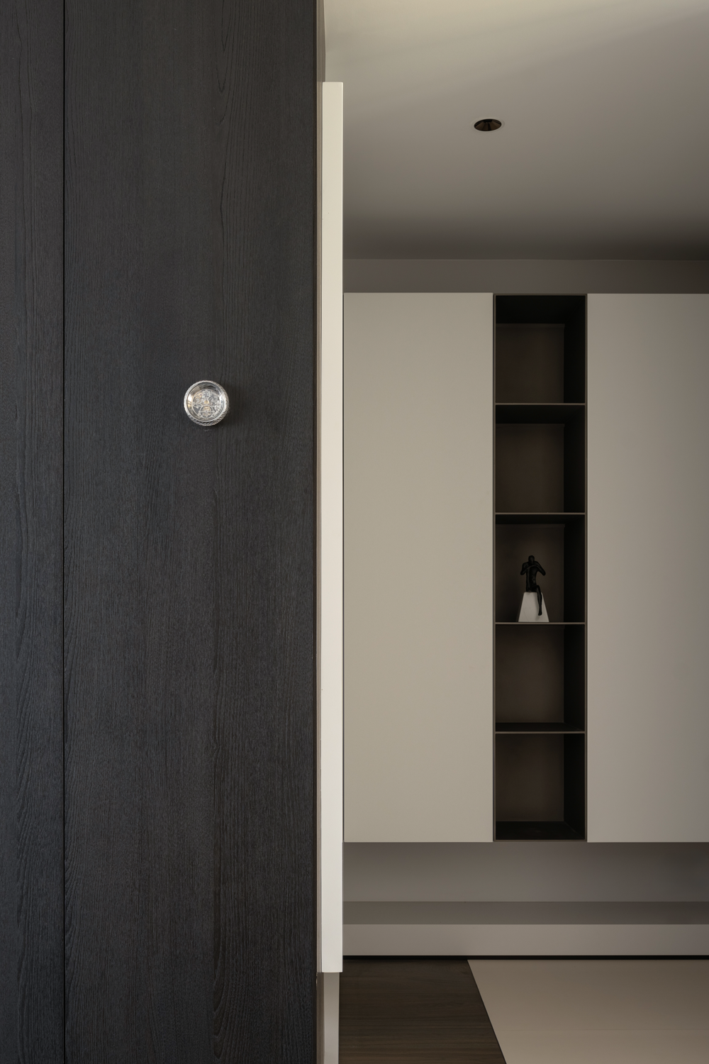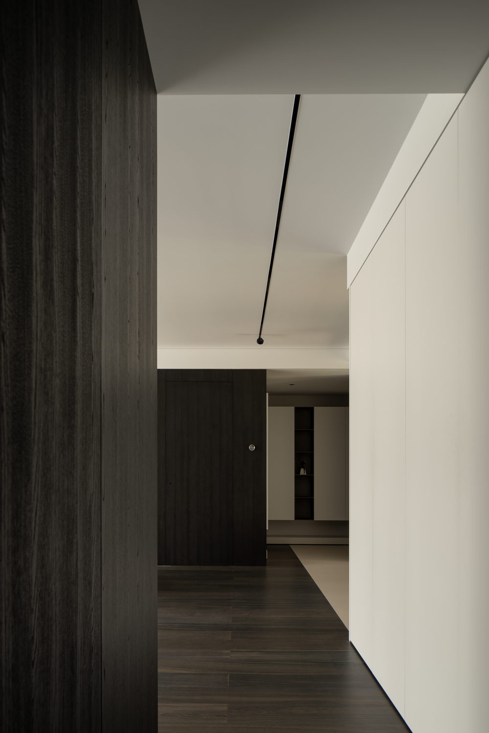 项目定位:以”平行空间“为思考概念,设计将空间视为居住者内心世界的表达,描绘在快节奏都市生活背景下,内心所向往的”另一处平行空间“,时间相错,人物不变,却与外界无关,旨在挖掘内心深处的情感需求。考虑到项目业主是一位单身的年轻男士,在未来的生活状态中,可能会面对无限的变化。设计以发展的目光审视空间,同时思考当下的使用感受,意图打造一个进退得宜,攻守兼备的空间状态。