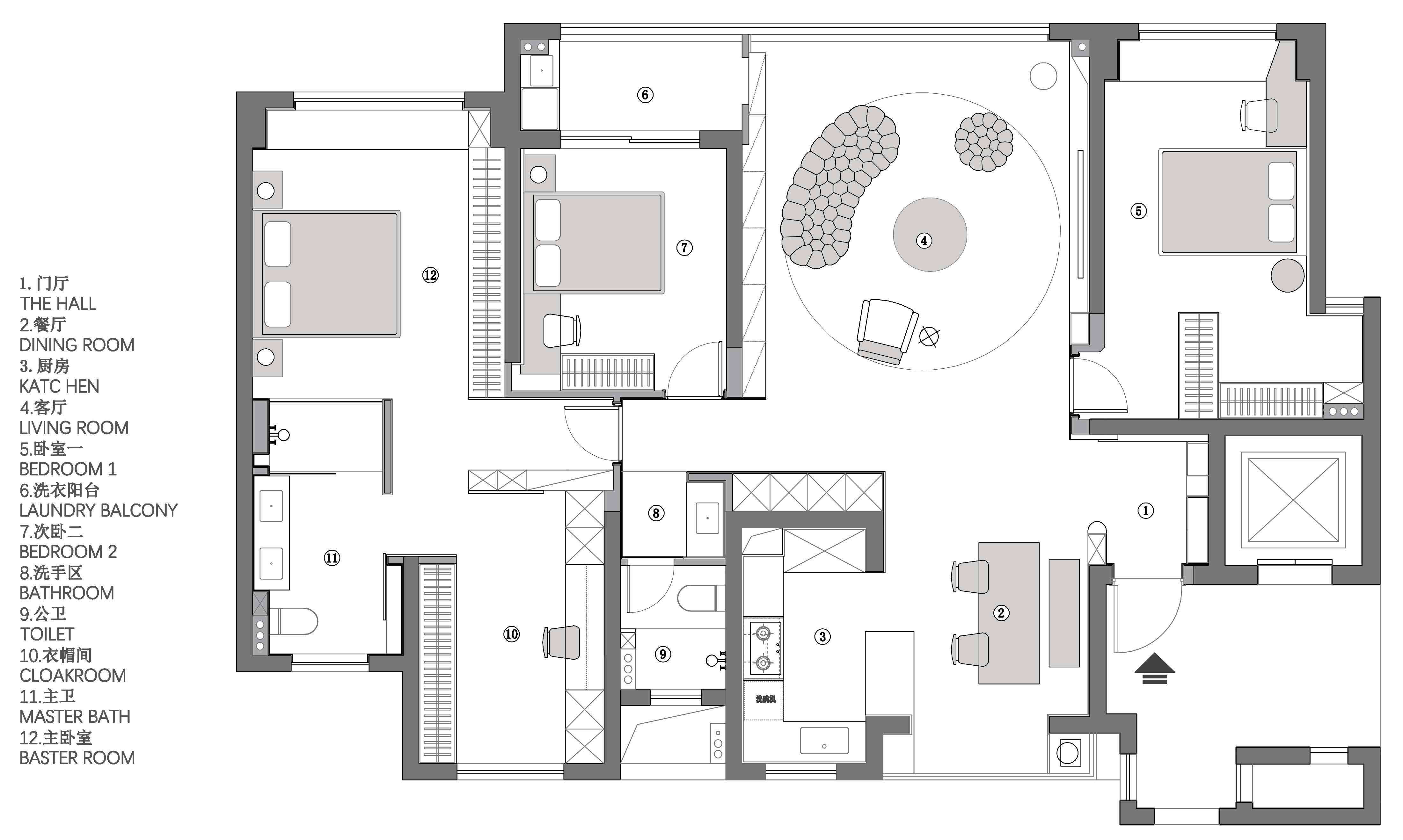 用户体验:设计,是让世界更接近我们的梦想。来到家装空间,设计师希望能够在实用性的选择之余,尽可能贴近业主的心中所想 ,于是在最具个人倾向的主卧空间使用大量的暗色素,并减少不必 要的装饰,只通过材质间肌理质感的不同作为层次的区分。