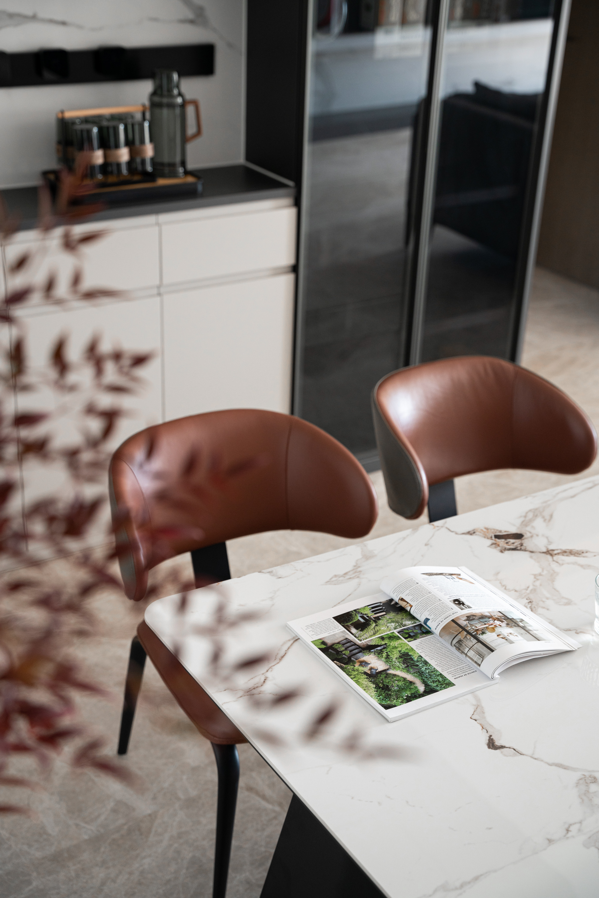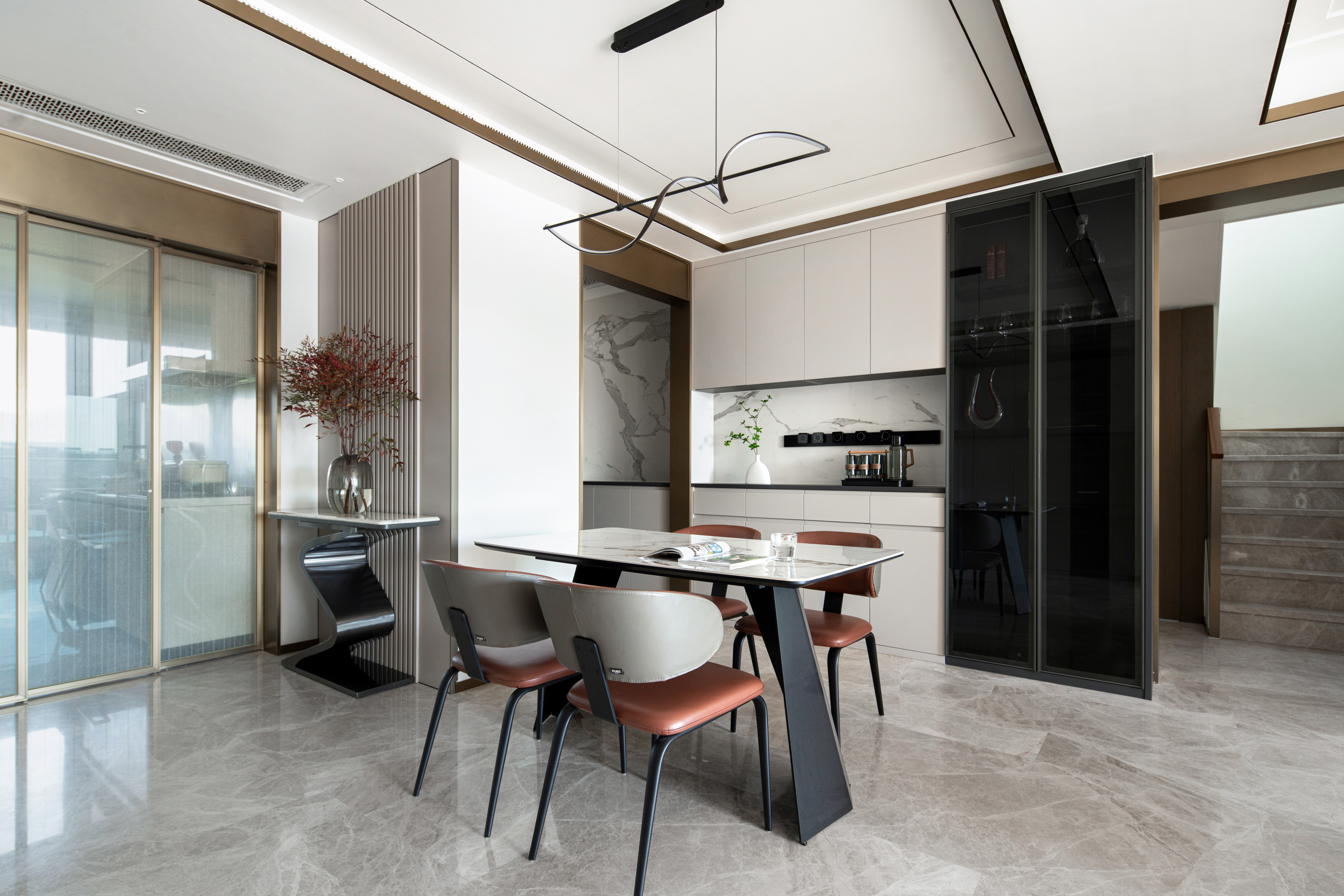 设计选材:材料上除油漆和岩板外,护墙板选用环保可回收循环利用的板材作为主要空间软装搭配,窗户选用断桥隔音隔热材料,使空间在使用的时候做到尽少开启空调,做到低碳环保节能。
