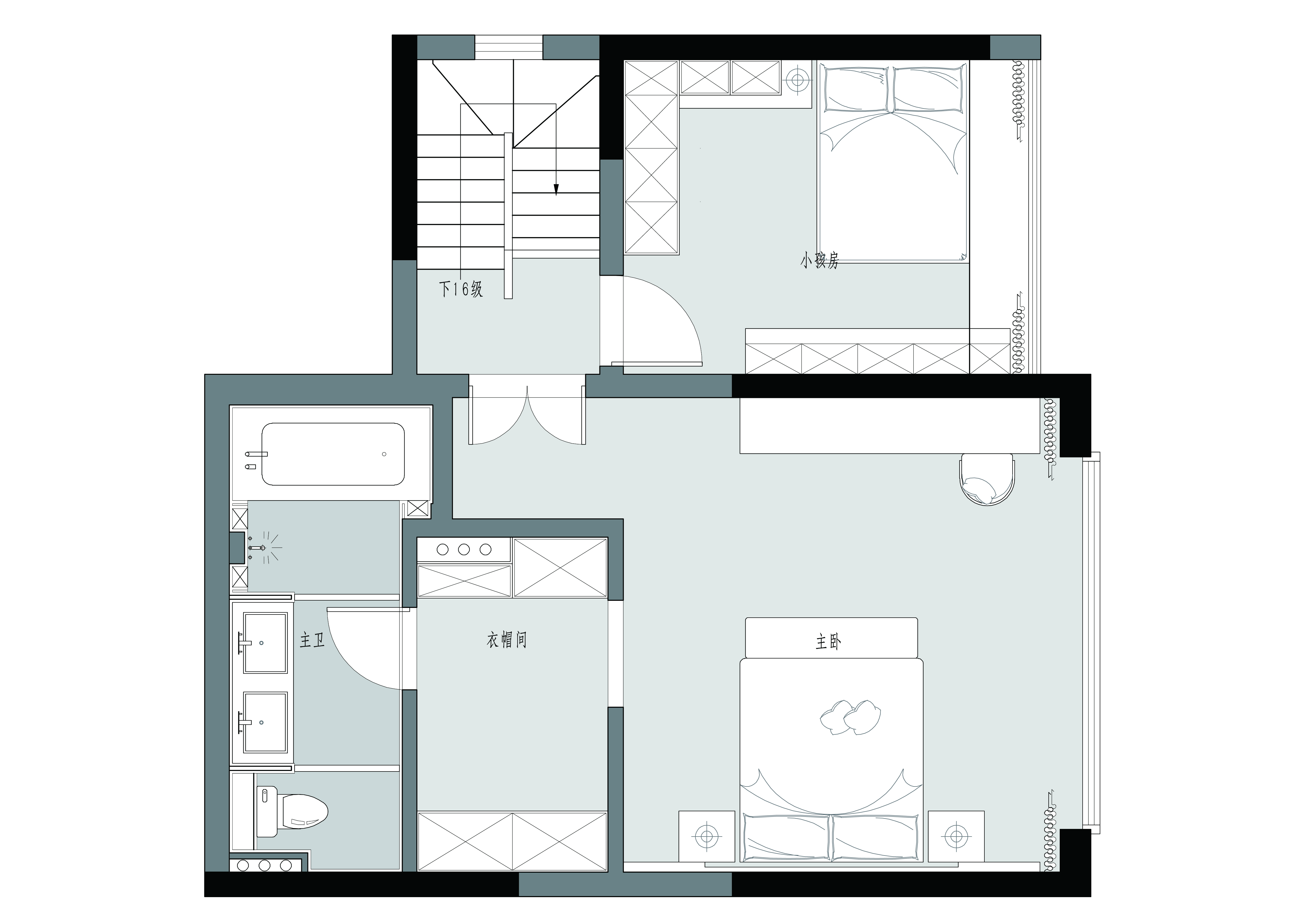空间布局:通过对空间功能的划分,使整个空间更加人性化,特别是采光和景观,通过规划,每个空间的光感和室外景观都一览无余,尽收眼底。