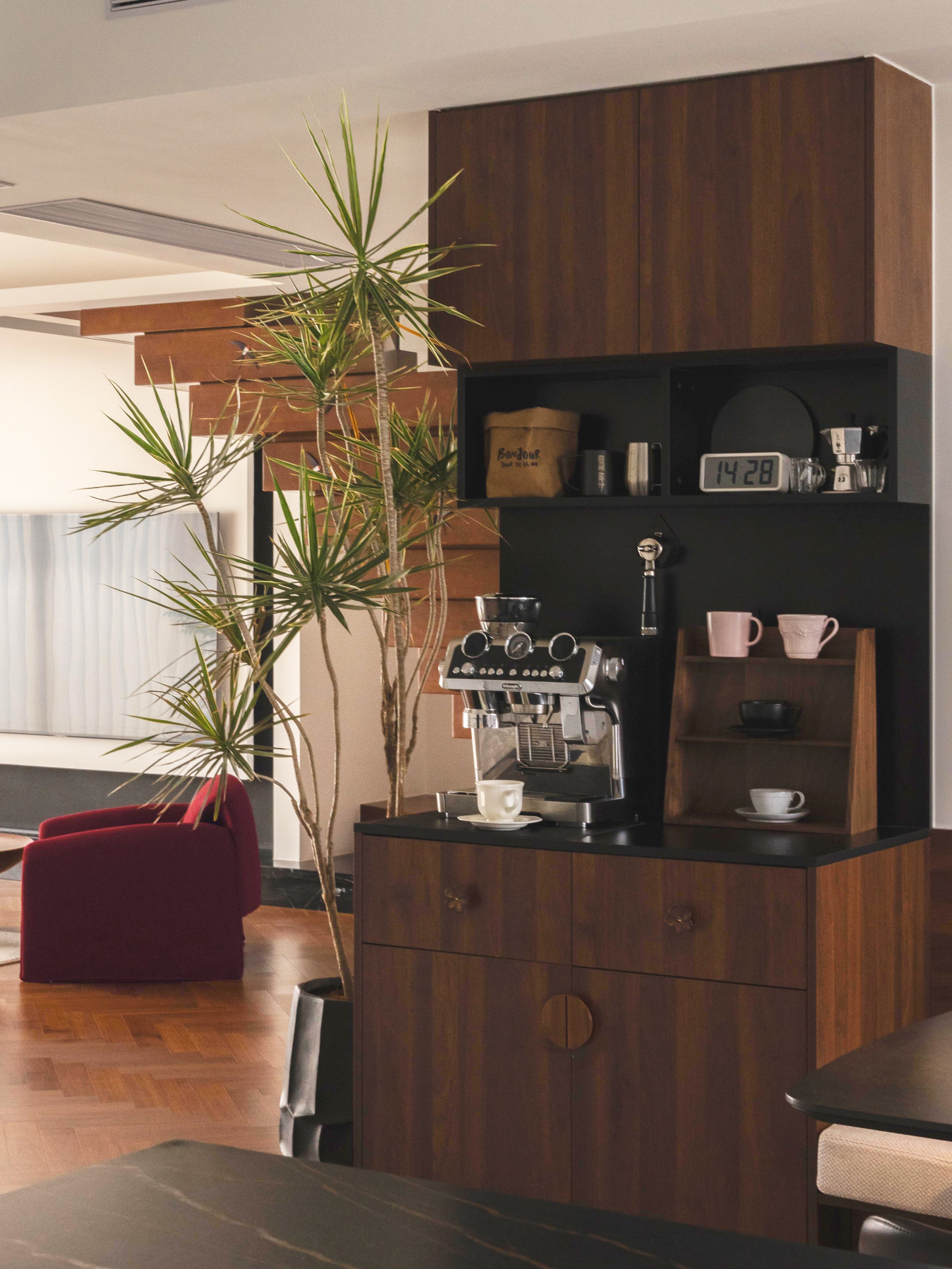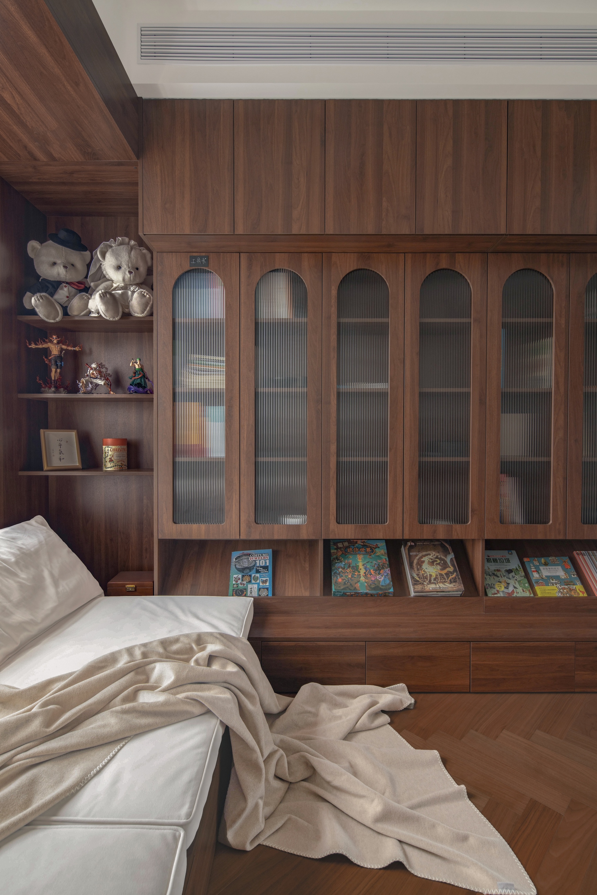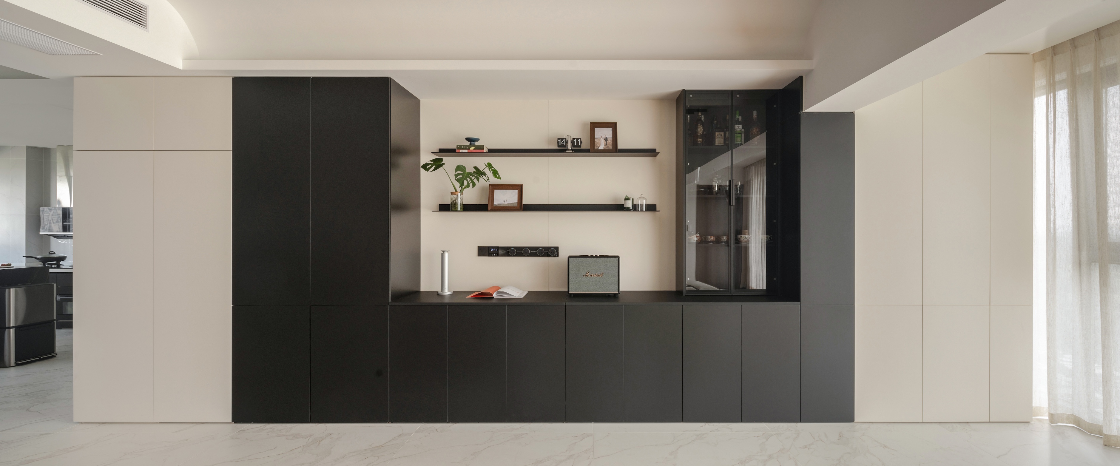 空间意境:在案例中运用大量业主夫妇都喜欢的黑色、胡桃木色、酒红色等色彩元素,营造温馨与宁静的居住氛围;深色调的家具和装饰元素,为整个空间增添了一种深沉而优雅的韵味;这个家虽然是业主生命长河里短暂停留的地方,但也将是承载着无数美好回忆和梦想的港湾。