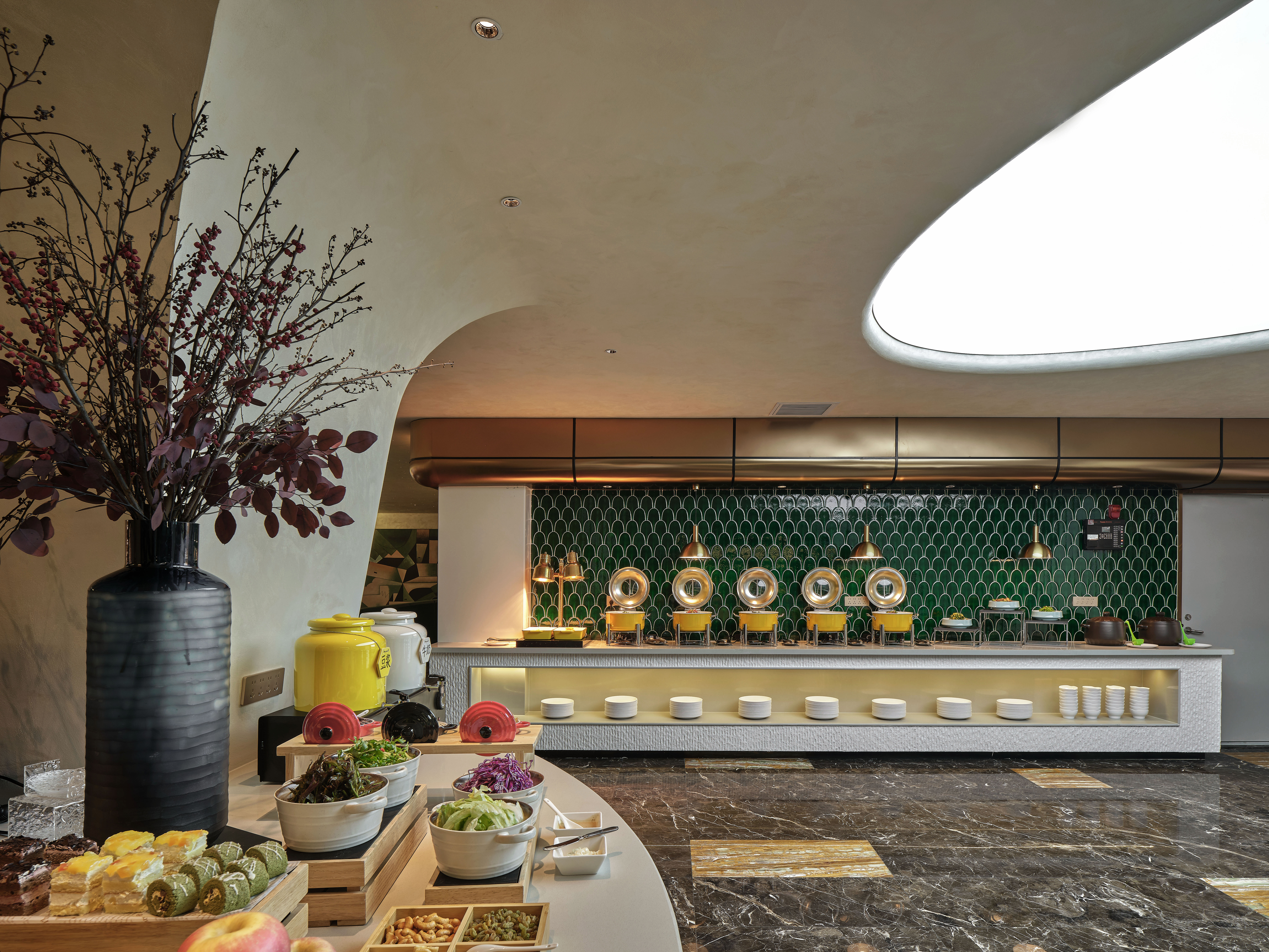 空间布局:与原建筑的 L 形建筑相呼应,宽敞的窗景享有中卫鼓楼的全景,这要归功于分层建筑体量,减少了其视觉体积。保存完好的仿古砖砌成的整体框架,进而环绕着整个建筑。