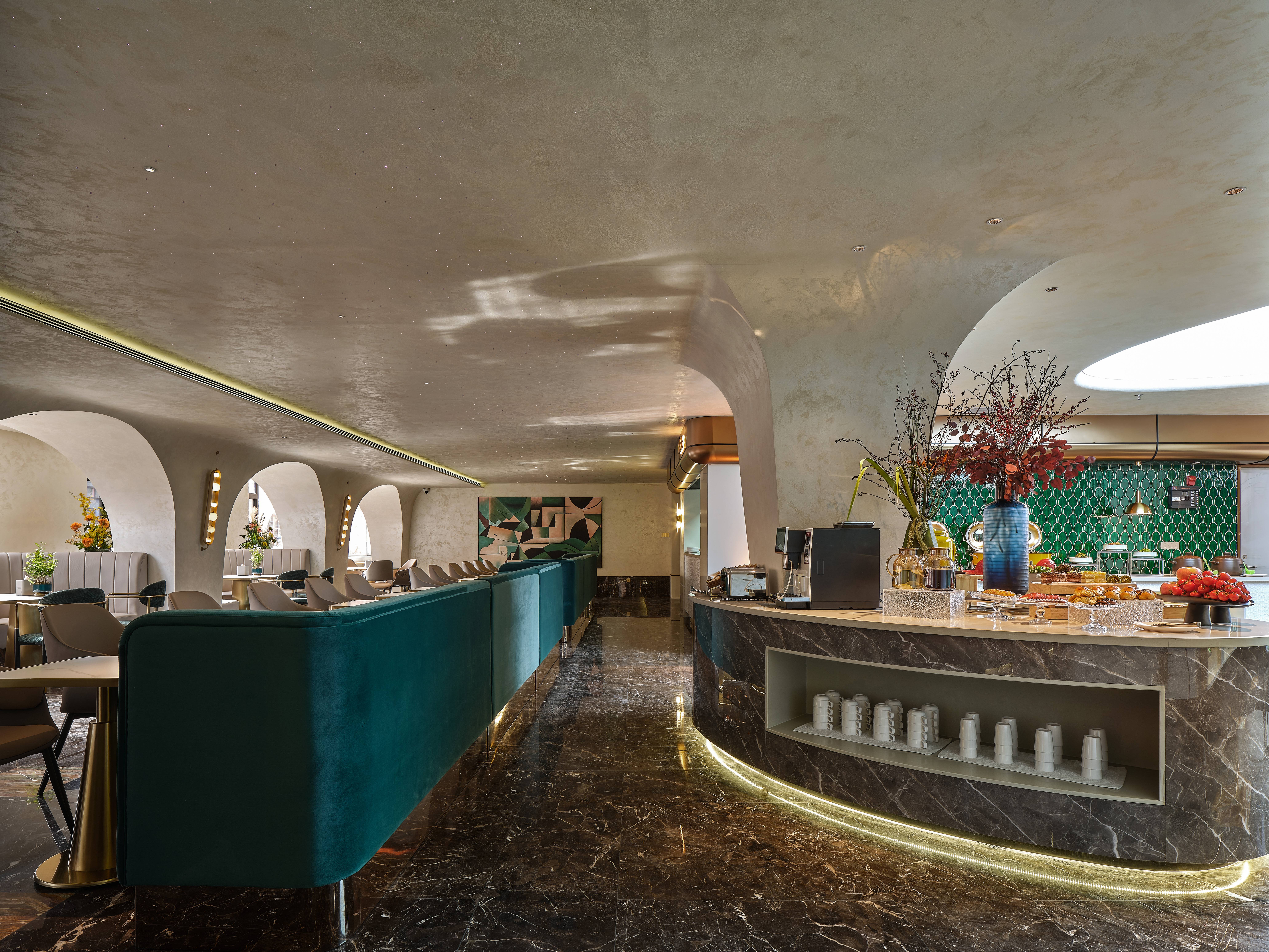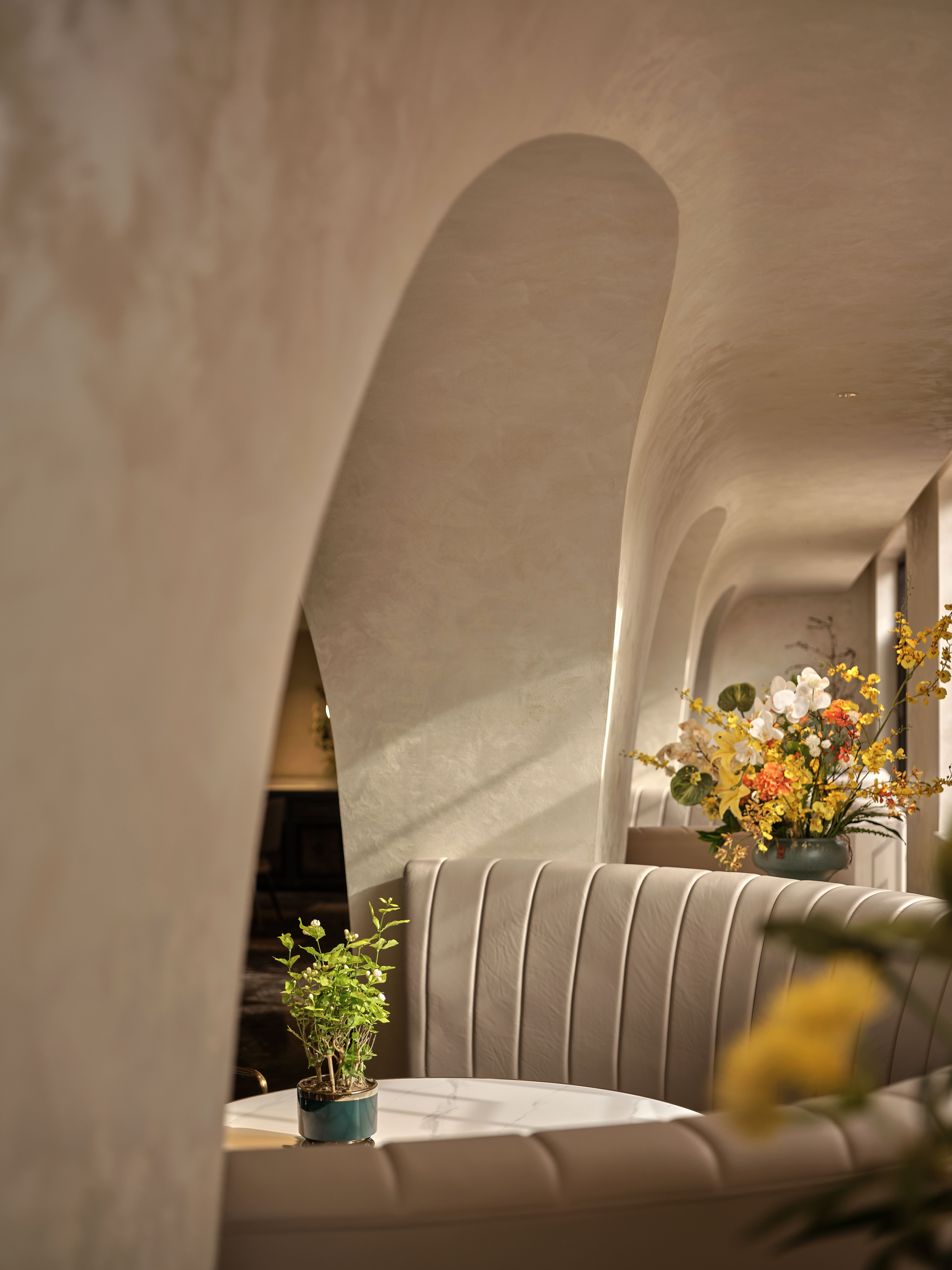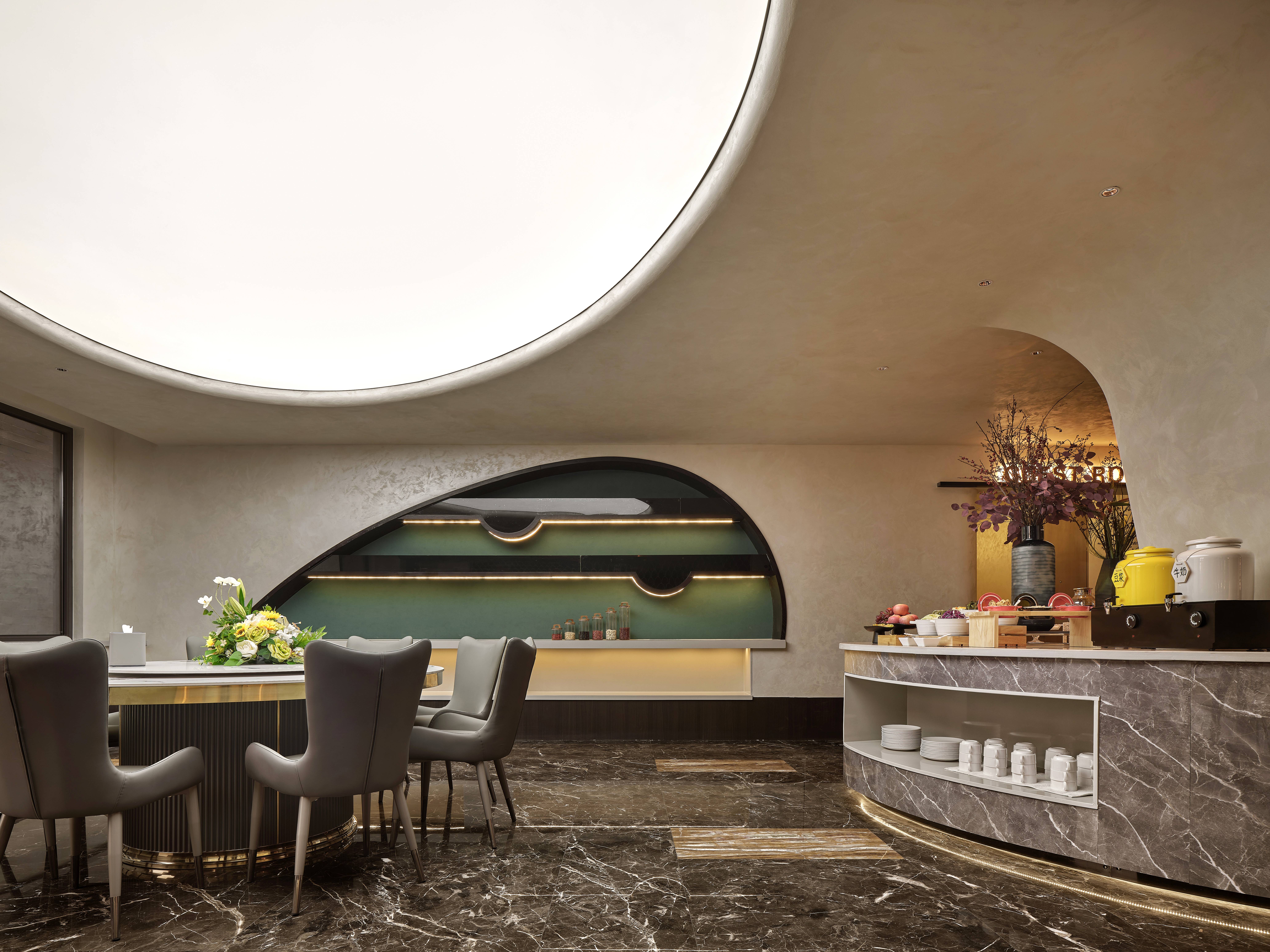 设计选材:室内采用线条和简单几何形状的朴素设计语言,并结合现代手工艺,将各种不同的灵感来源和谐地融合在一起,以天然橡木、石材、陶瓷
