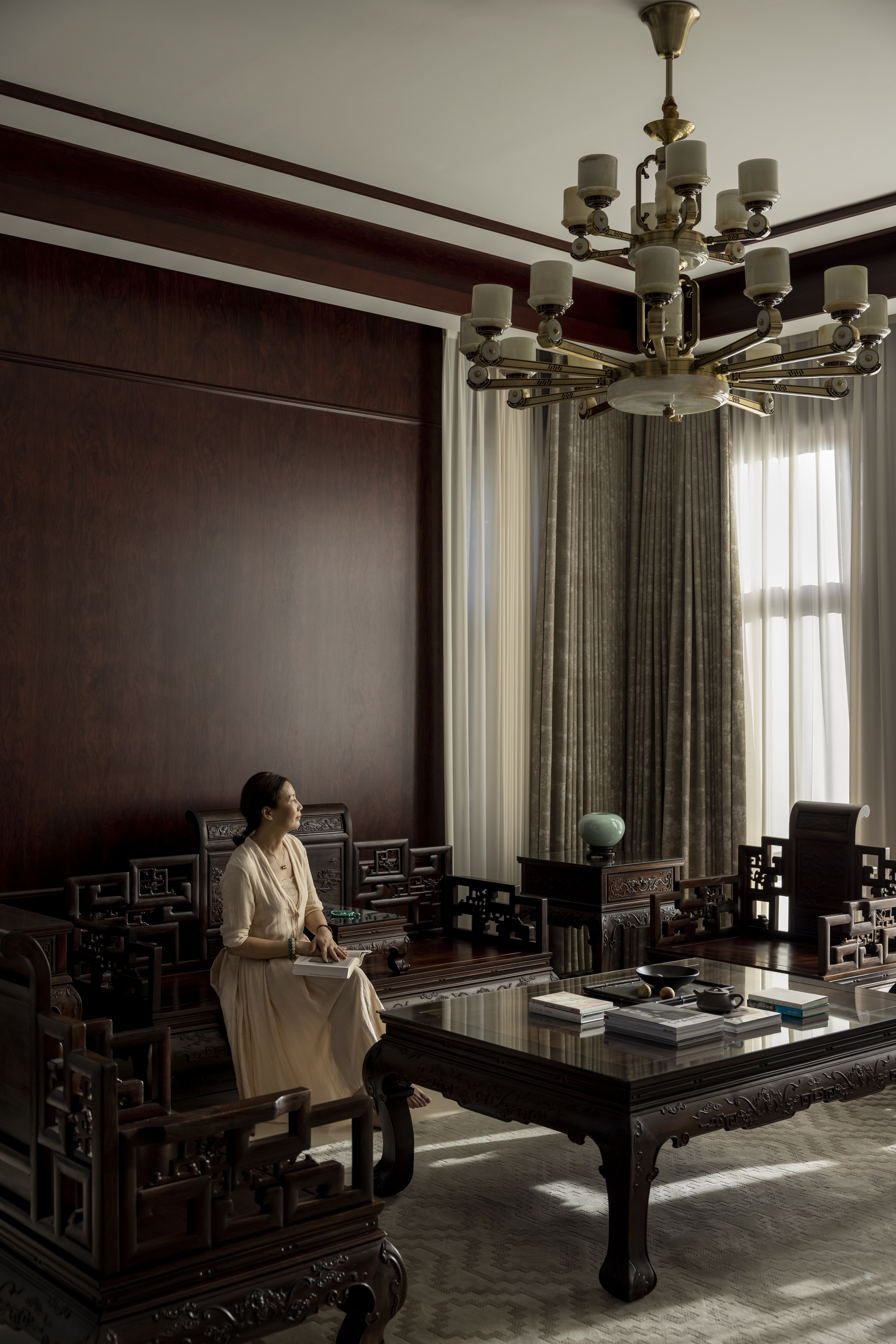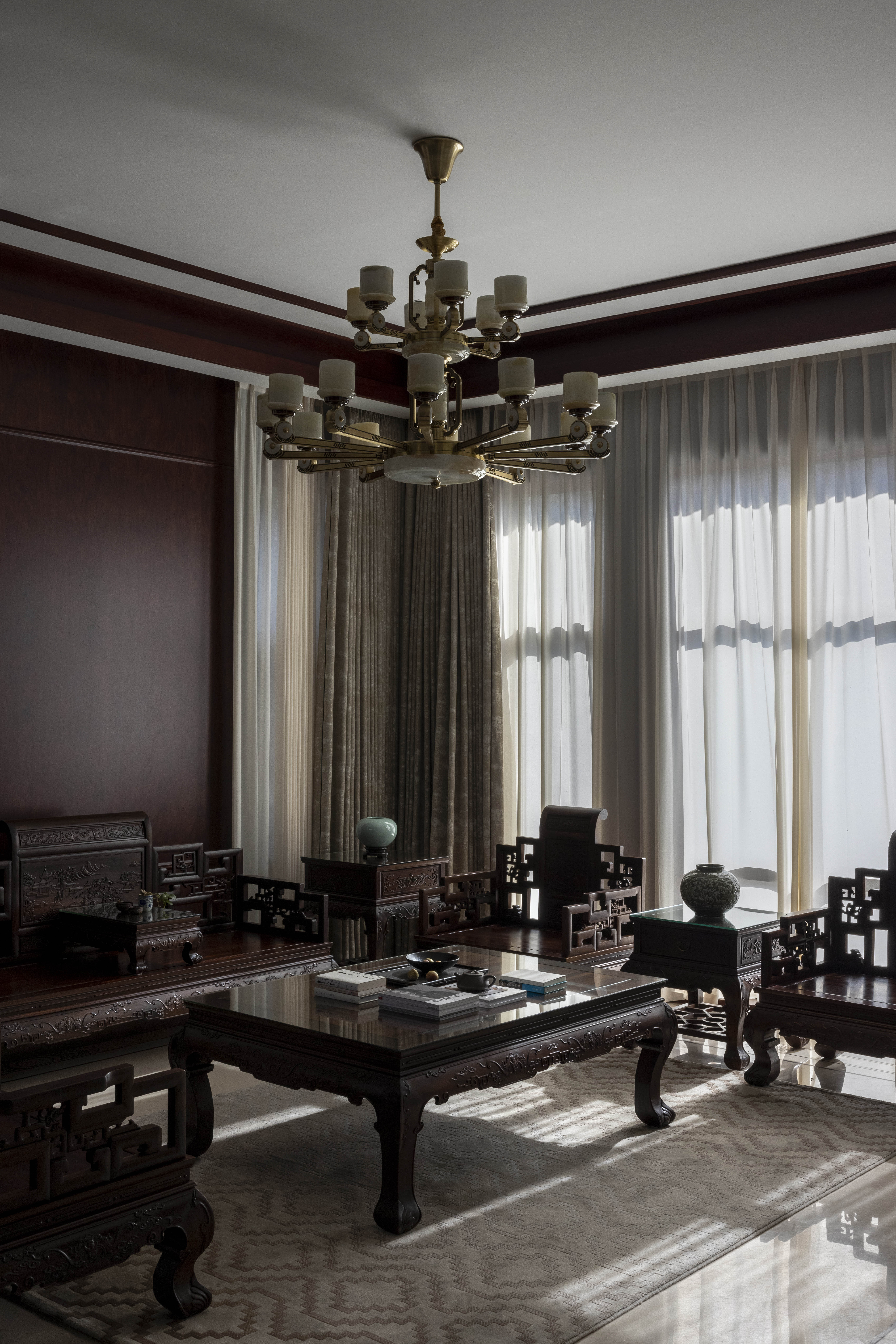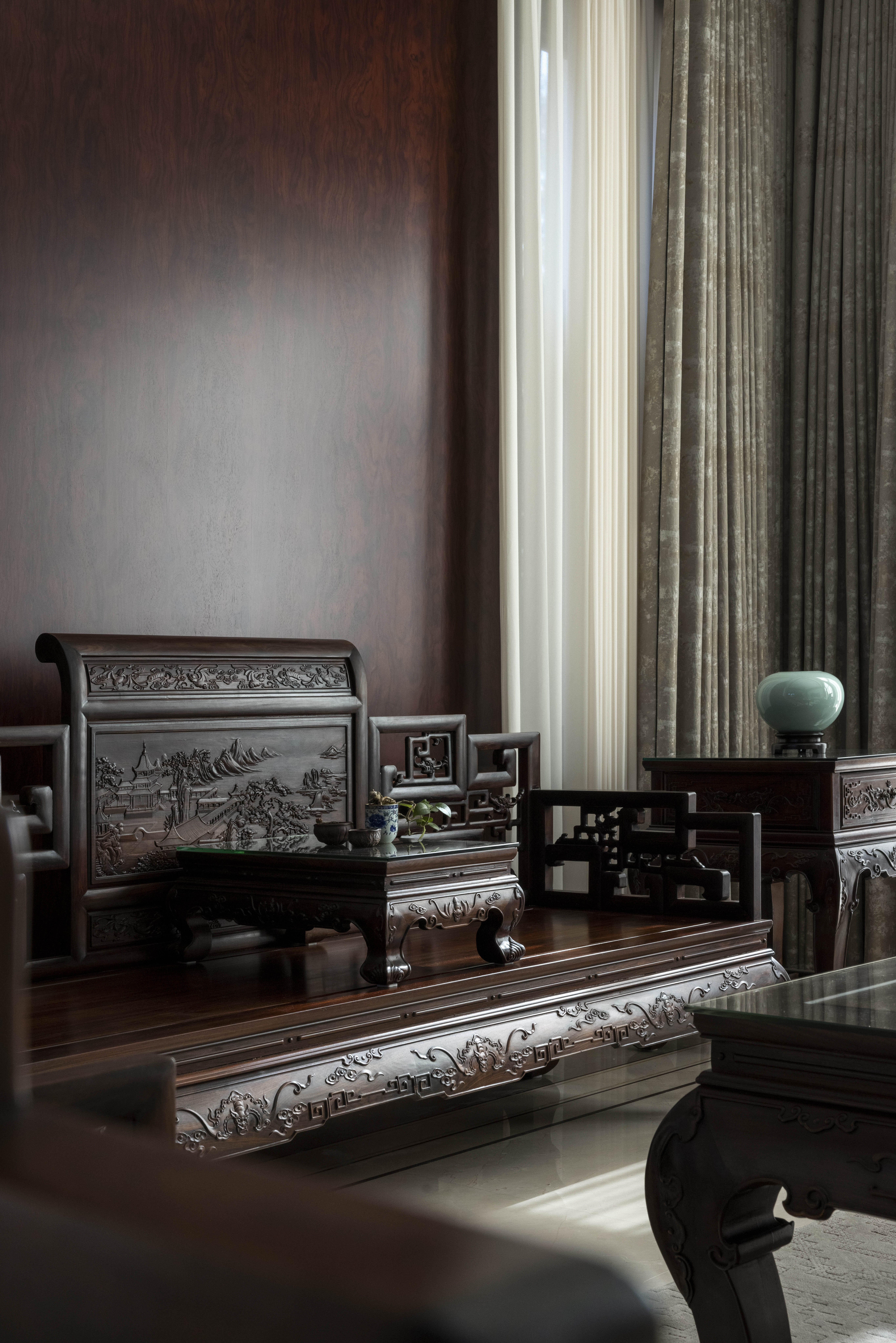 设计选材:利用了原有的红木家具,通过重新整修,焕发新的生命力,延长其使用寿命,从而减少对新资源的需求和废弃物的产生。