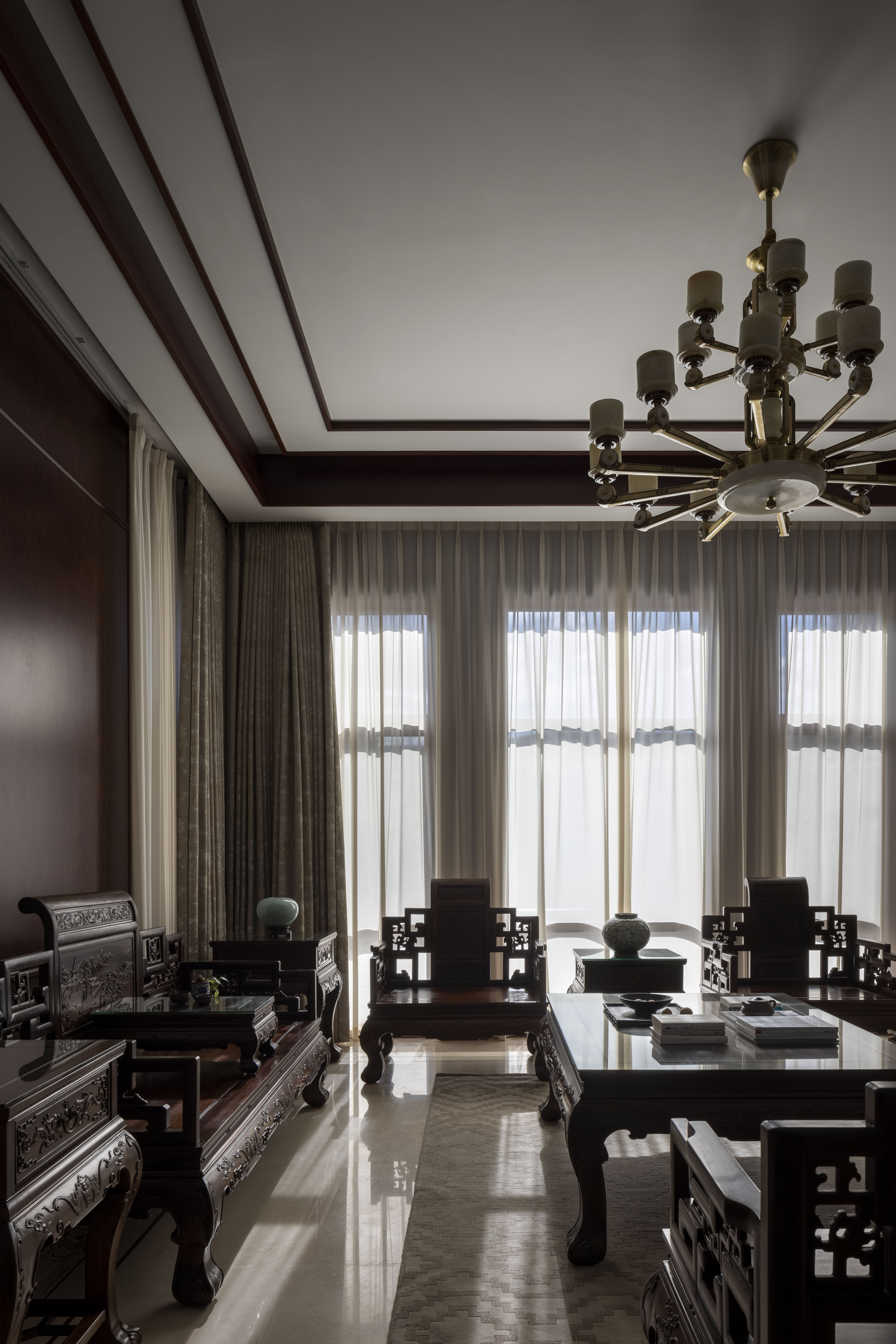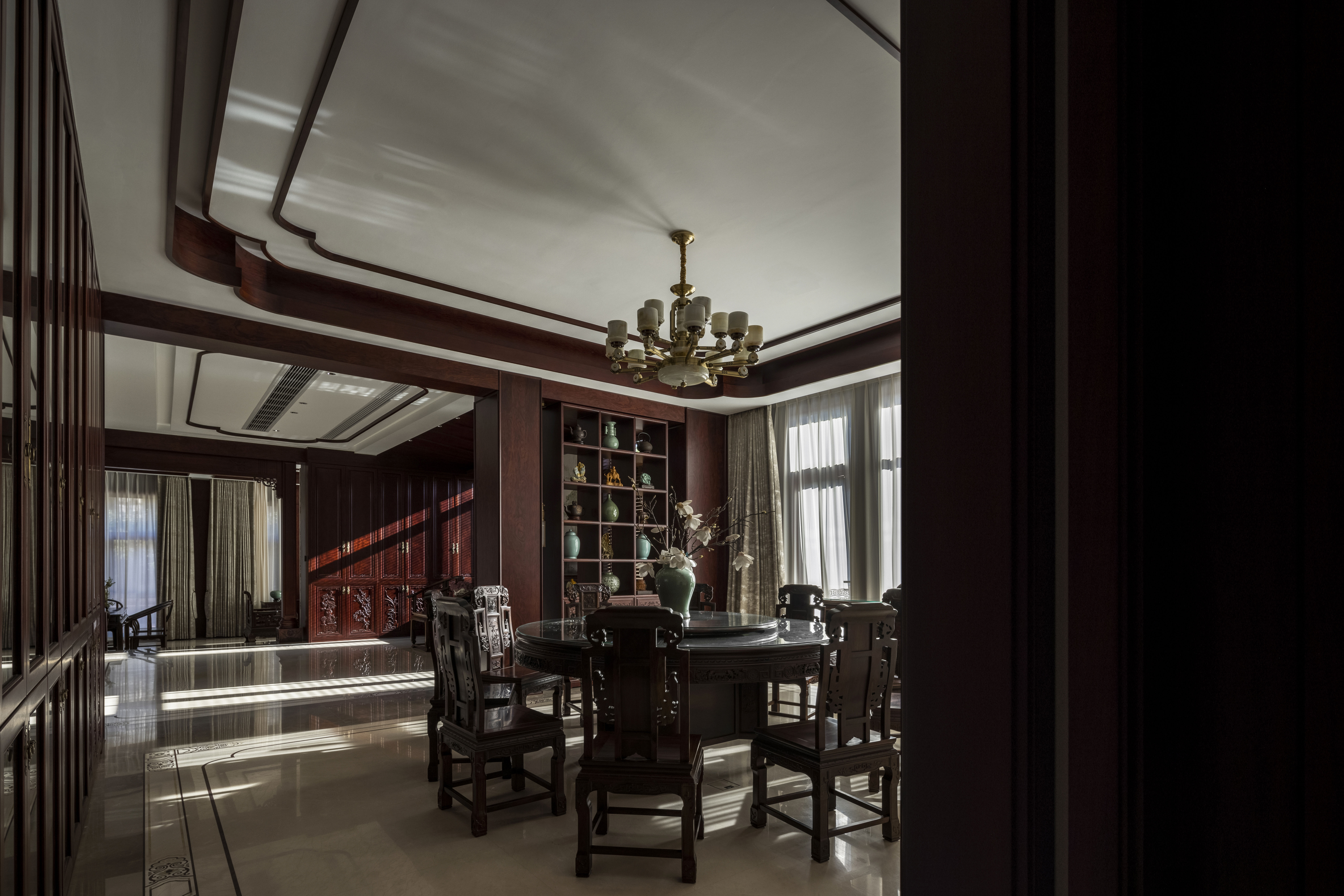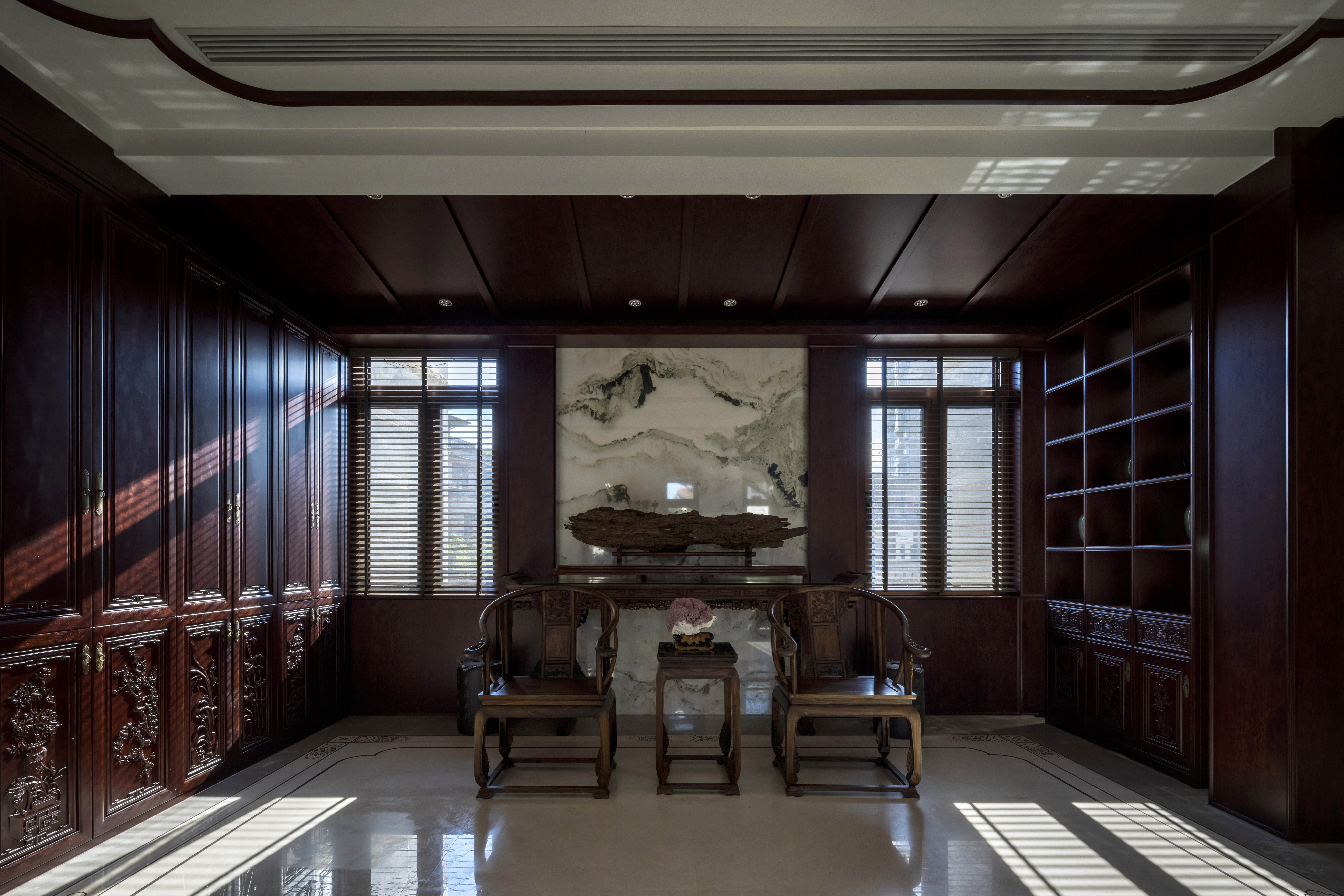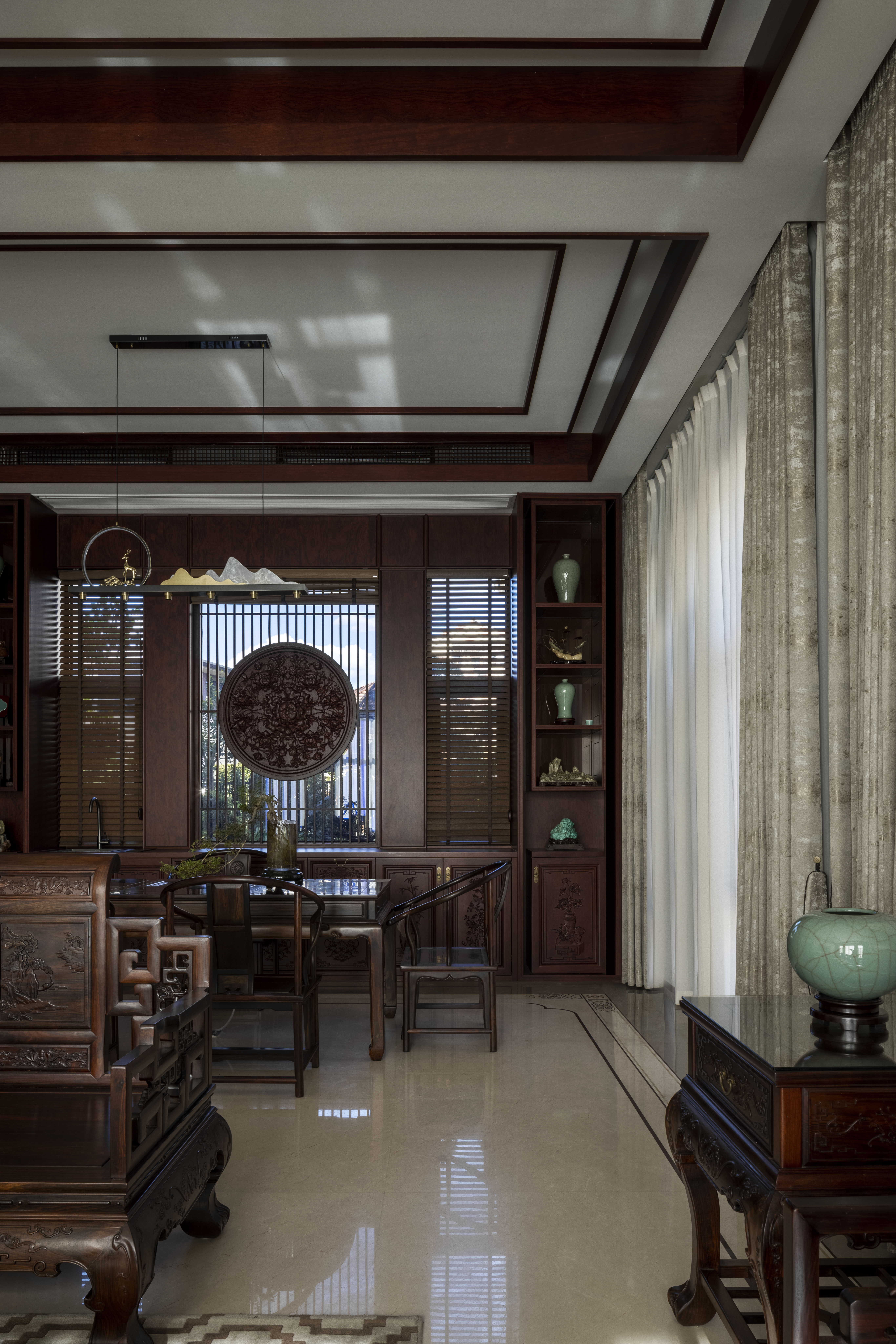 设计选材:利用了原有的红木家具,通过重新整修,焕发新的生命力,延长其使用寿命,从而减少对新资源的需求和废弃物的产生。