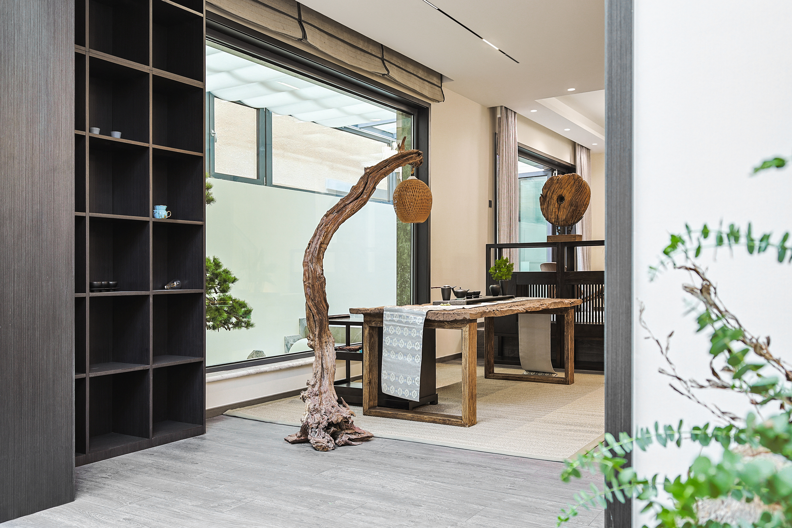 2、女主人很喜欢在地下一层晒太阳喝茶,练习茶道,练书法