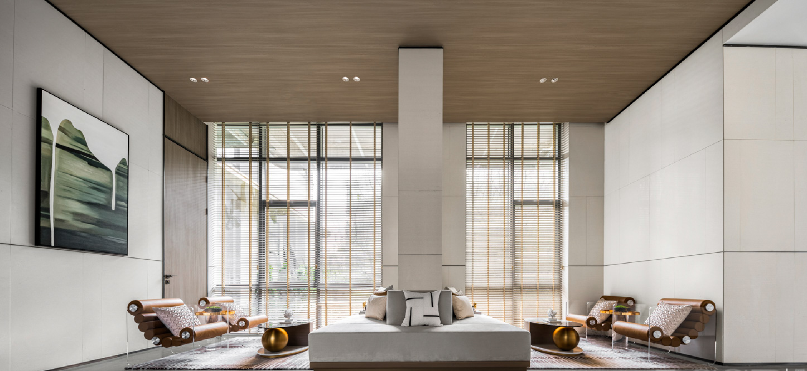 项目定位:营销中心的设计,不光是从空间饰面去打动人,而是从不同的角度去思考如何营造一个优秀的空间,我们通过对人物感官:视觉、触觉、听觉与嗅觉方面的分析,全方位的打造售楼处每个细节。去场景化,制造“情境”,从感官到心境的多维度体验;突破“传”,通过设计,传达“艺术性、文化性、当代性”等特点以达到“承”,为大众呈现一个体验城投71亩现代风格的新维度。