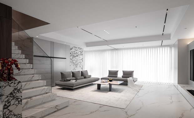 设计选材:丝绒拿铁般的丝滑墙面跟没有一个风口的极致体验,让你的800平米能实现30分钟全部换气