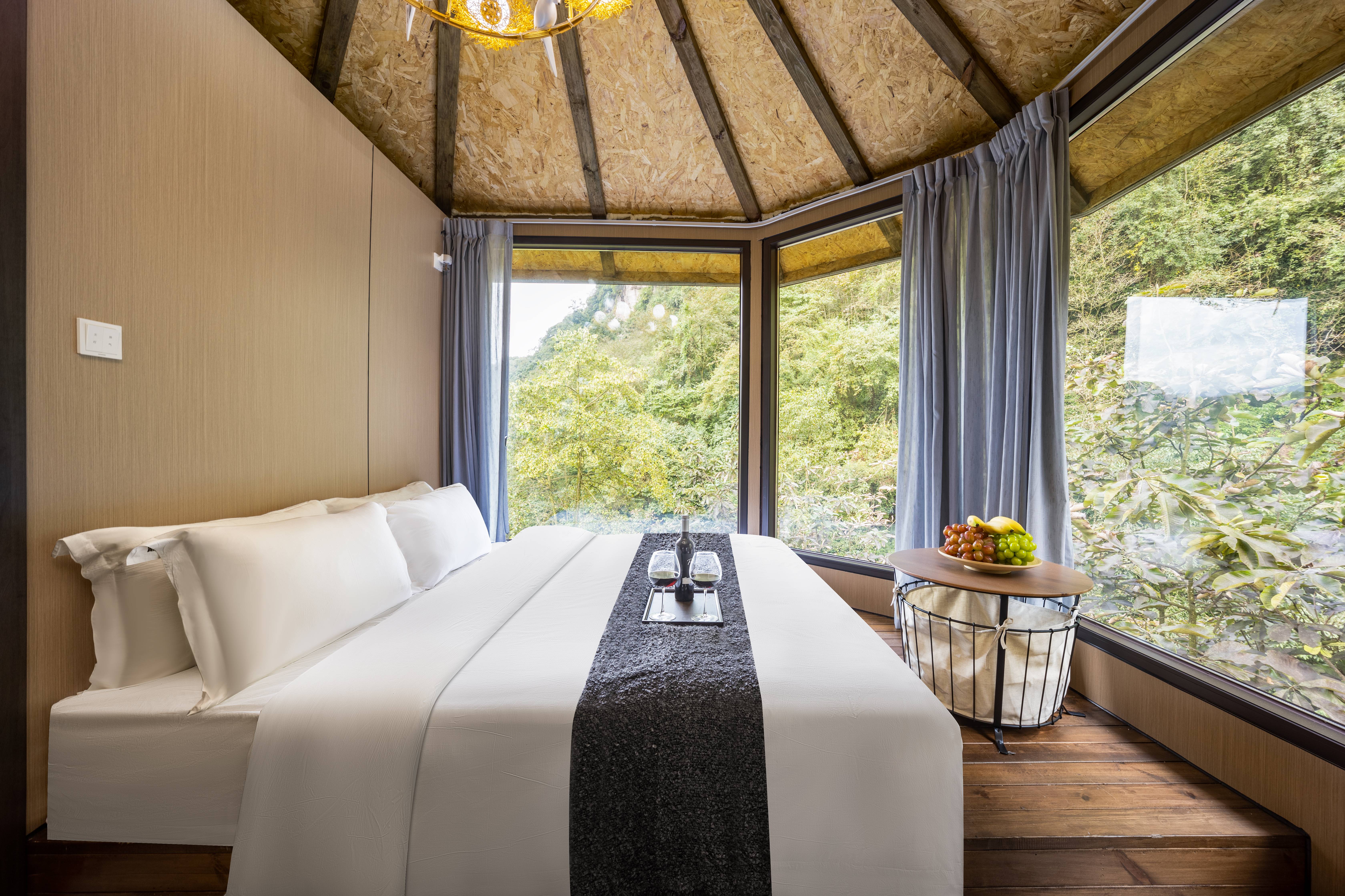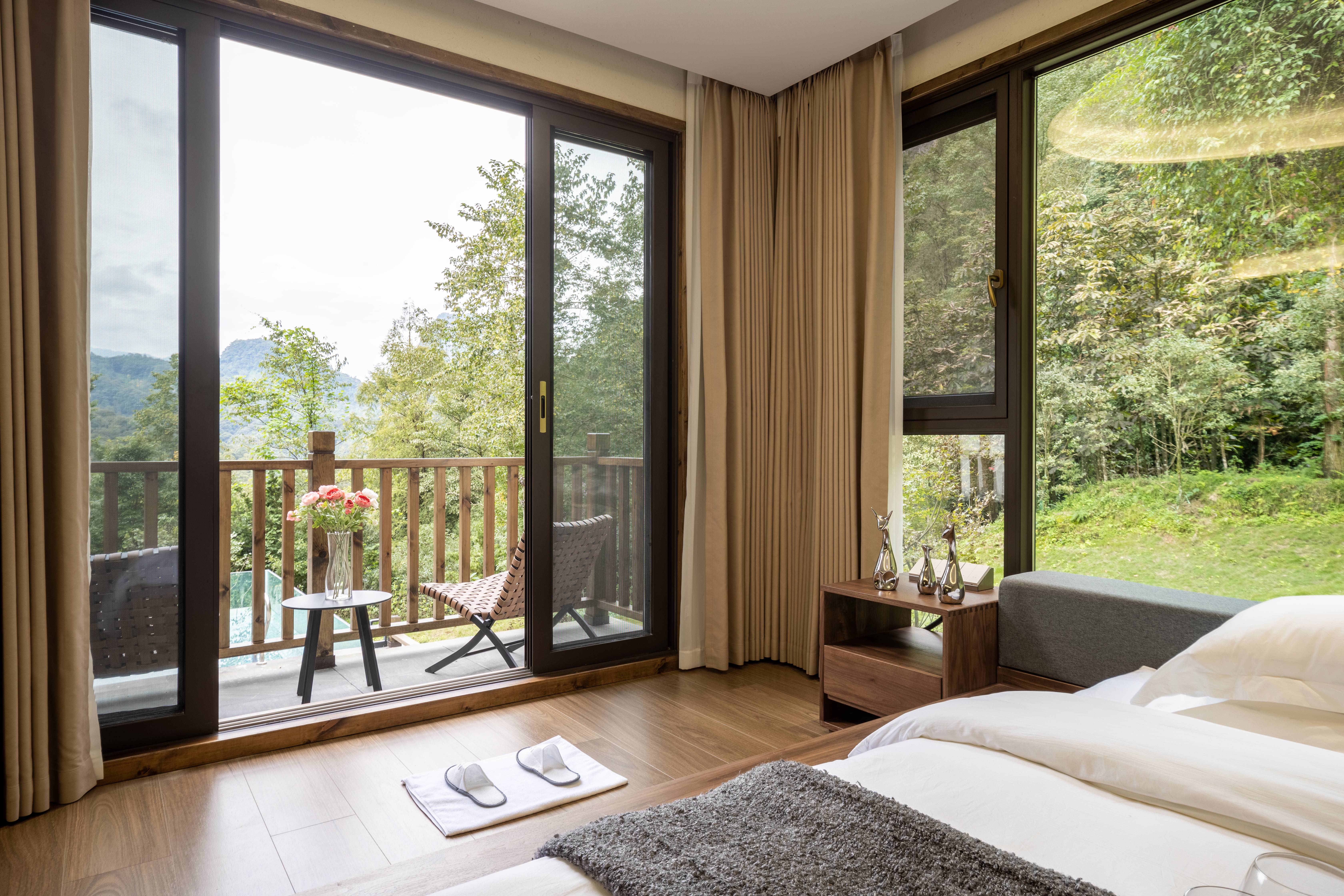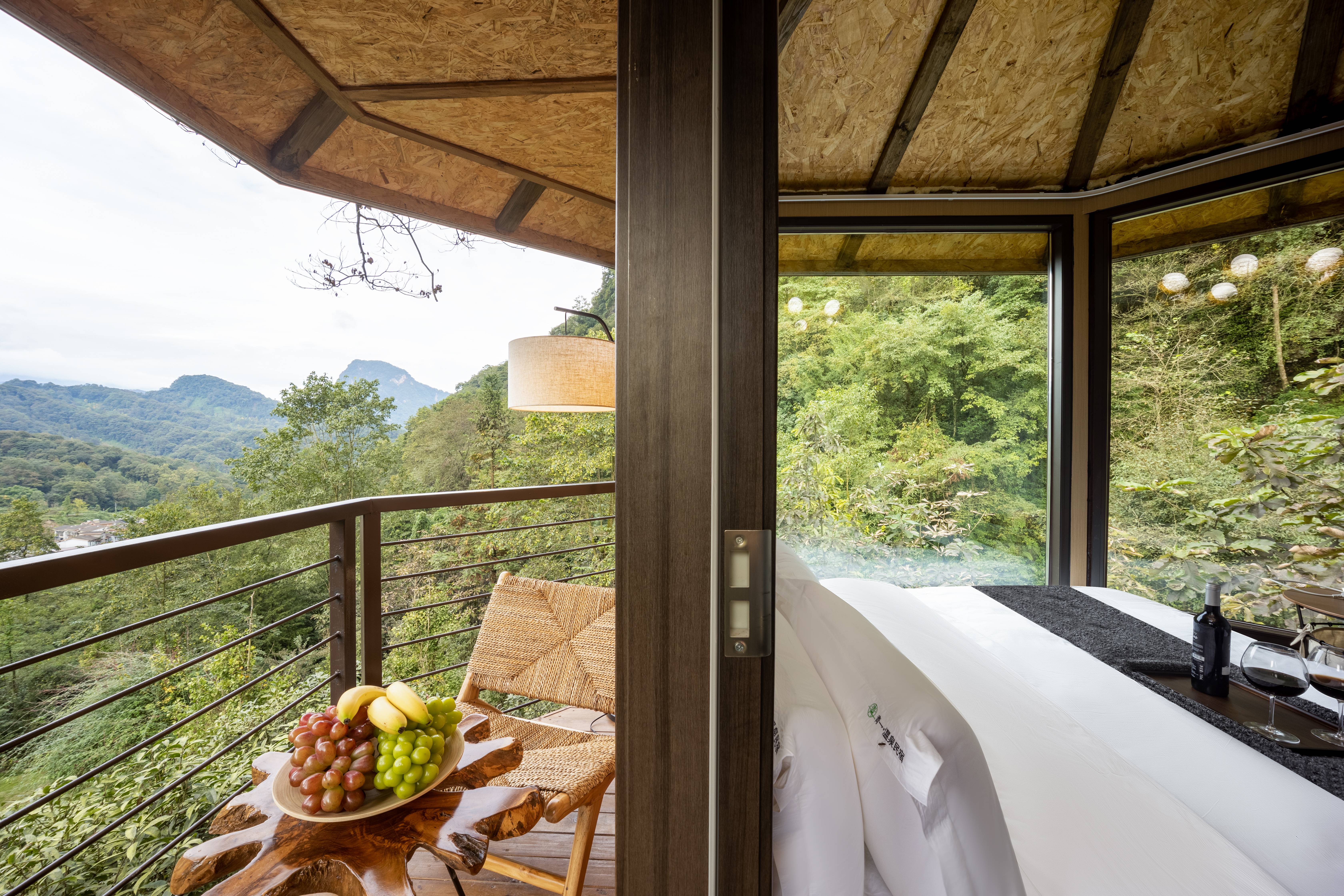 像是住进世外桃源的两天,肺和心情都洗得干干净净。酒店是青城山的民宿里海拔最高的一家,一条蜿蜒山路上山,所到之处便只有植被和山体环绕,没有其他建筑和人烟了。 刚到酒店的时候是晚上八点多,在阿姨休息之前吃到了在评价里看过就心心念念想吃的面,很家常,红油特别香。吃完管家叔叔去帮忙给汤池放水,好几个温泉汤池高低坐落在后院,坐在池里,身边就是植被包裹着山体,其中传来鸟叫和蝉鸣,当晚小雨未停,被空气的清凉和水的温热包裹:完完全全地放松。爬了一天山,第二天起床居然一点也没有酸痛。第二天在民宿待了一天,附近逛了逛,吃了阿姨做的凉拌川穹和青椒肉丝,川穹有一股清新的药草香,回味无穷。房间的大玻璃窗外就是绿绿的花草树,坐在窗前发呆、写字、独处,天慢慢暗下来,起身去开灯,时间变成一个相对的概念。下山的时候阿姨好热情地让我揣上了个煮鸡蛋,叔叔开车送我下了山。桃花源记在此刻从文章变成经历,幸运的是以后有机会随时可以再来。