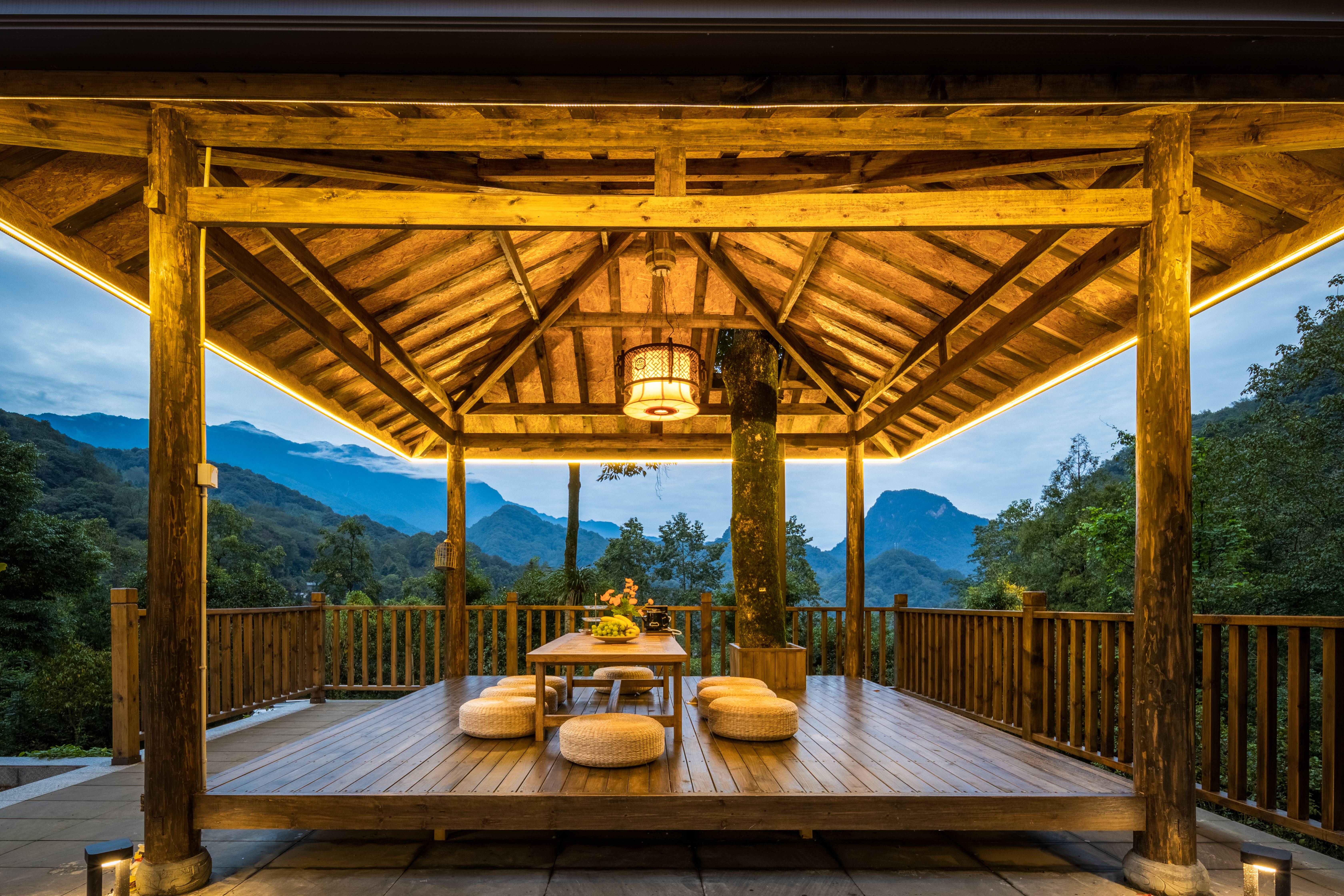 在快节奏的都市生活中,人们总是感到忙碌和疲惫。为了工作和生活,人们往往失去了自我和与自然的联系。都江堰青城山作为自然风光优美的旅游胜地,是一个让人们回归自然、放松身心的好地方。在青城山山腰上建一座高端休闲温泉民宿,让城里人回归本真、回归自然、回归乡野,找回儿时童年的记忆。该民宿的设计理念首先是要尊重自然,与自然环境相融合。在建筑风格上,采用传统的川西民居特色,结合当地的文化元素,修旧如旧。作为高端度假民宿酒店,追求的是让游客感受到一种身心愉悦的舒适体验。尊重传统木结构是建筑设计中的重要因素之一。饮一杯茶,淡雅的香气,在空气中弥漫,让人心醉。谈谈事,把心中的思绪像茶一样倾吐,让人释怀。共赴一刻弥足珍贵的娴静,放下世俗的纷扰,享受片刻的宁静,让心灵得到滋养。