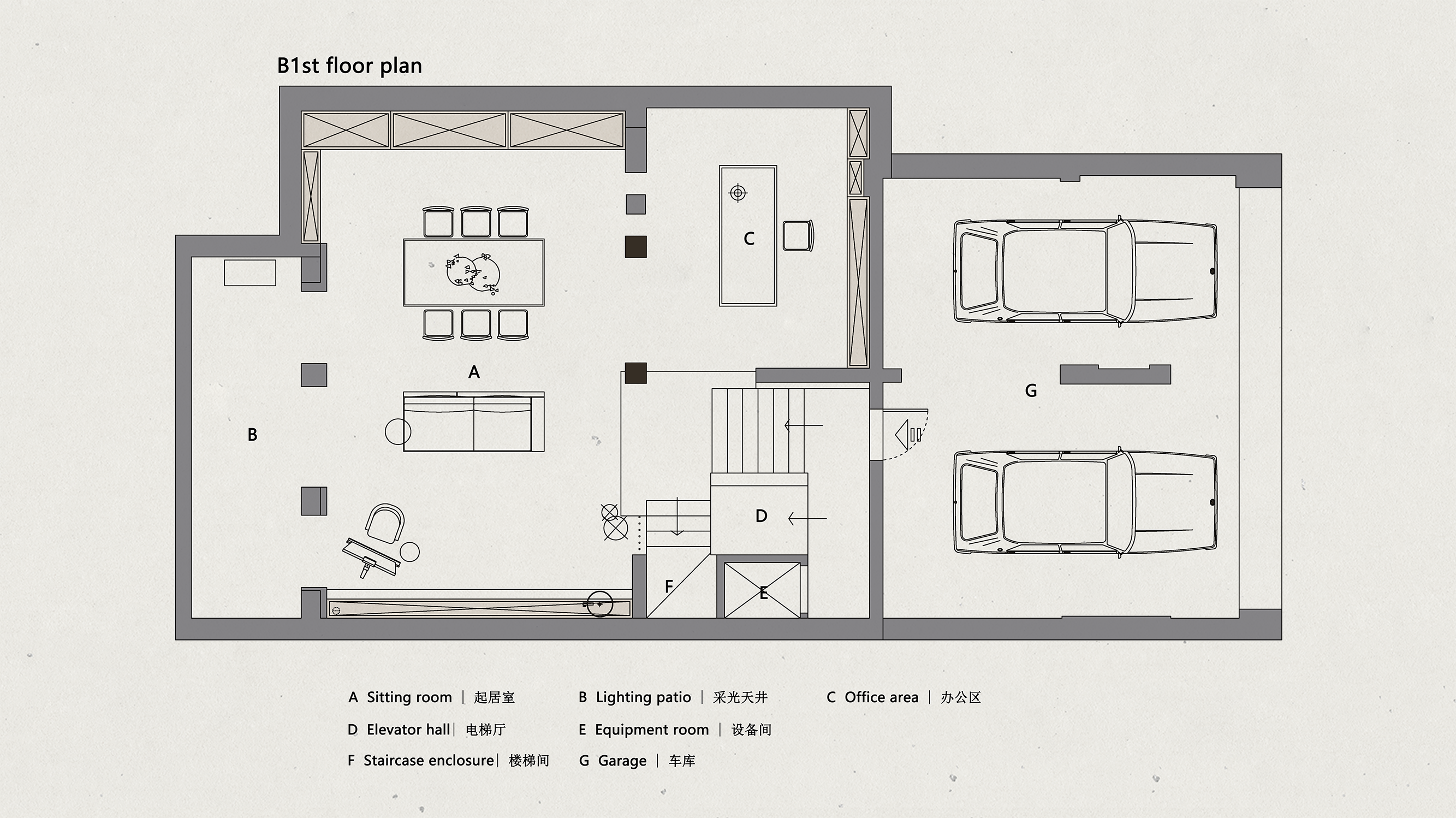 把房子作为环境建筑中的一块来考虑,设计师并不希望它的外观在整个园区内是特立独行的,一点点的处理方式就已经足够,外立面给出最多参考元素,直到沙砾色也能成为室内的主色调。
