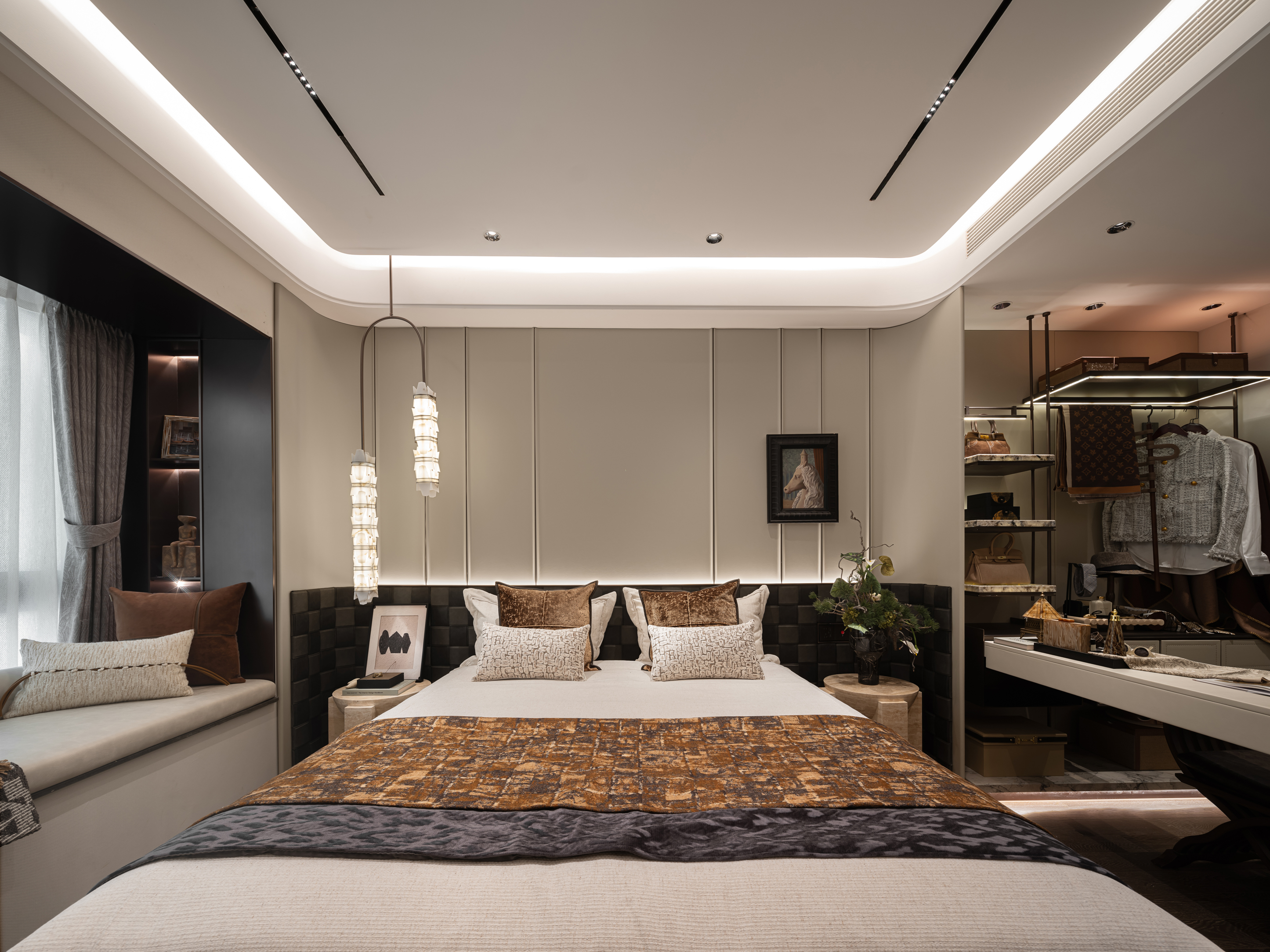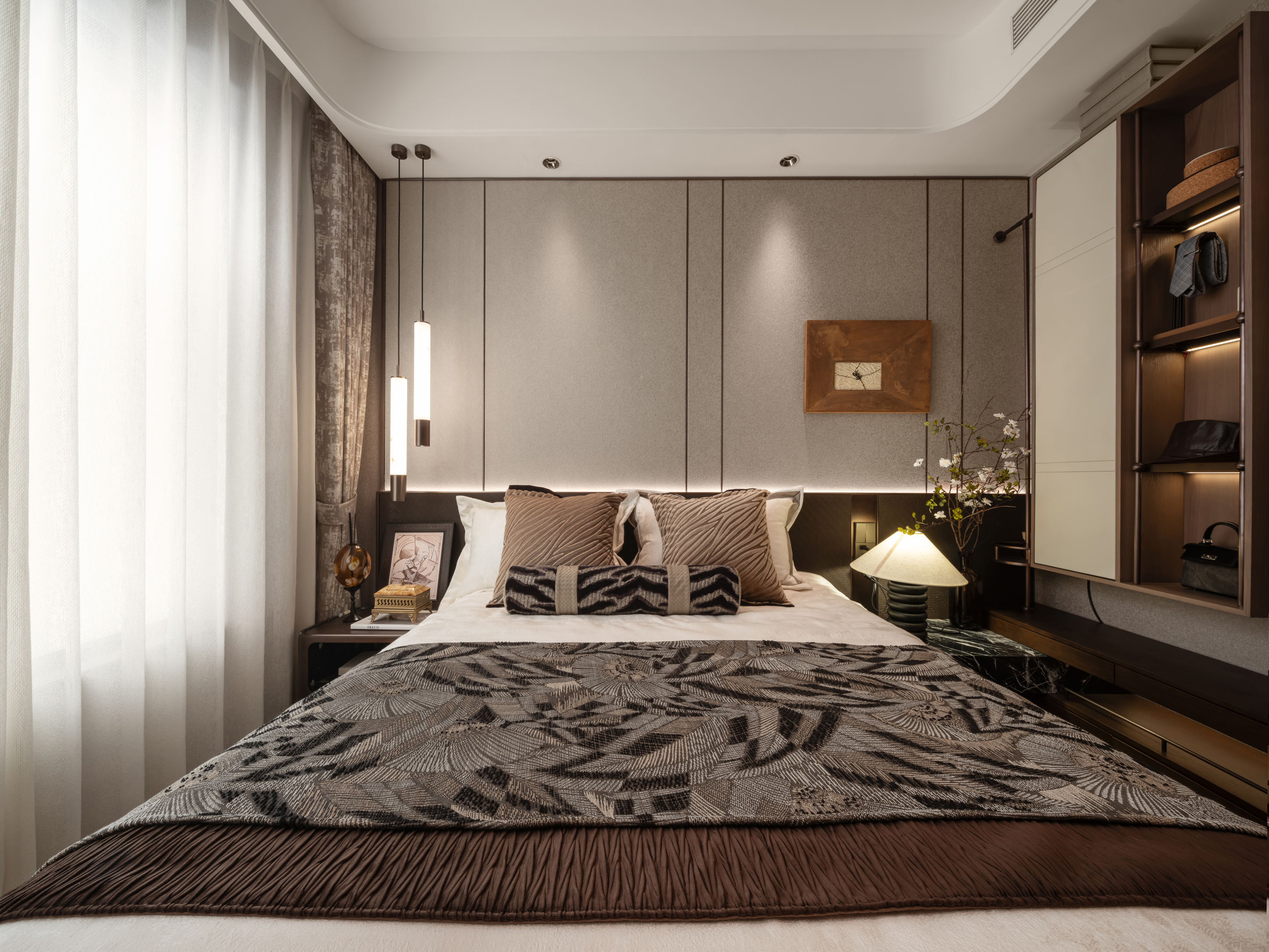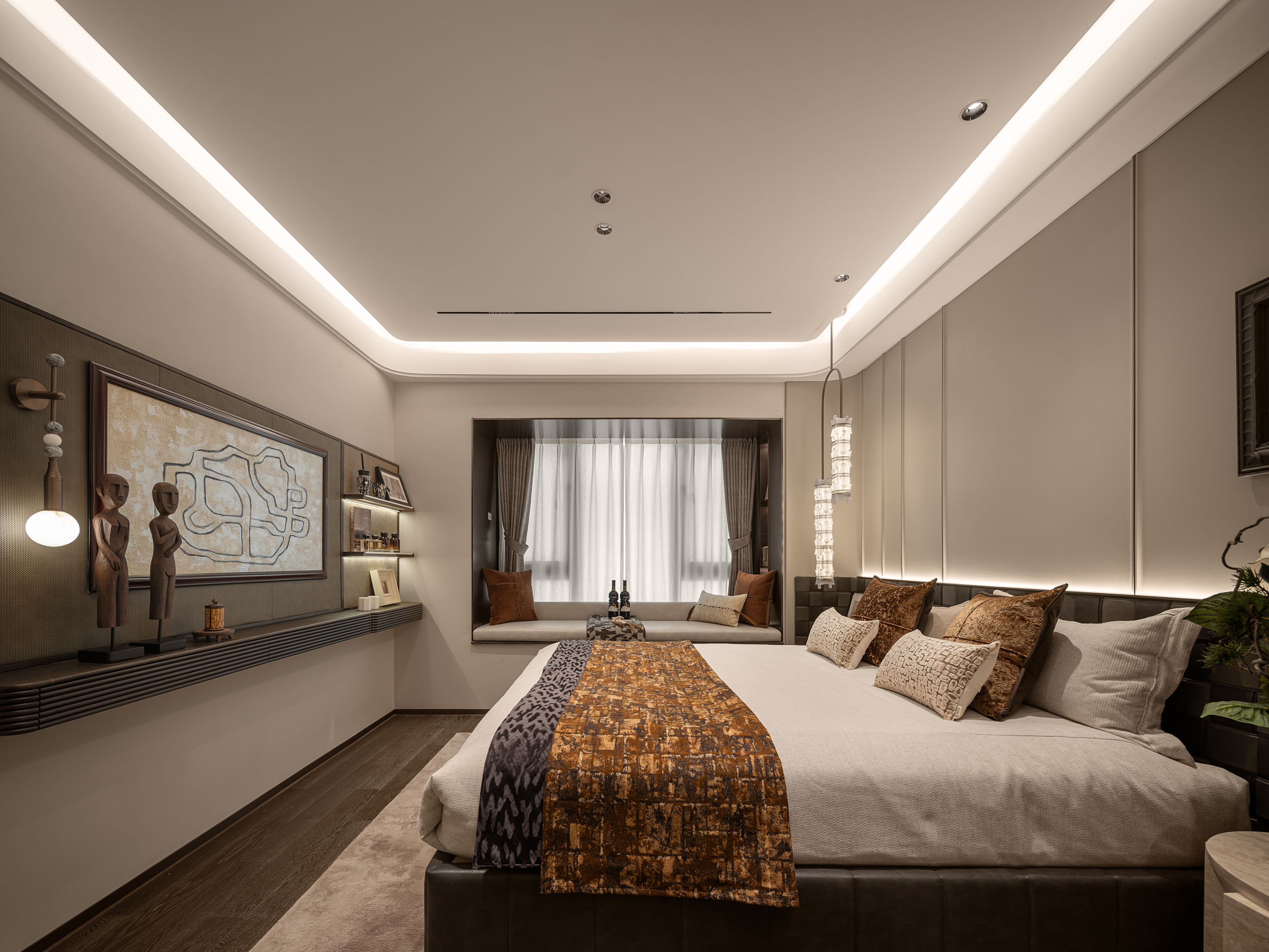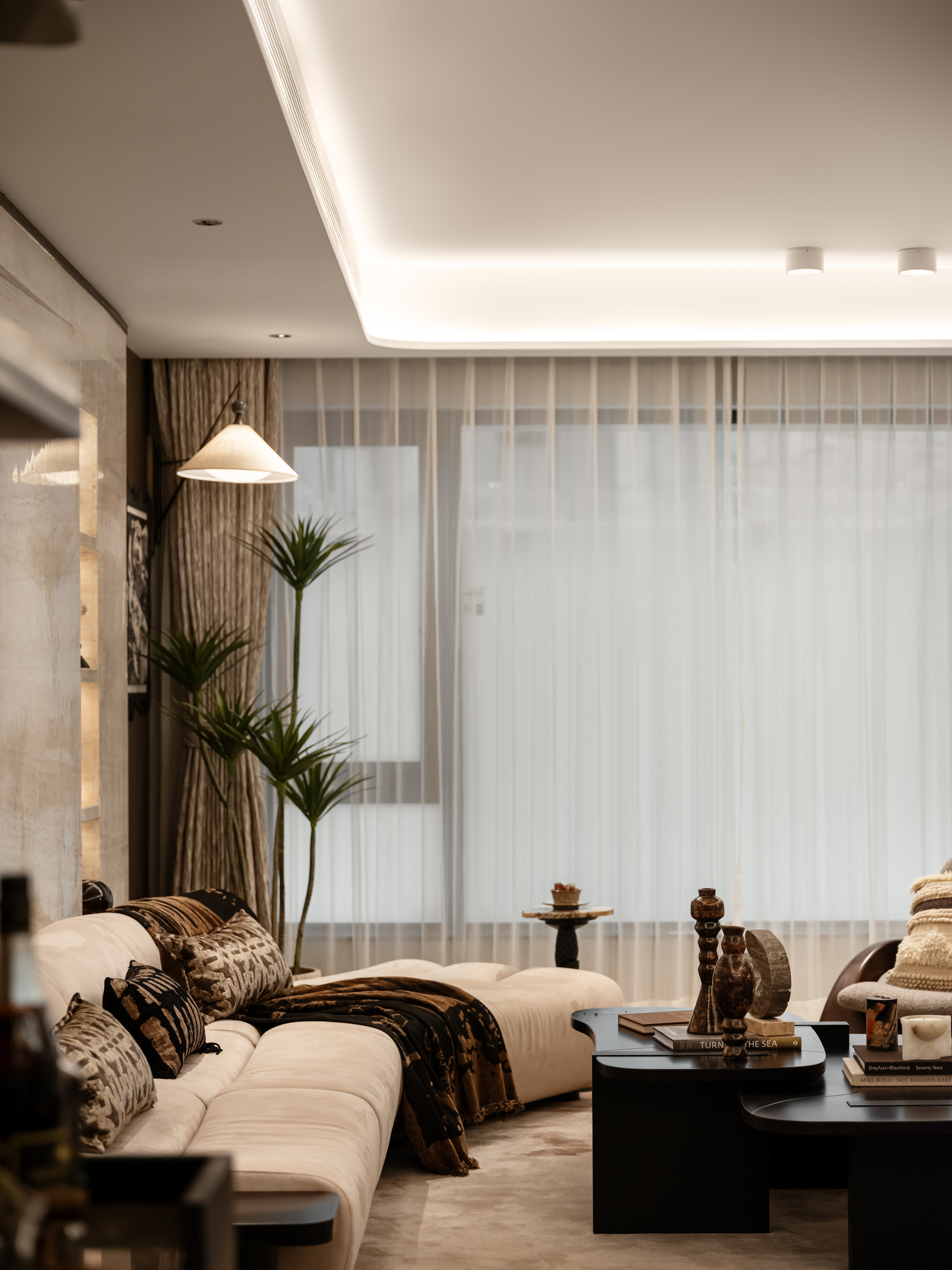 家具与装饰采用简约而不失设计感的线条,既体现了现代生活的便捷与舒适,又不失自然与手工的温度。光线在这里扮演着重要角色,无论是透过窗户洒落的自然光,还是精心设计的照明系统,都以柔和而富有层次的方式照亮空间,让人感受到时间的流转与自然的韵律。