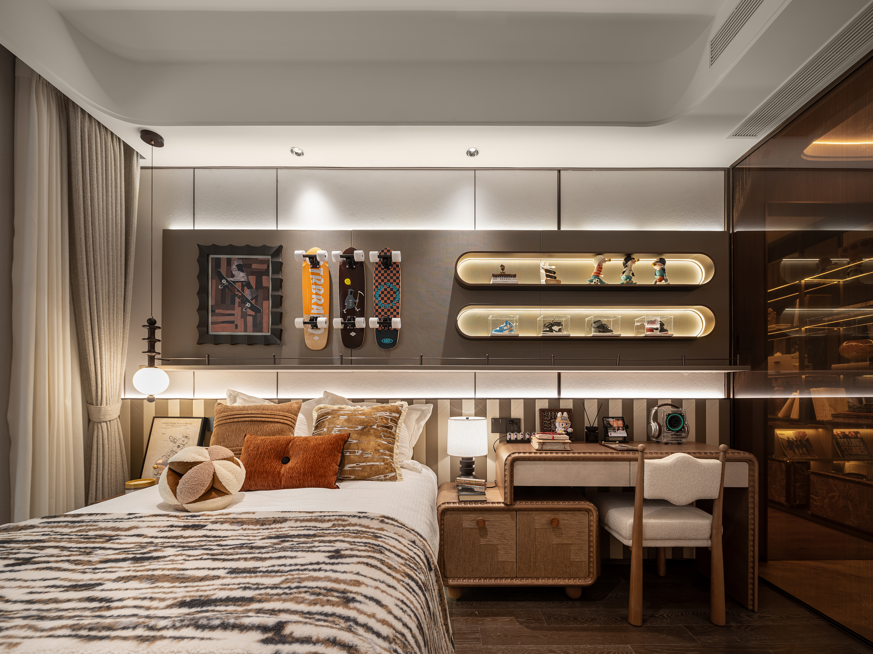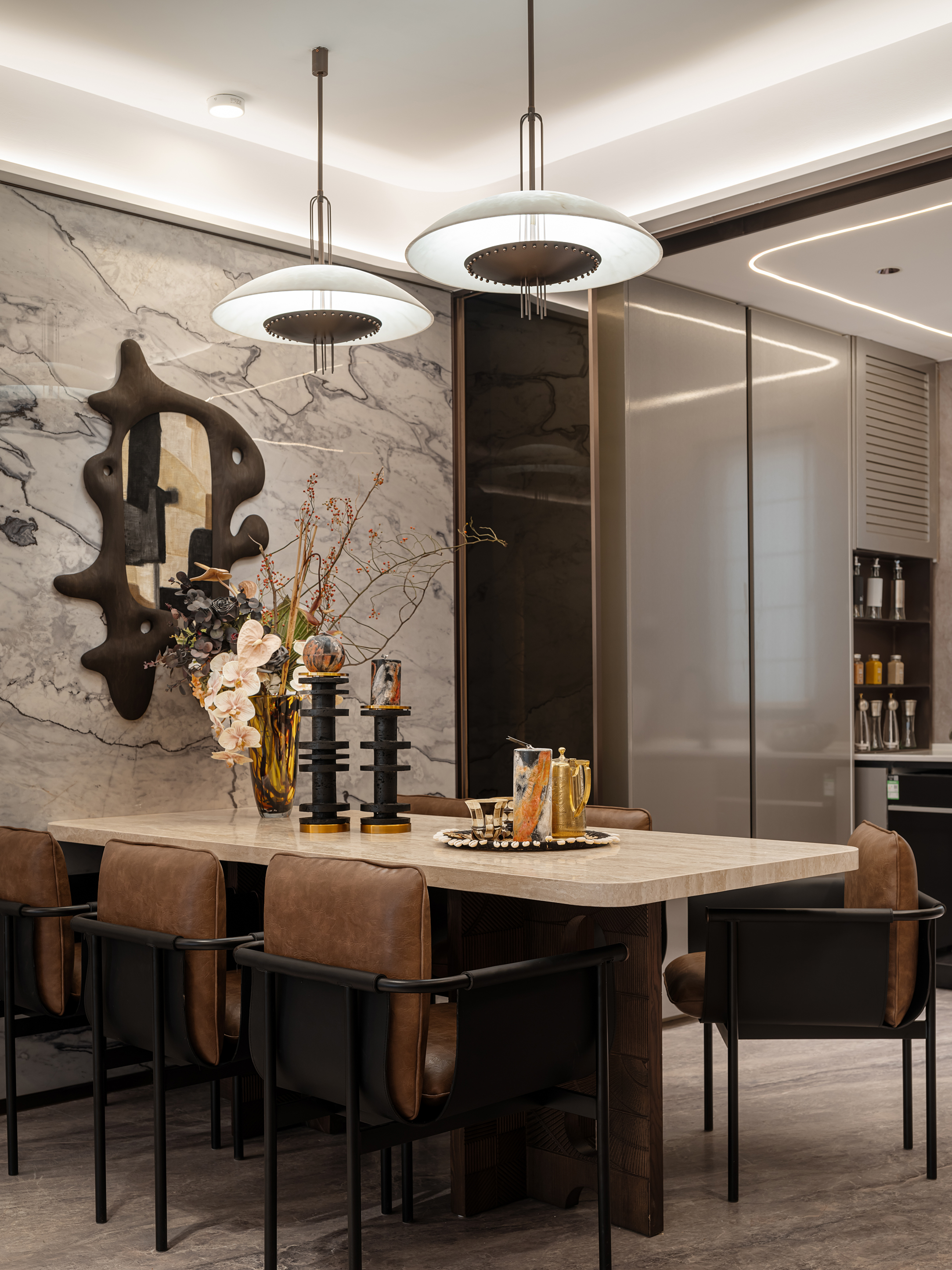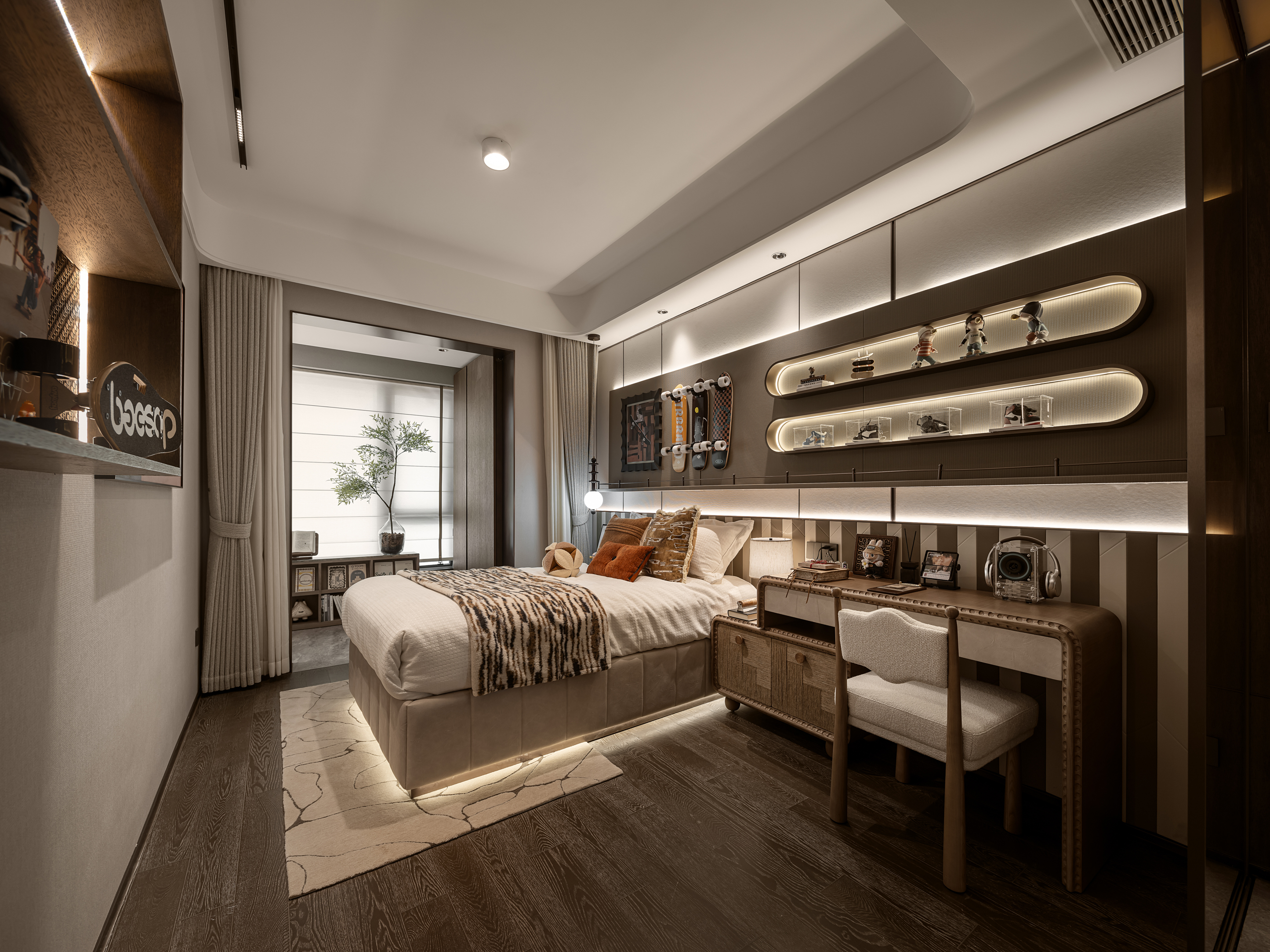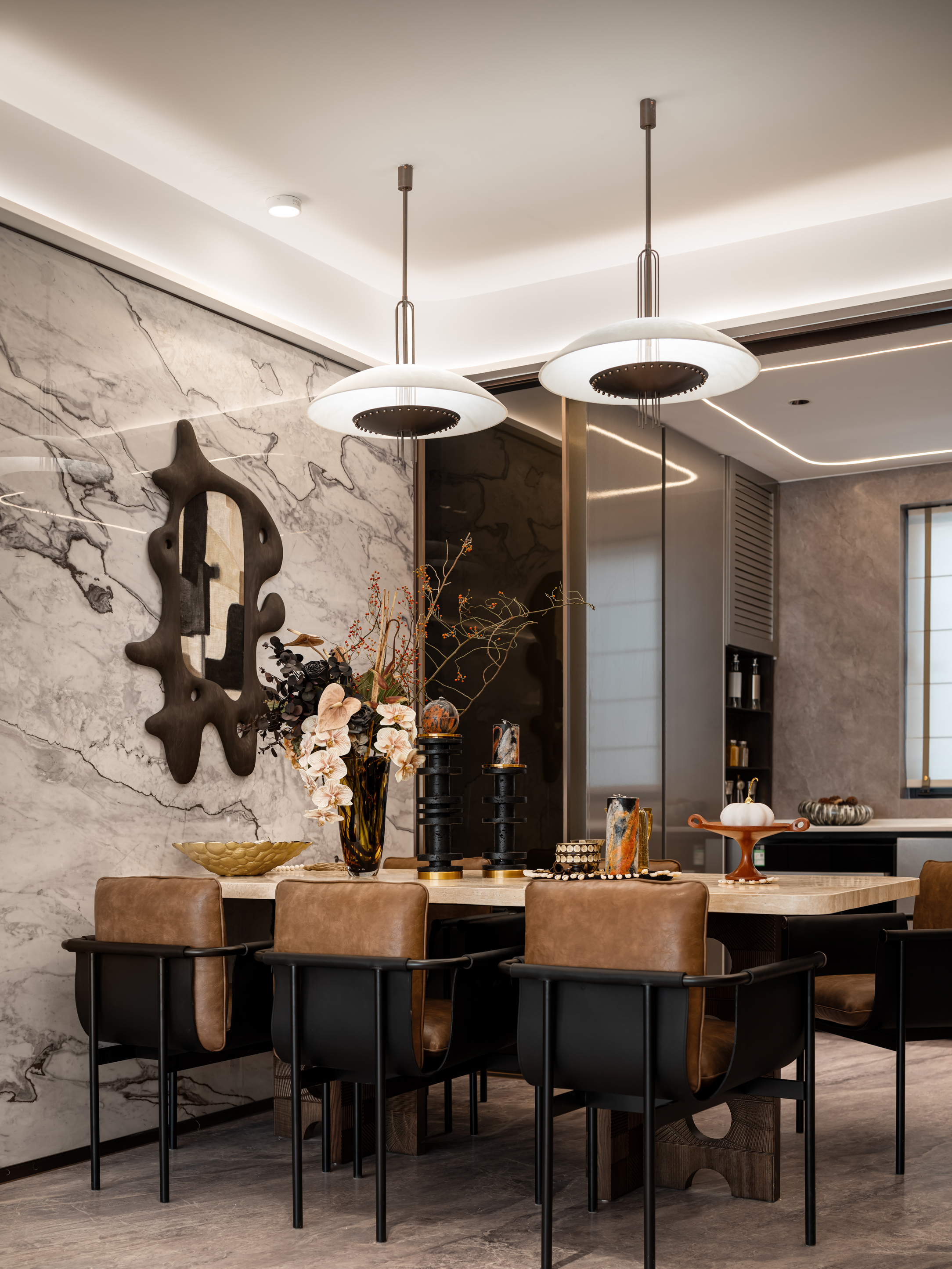 家具与装饰采用简约而不失设计感的线条,既体现了现代生活的便捷与舒适,又不失自然与手工的温度。光线在这里扮演着重要角色,无论是透过窗户洒落的自然光,还是精心设计的照明系统,都以柔和而富有层次的方式照亮空间,让人感受到时间的流转与自然的韵律。