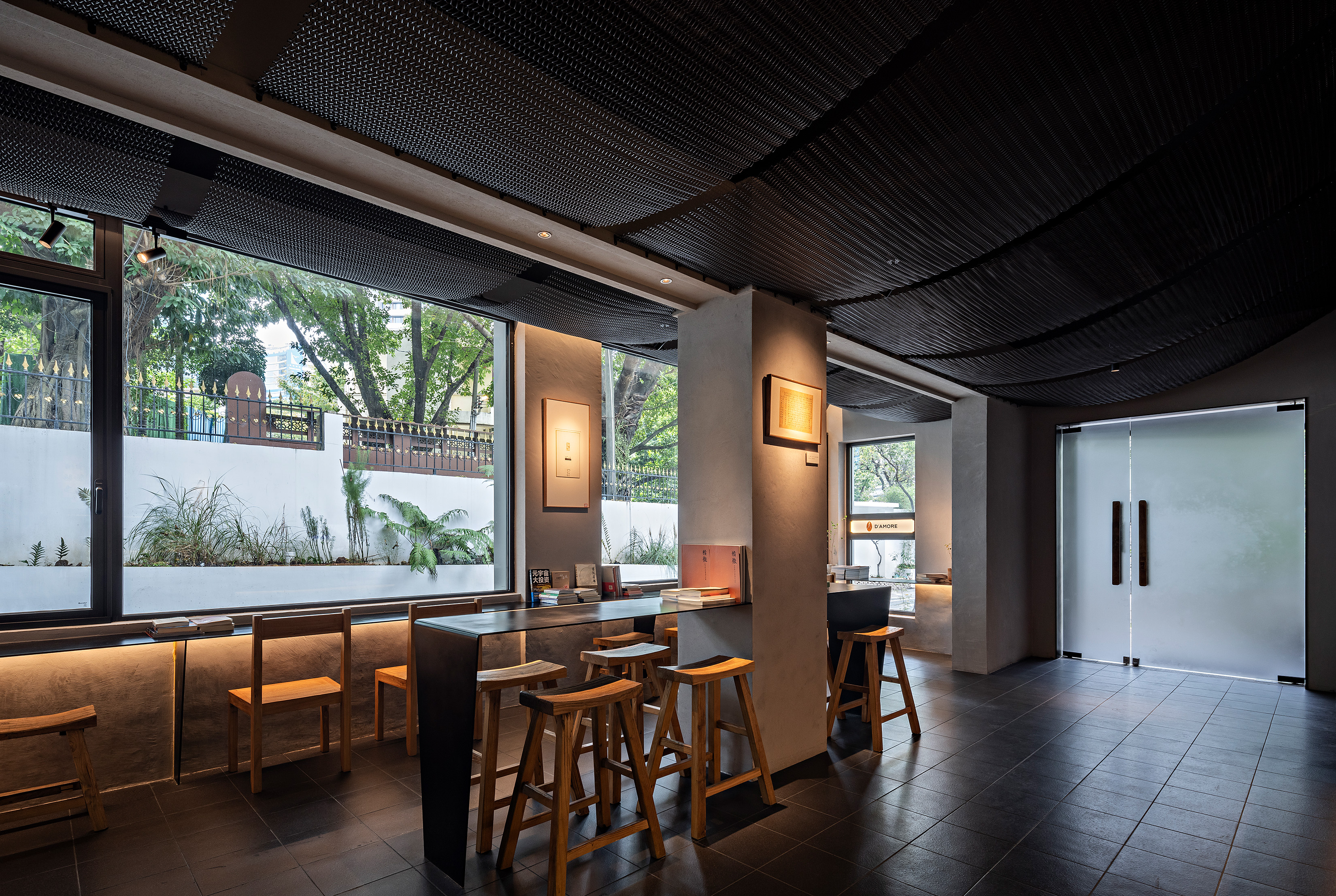 黑色小方砖和老红砖,回归原有老建筑的材质,凸显年代感