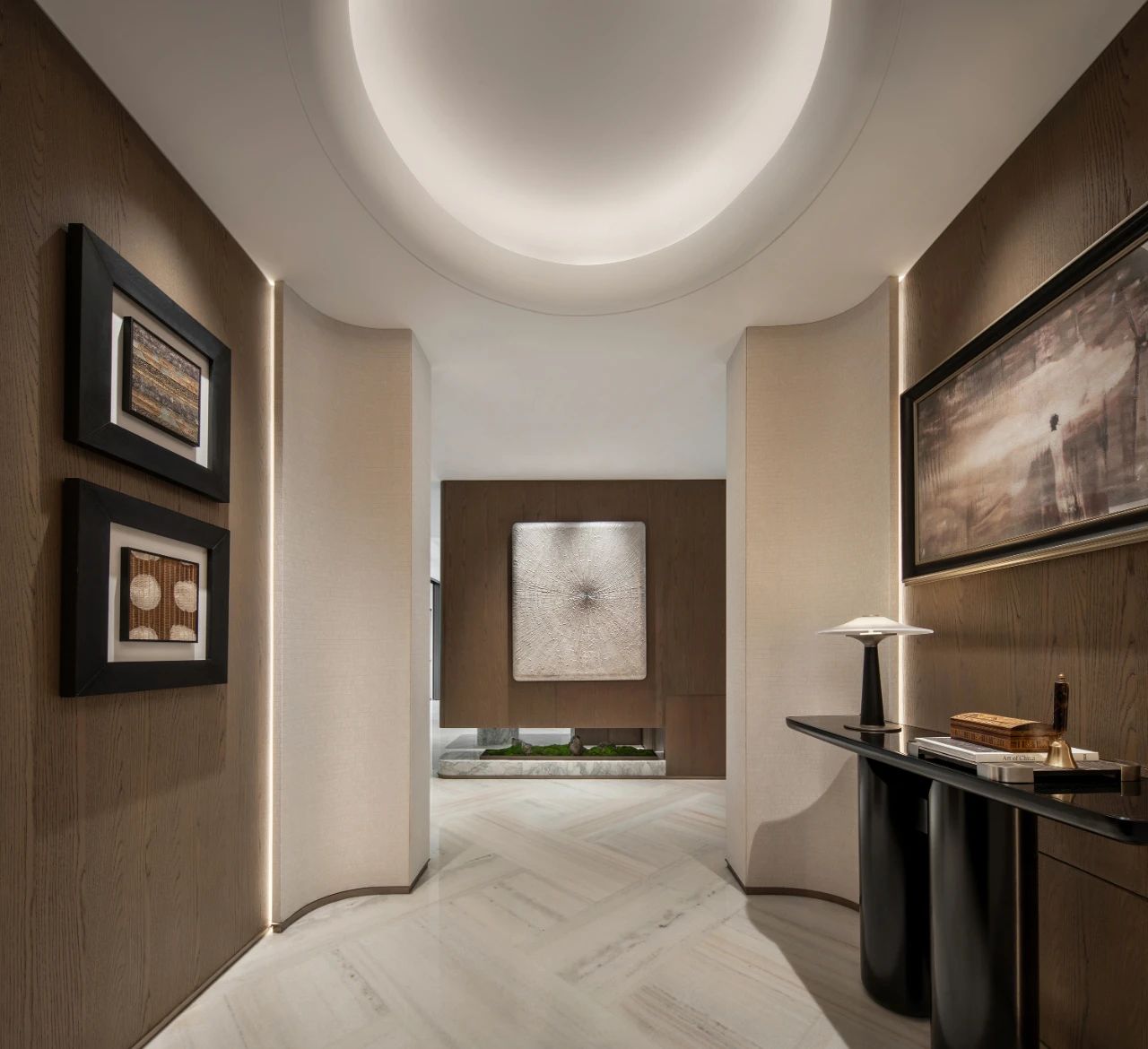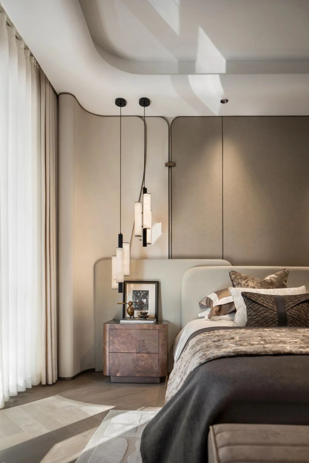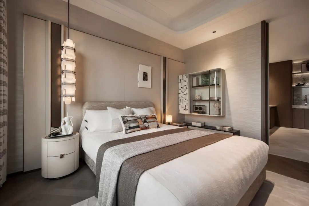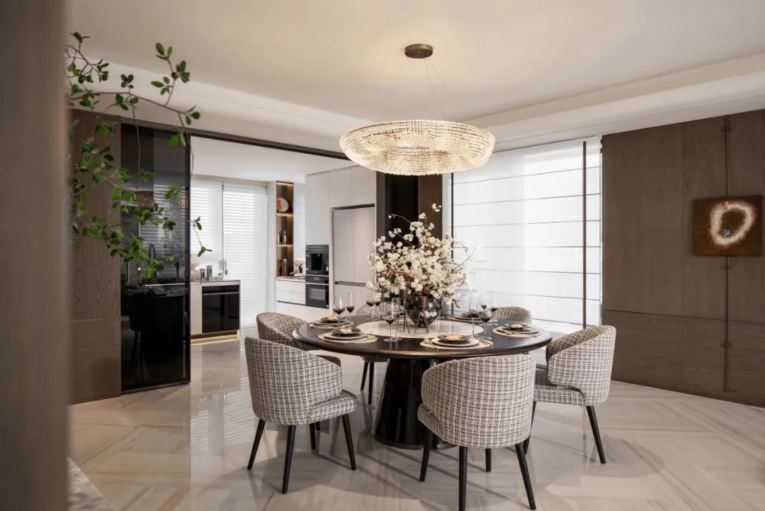 大面积留白与简洁线条形成呼吸感,搭配艺术装置与精致软装,于松弛自然中唤醒居者与空间的深层情感链接。浅木纹理如岁月的叙事,与光影一同将这份生活美学沉淀为温润的时光印记。